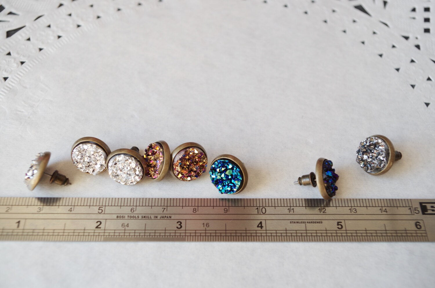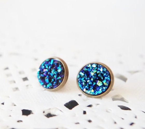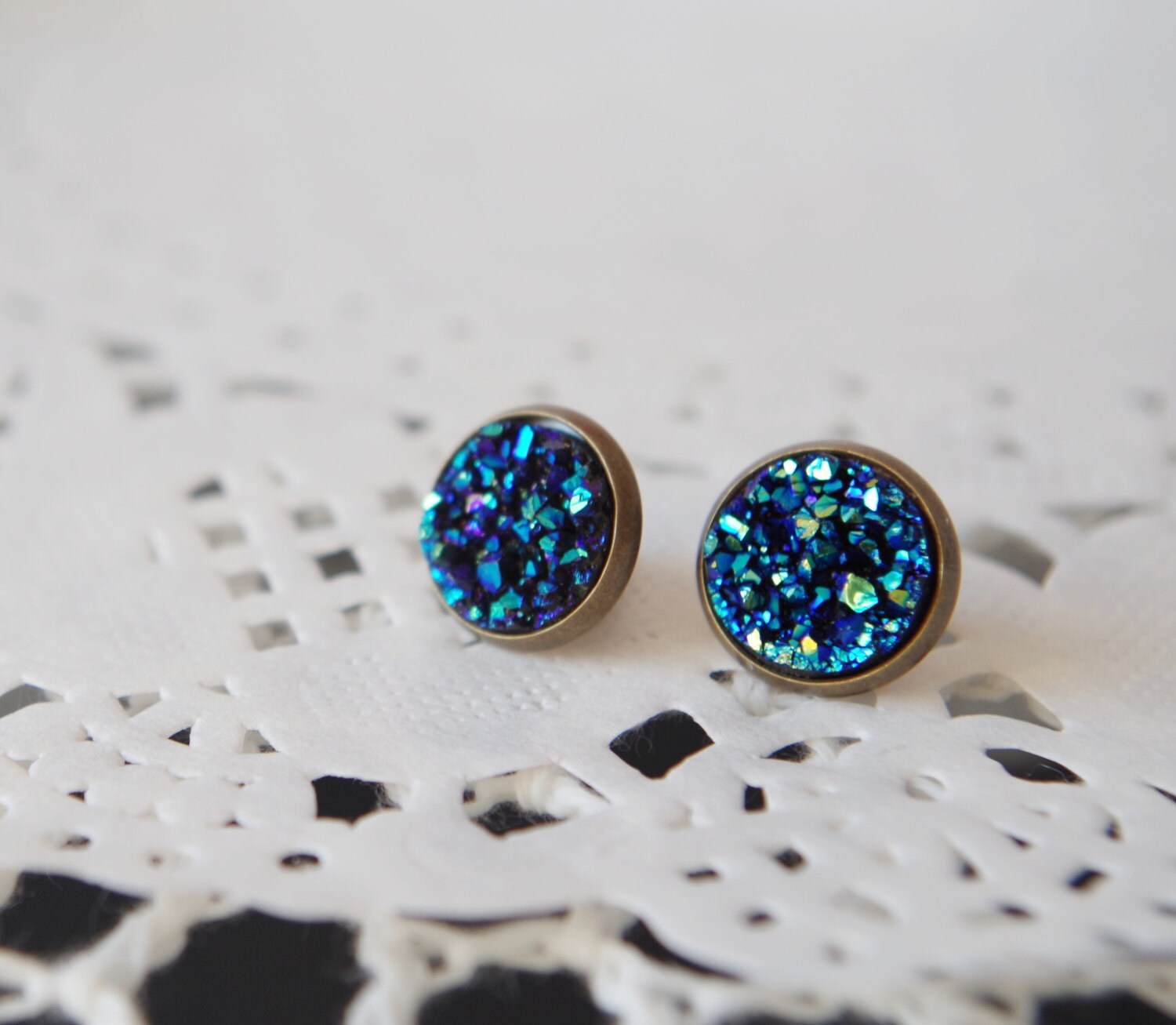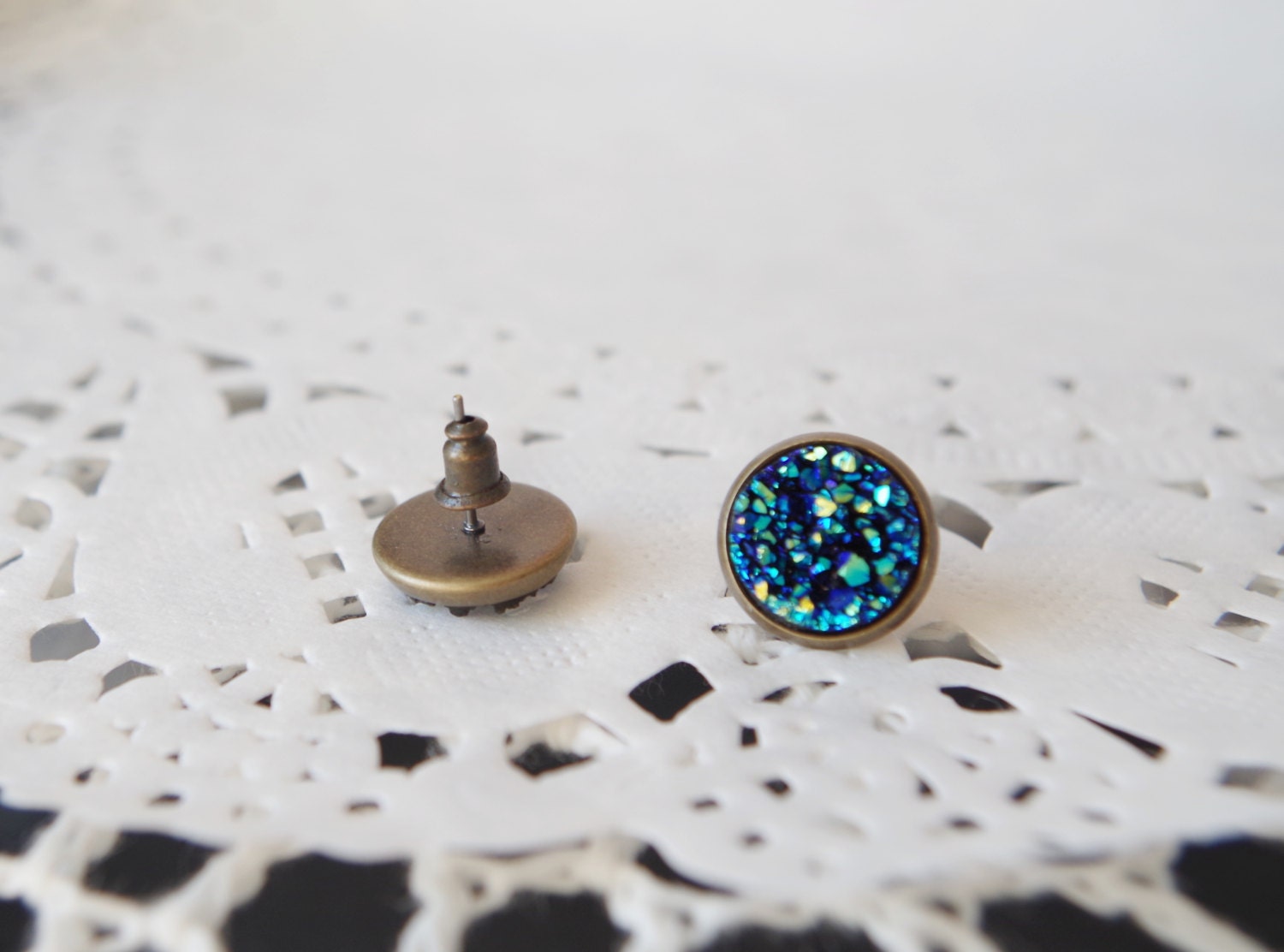 Blue druzy stud earrings Druzy post Druzy jewelry Small blue druzy studs Faux crystal earrings Crystal earrings Bridesmaid jewelry Tiny stud