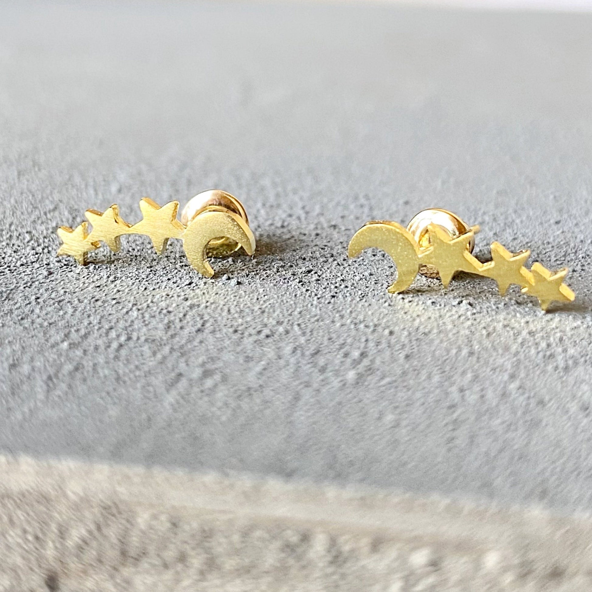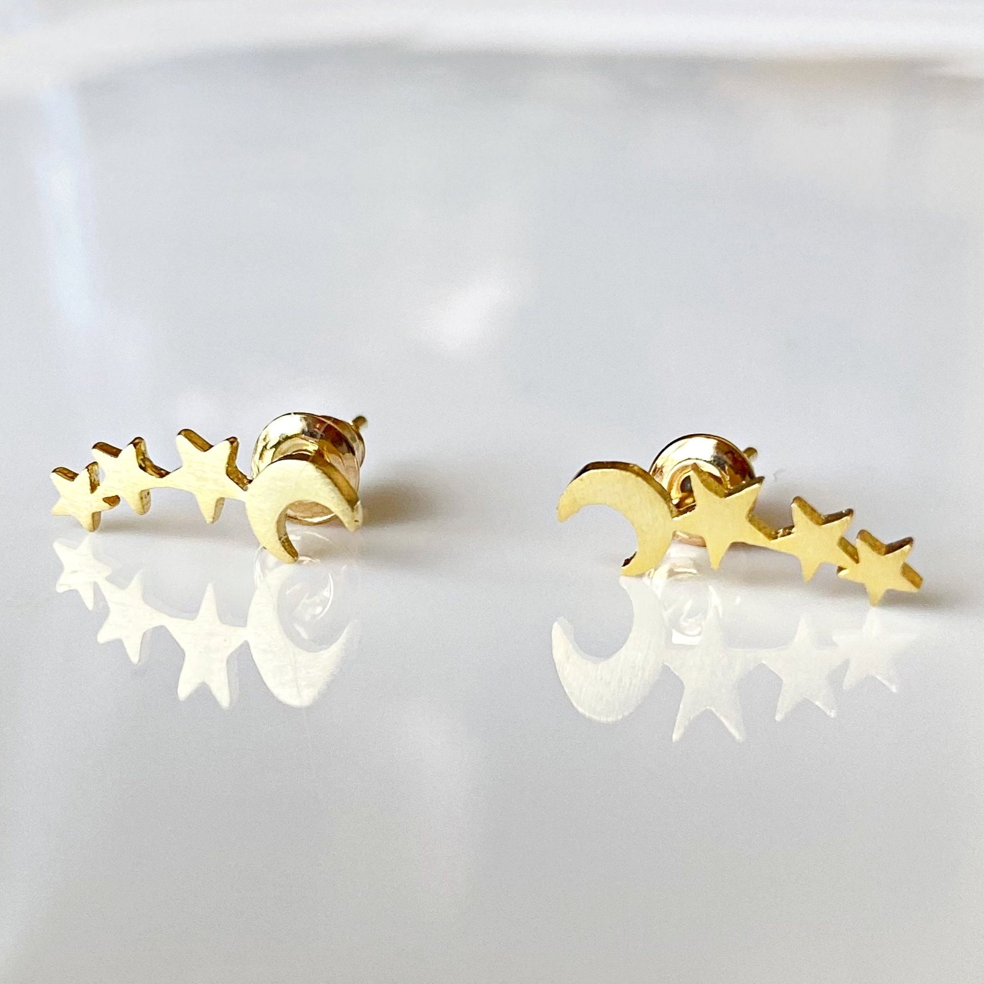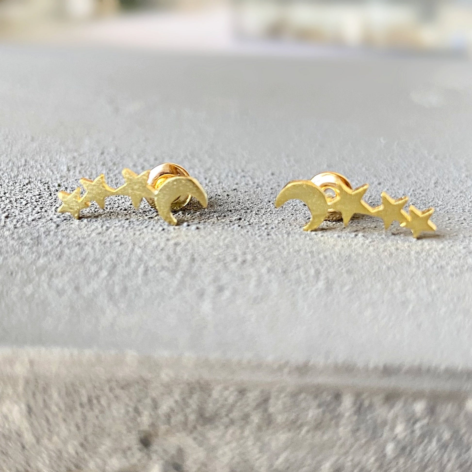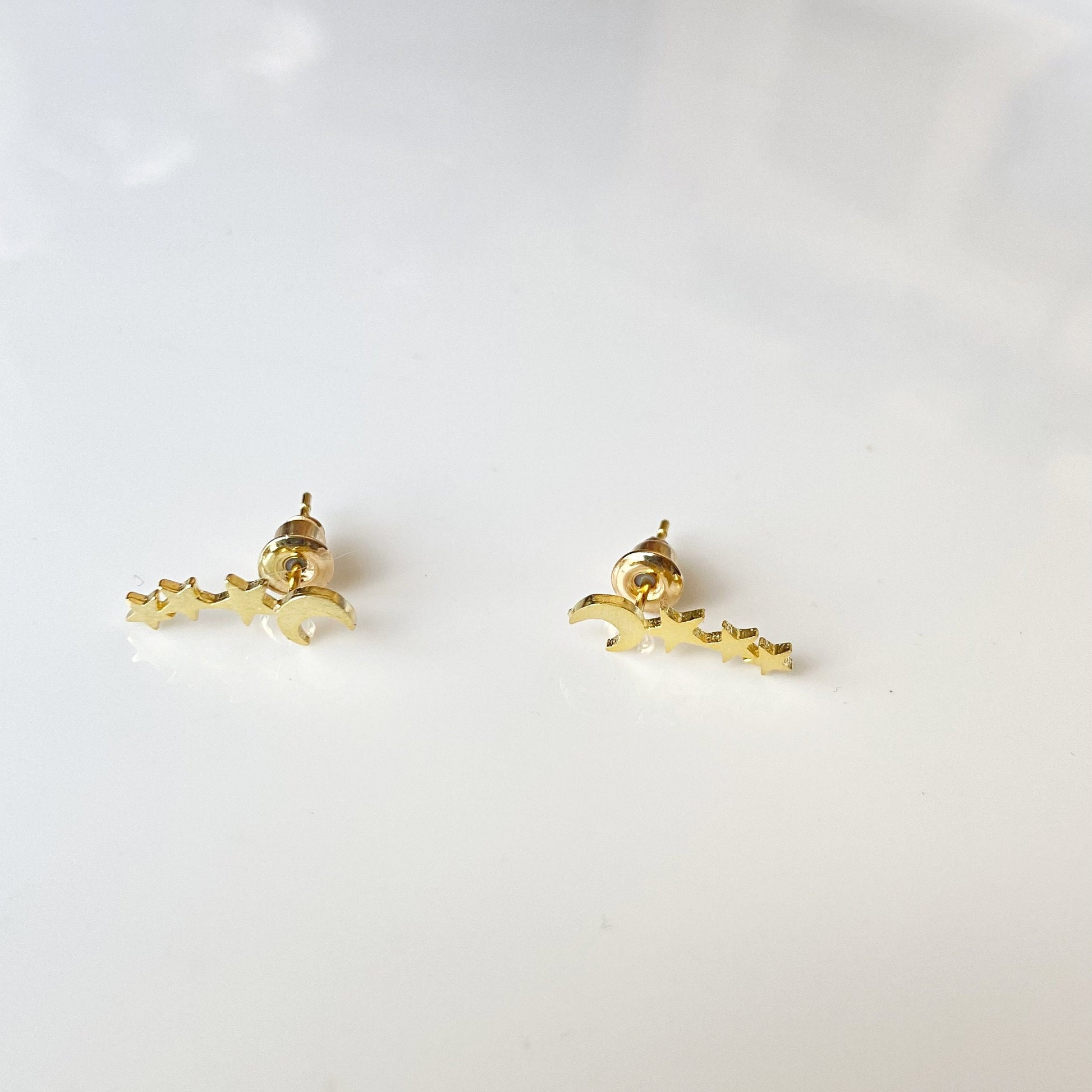 Crescent Moon and Stars Ear Climber Small ear climber Ensemble Stars Delicate Ear Climbers