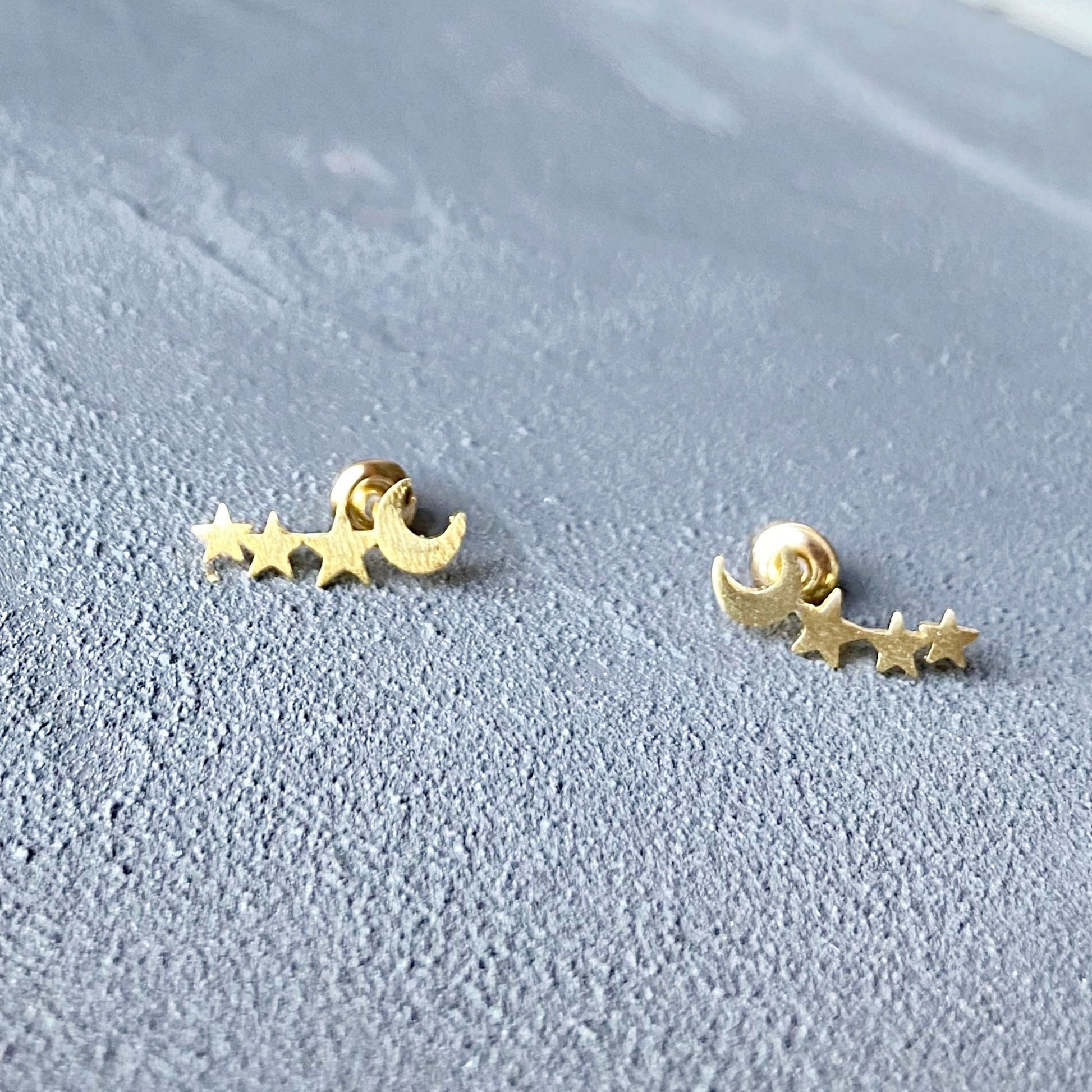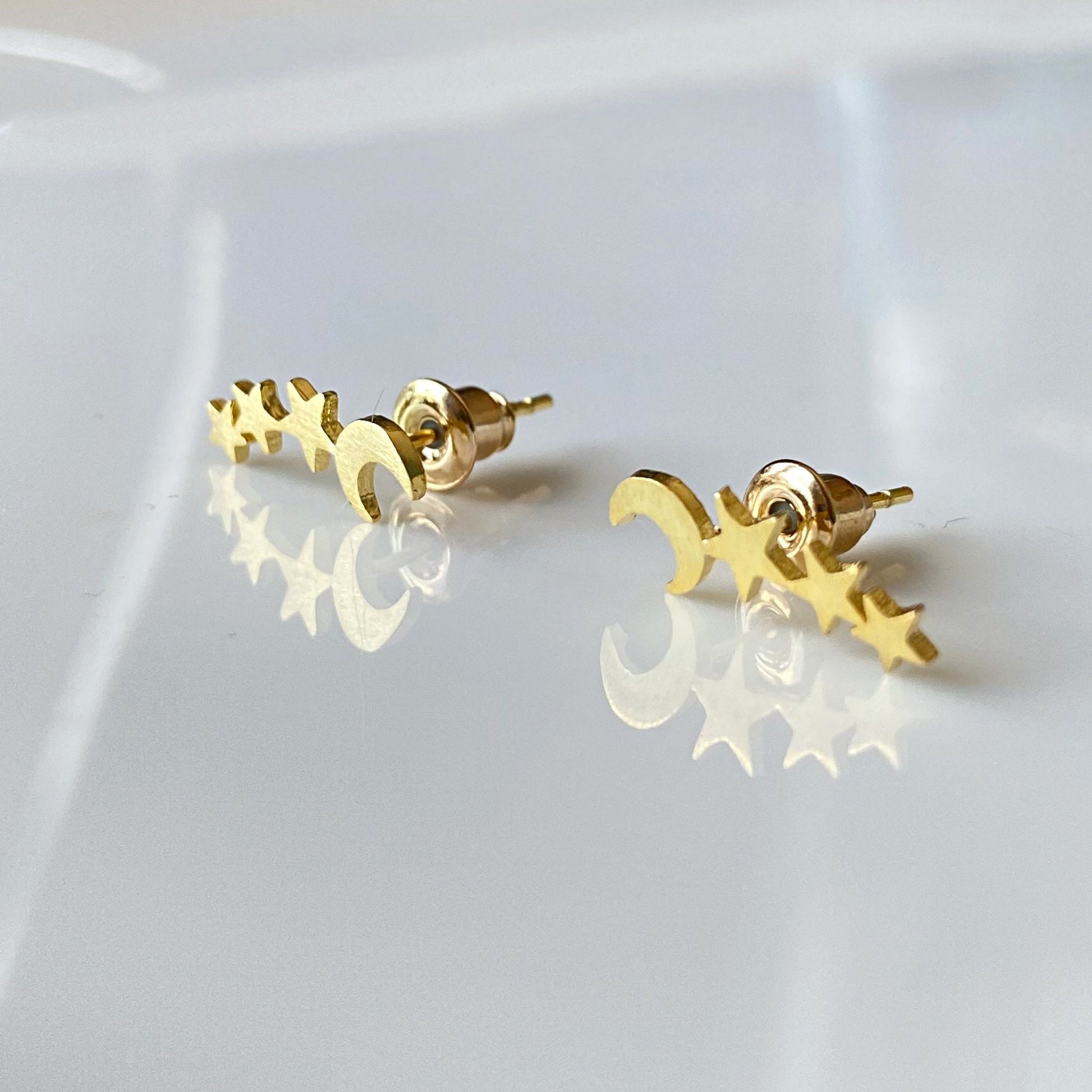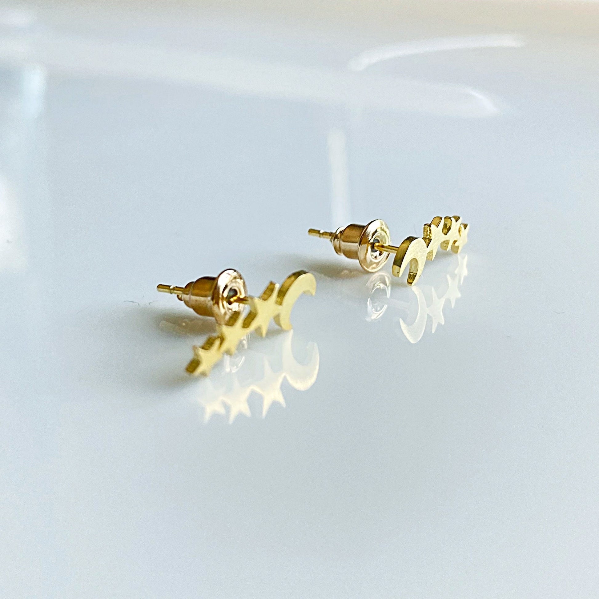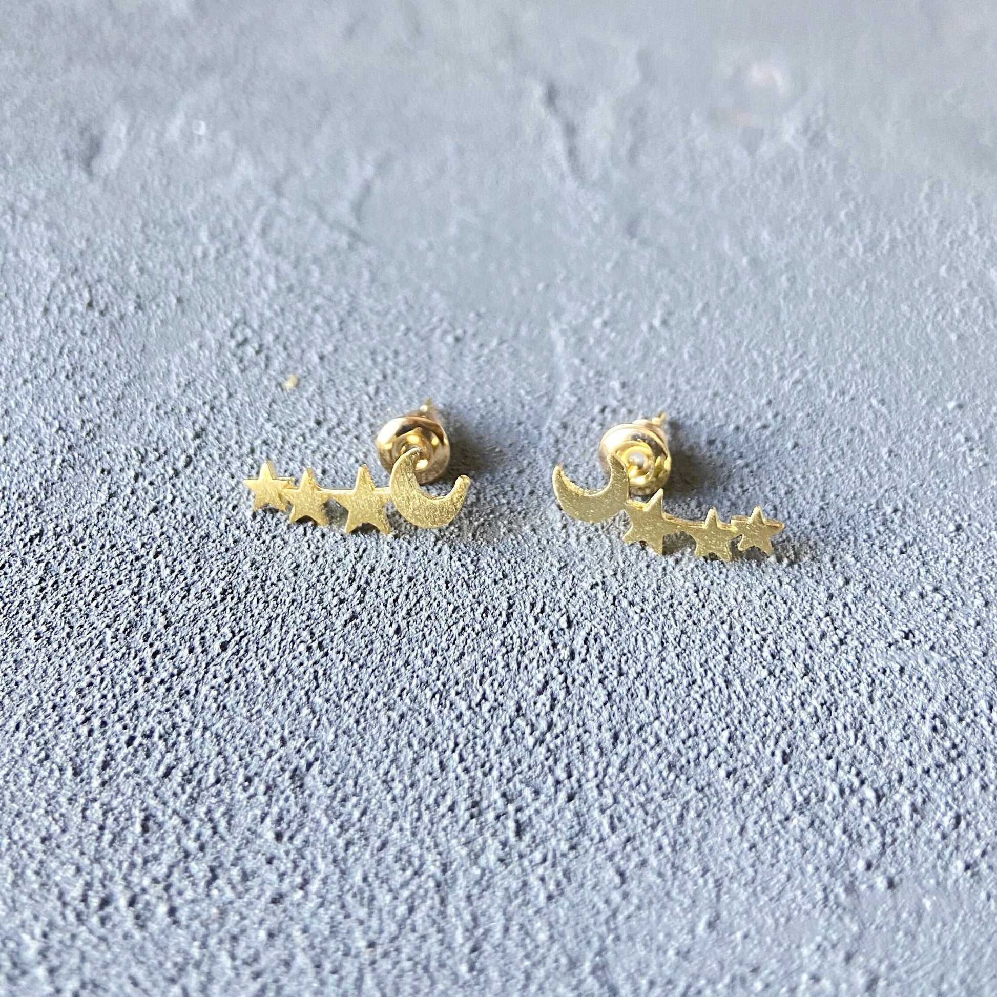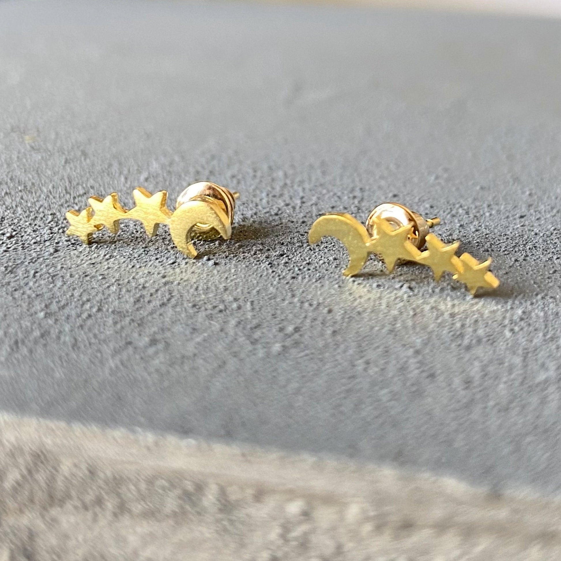 Crescent Moon and Stars Ear Climber Small ear climber Ensemble Stars Delicate Ear Climbers