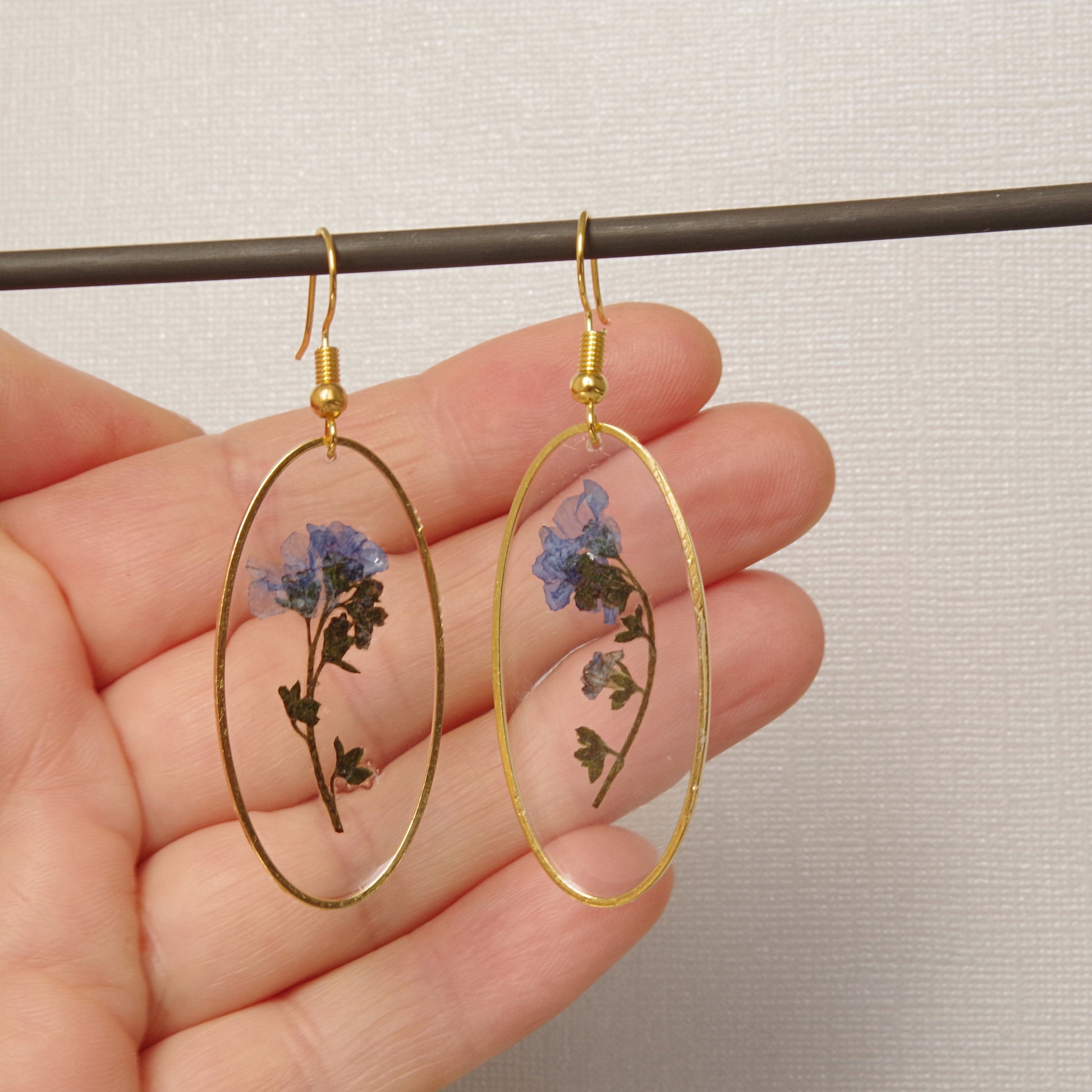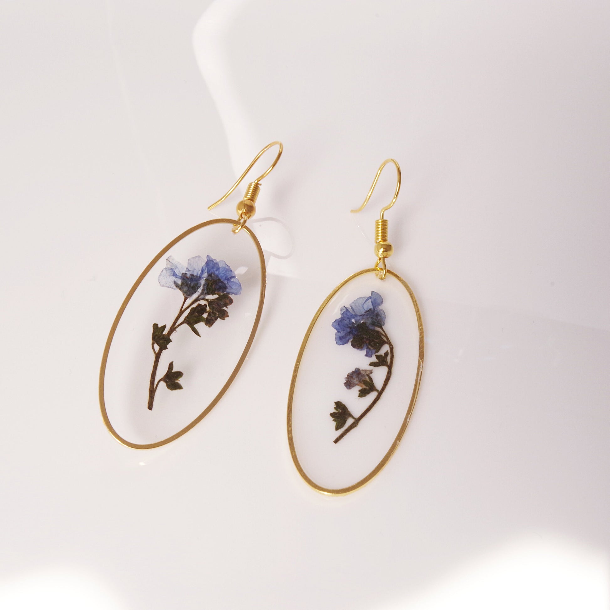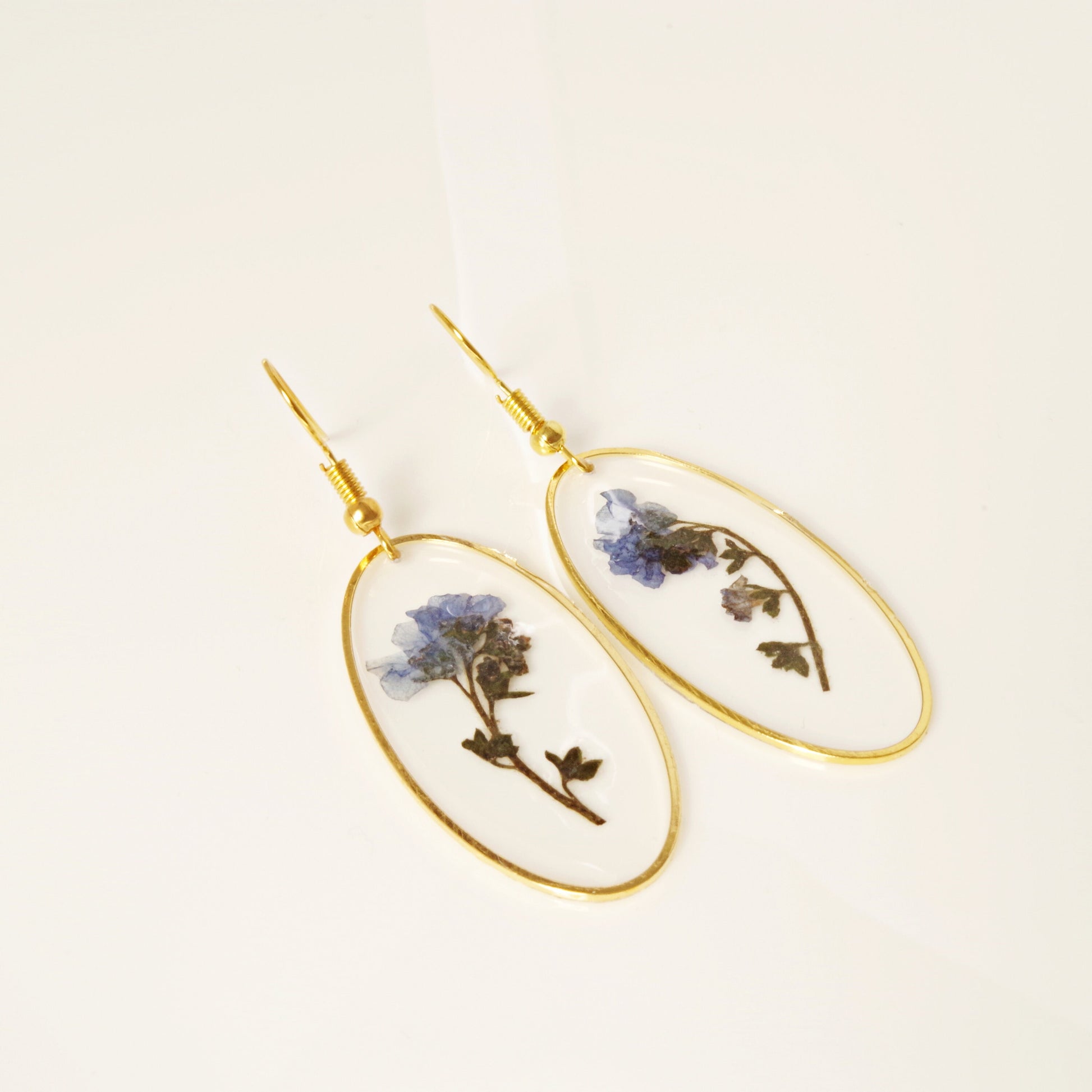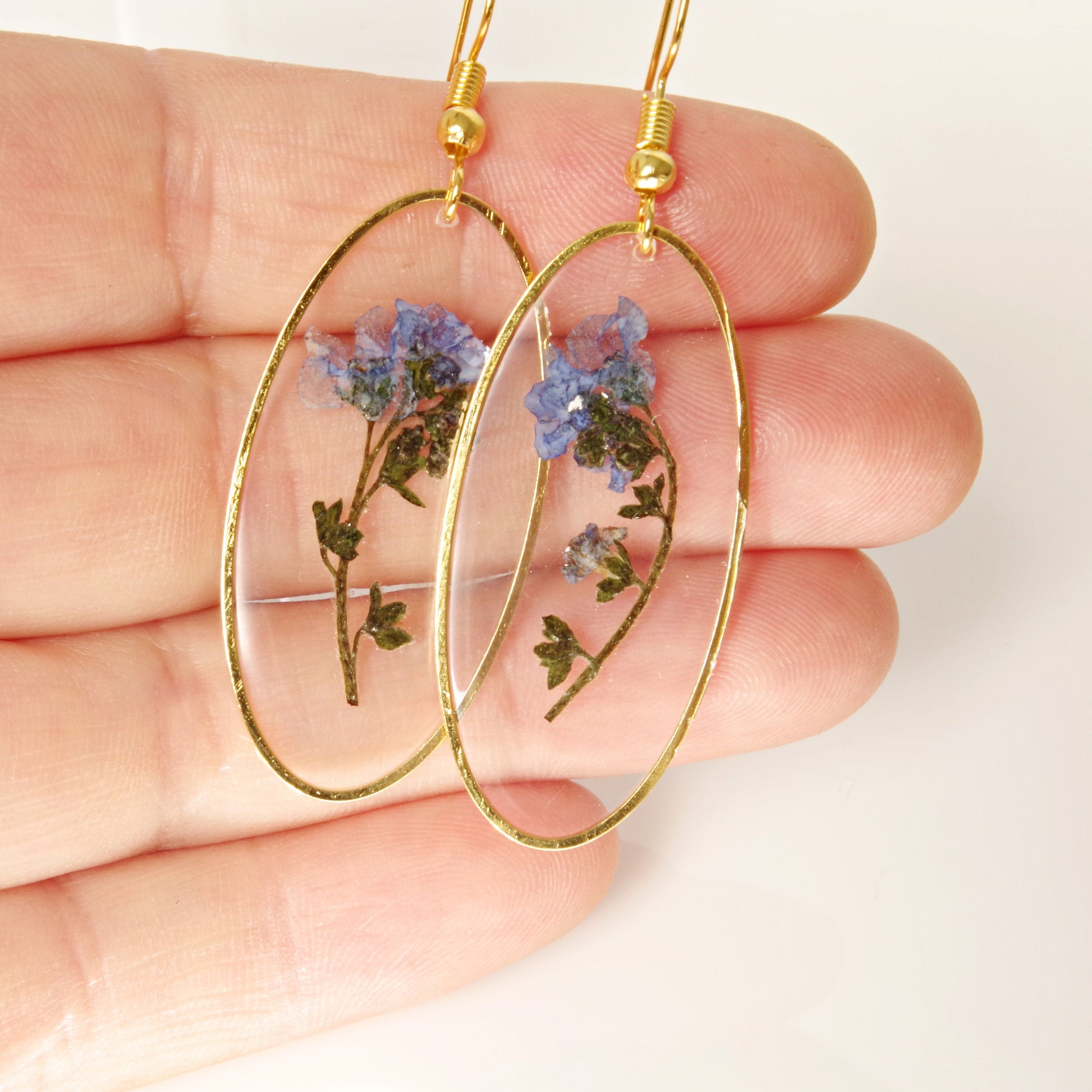 Blue The Forget Me Not flower represents fidelity and never-ending love. The forget-me-not flowers are used to decorate gifts with the hope the recipient will not forget the giver. It also symbolizes faithful love and memories. This elegant earrings contains a real dried and pressed Forget-Me-Not flowers. Do you love nature ? These unique earrings feature real pressed flowers .Perfect for your everyday wearing or special unique gifts for her , mom, grandma ,women ! A plants Forget Me Not Flower are locked in a resin forever. I adore picking and drying flowers. Flowers that are used in my jewelry are the ones I have picked on meadows and my garden. Forget Me Not jewelry: https://www.etsy.com/shop/NewJewelleryStory?ref=seller-platform-mcnav§ion_id=24437926 Dandelion jewelry: https://www.etsy.com/shop/NewJewelleryStory?ref=seller-platform-mcnav§ion_id=22403224 Real flower jewelry: https://www.etsy.com/shop/NewJewelleryStory?ref=seller-platform-mcnav§ion_id=22449829 All items come wrapped individually in a ribboned gift box. Please visit all the items from my shop here: https://www.etsy.com/fr/shop/NewJewelleryStory?ref=hdr_shop_menu