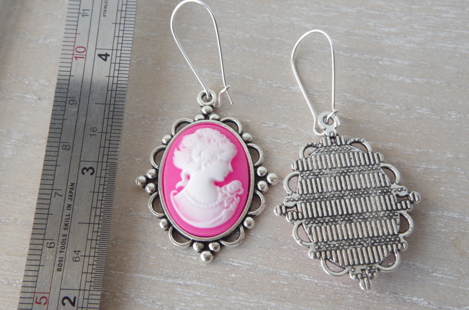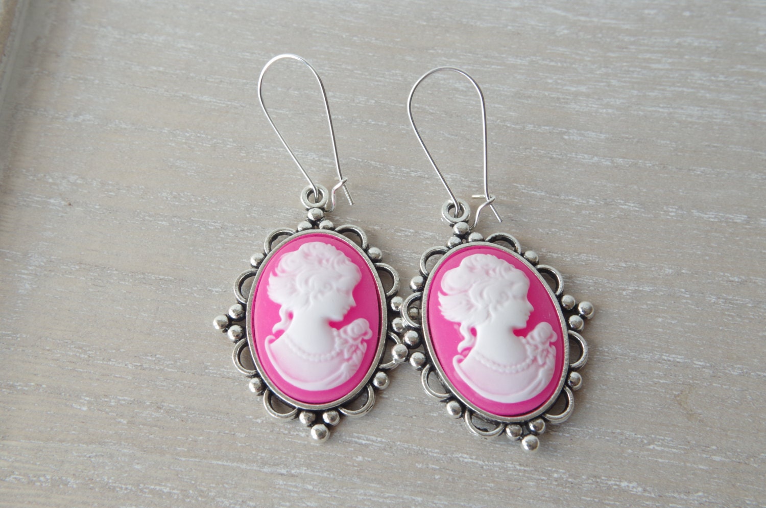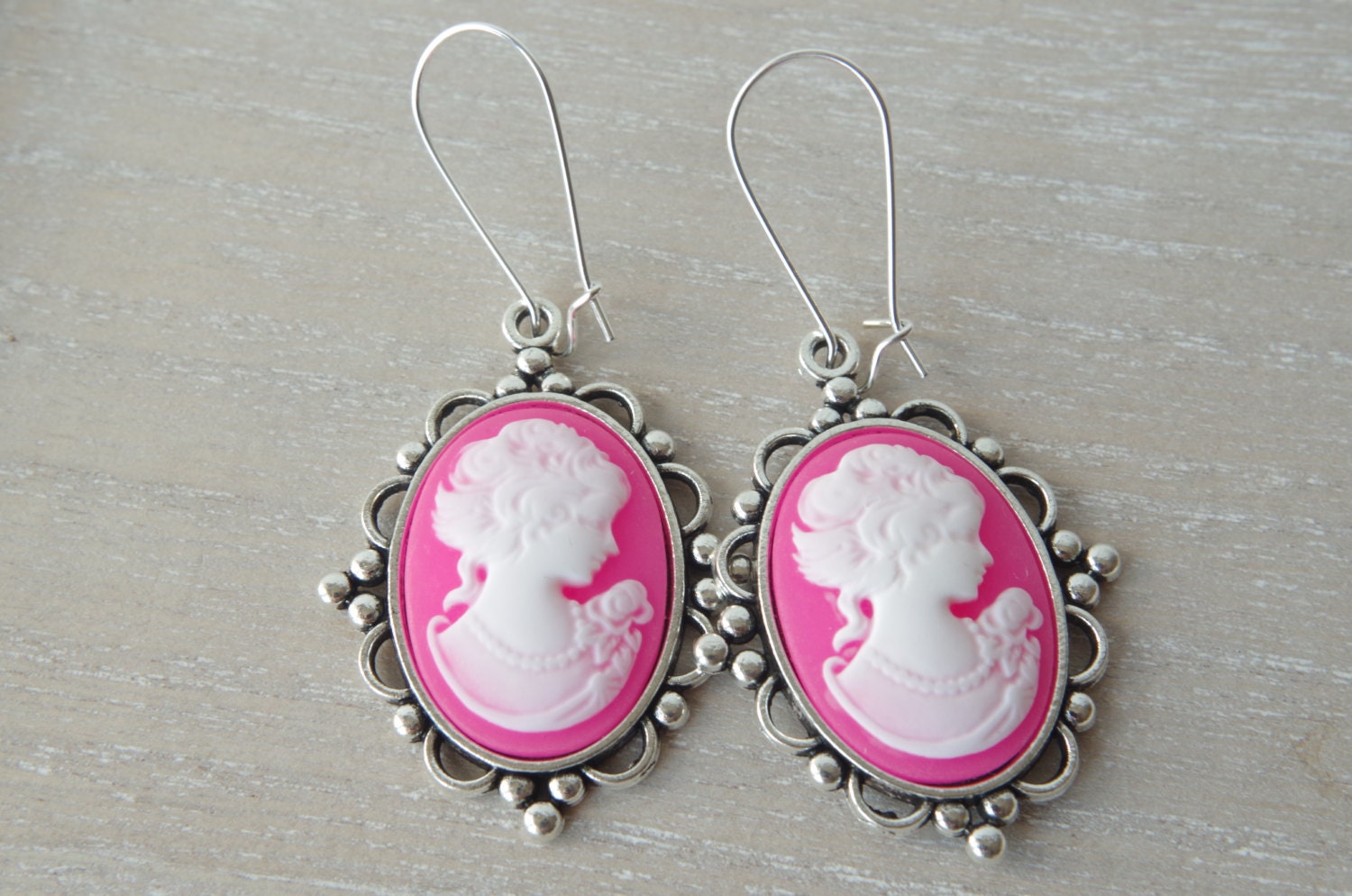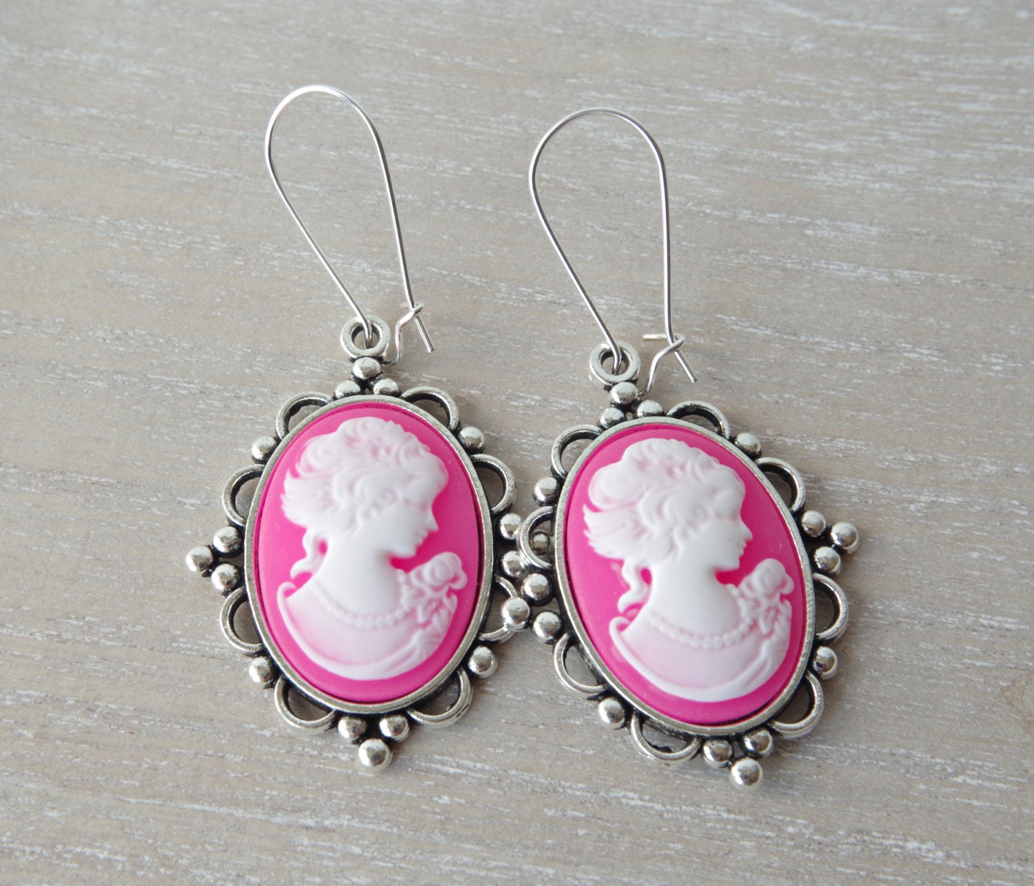 Boucles d’Oreilles Camée Rose – Portrait de Femme en Style Vintage Élégant