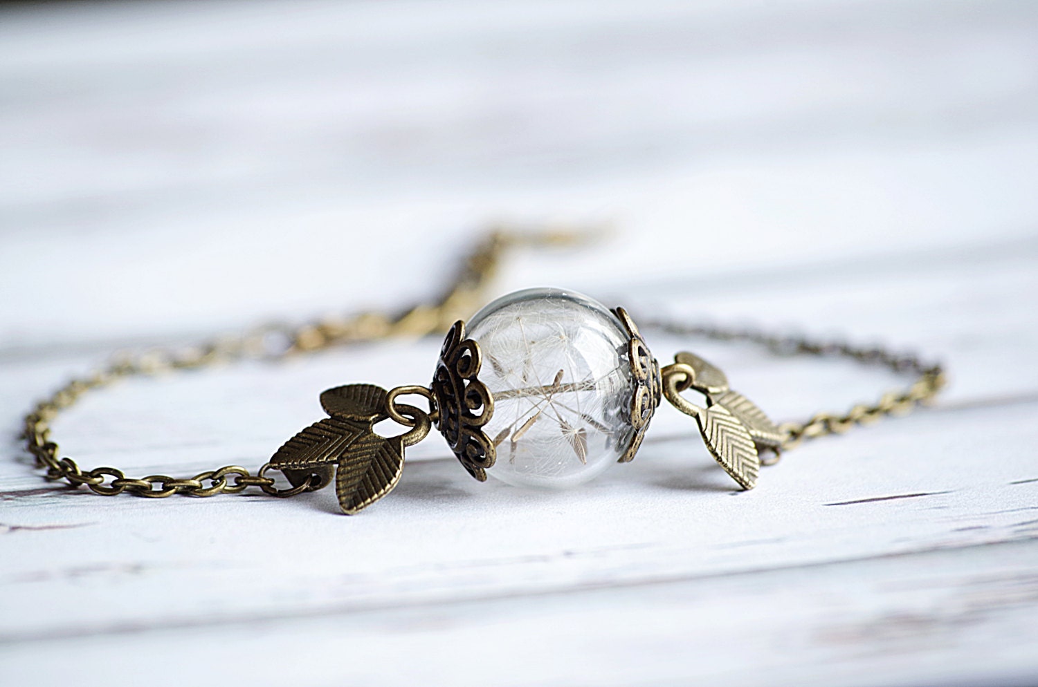 Dandelion bracelet Adjustable bracelet Dandelion seed jewelry Antique brass bracelet Nature plant Terrarium dandelion Jewelry Gift for mom