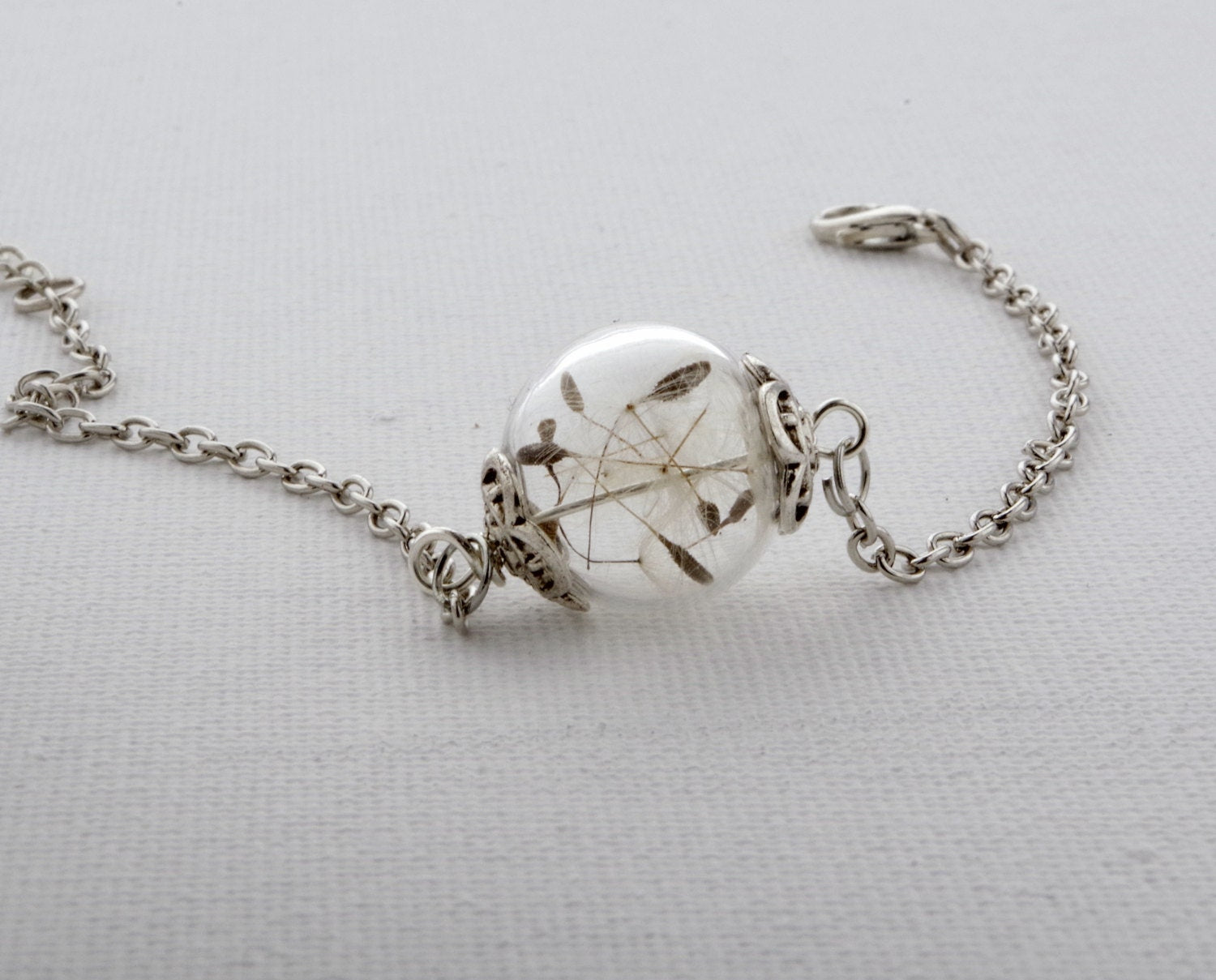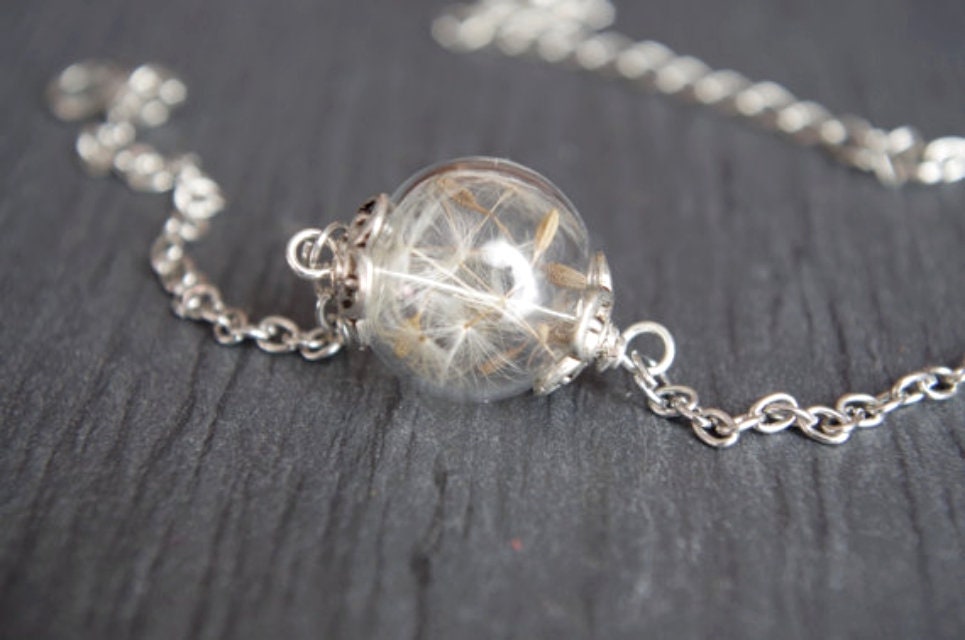 Real DANDELION glass orb bracelet silver color blown glass orb with real dandelion seeds bracelet Christmas gift Anniversary jewelry for her