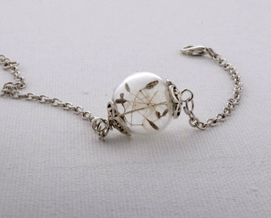Dandelion Bracelet Real flower bracelet Dandelion jewelry Terrarium Bracelet Mothers day gift mom Real Plant Anniversary gift for her