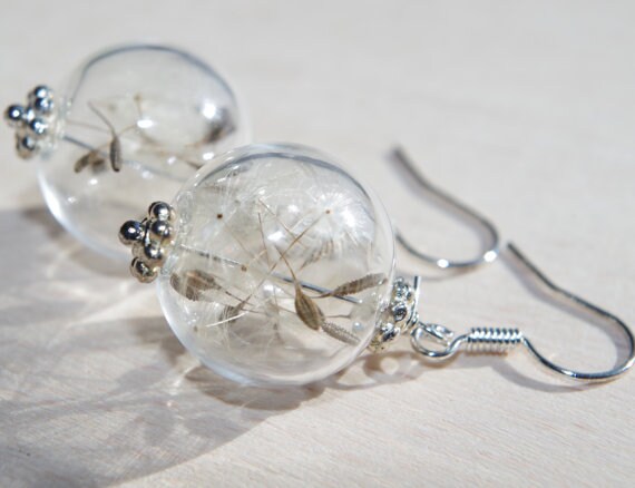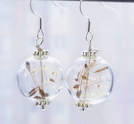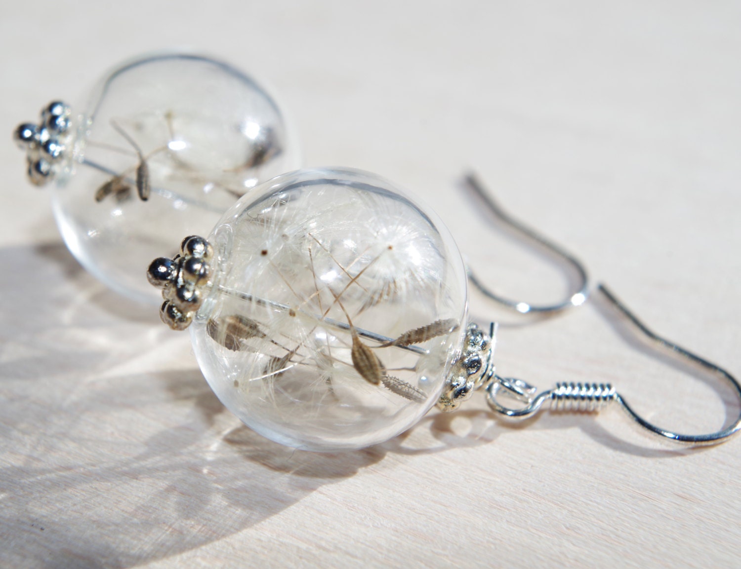 Dandelion earrings Glass globe earrings Dandelion dangle earrings Romantic Jewelry Hypoallergenic dandelion seed earrings Terrarium Jewelry