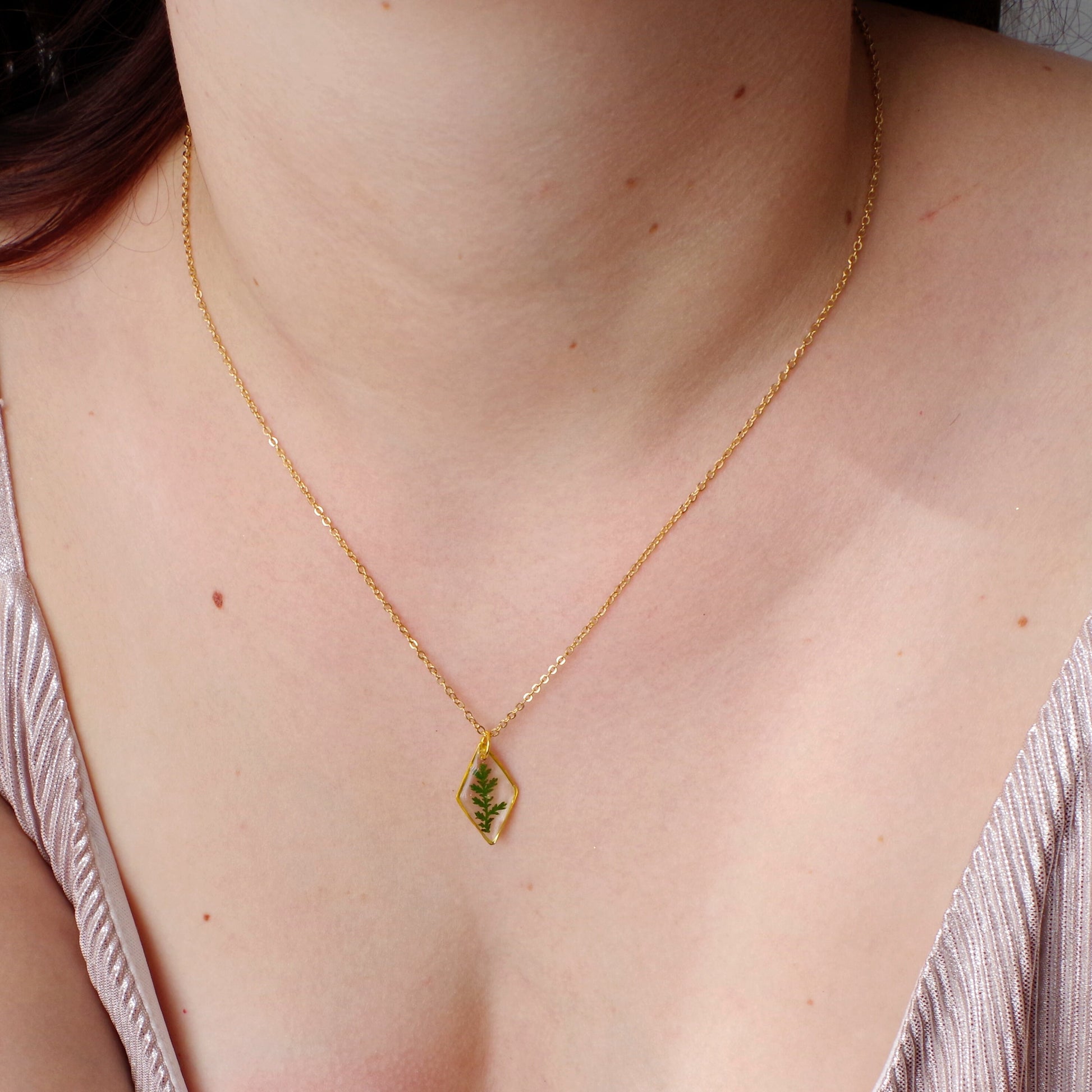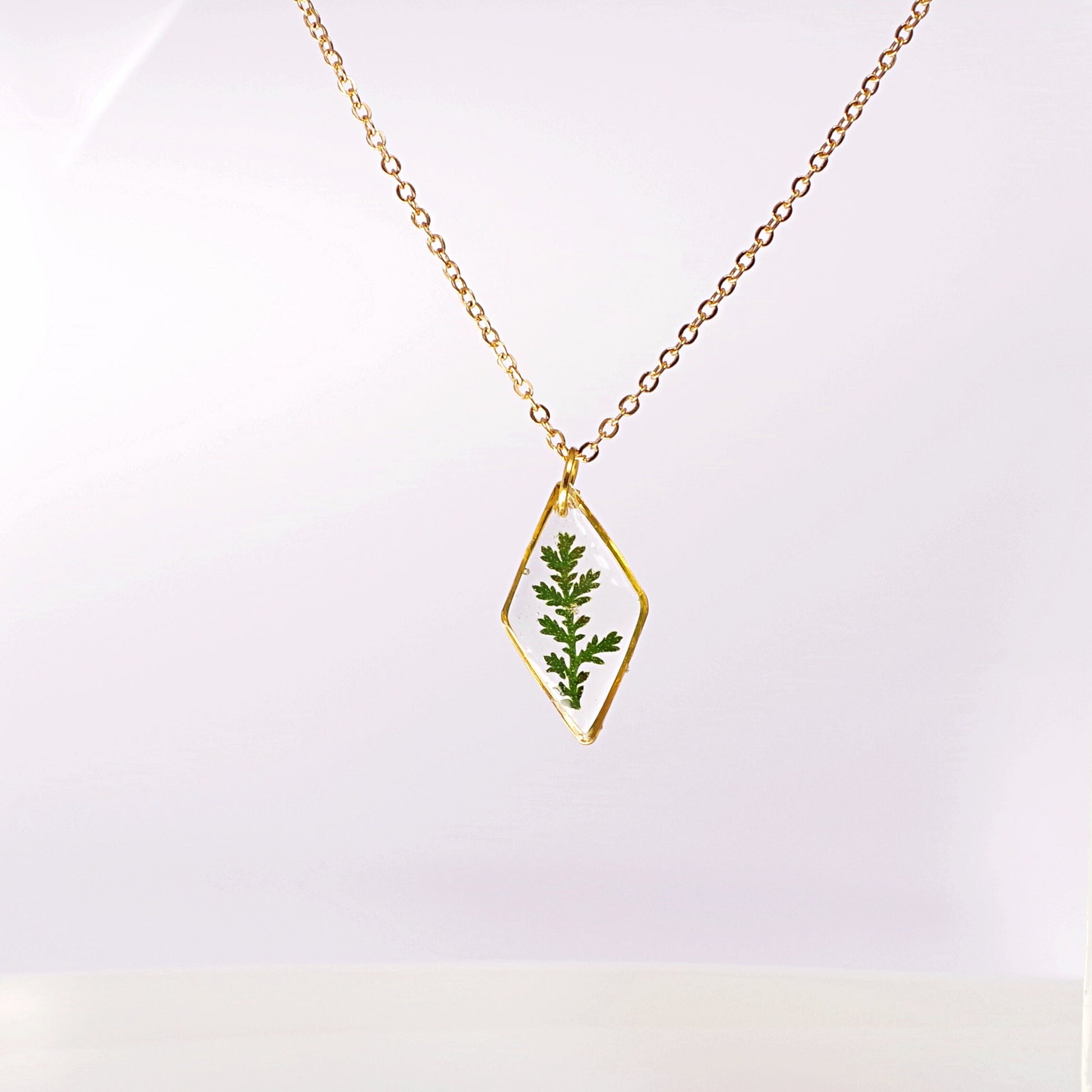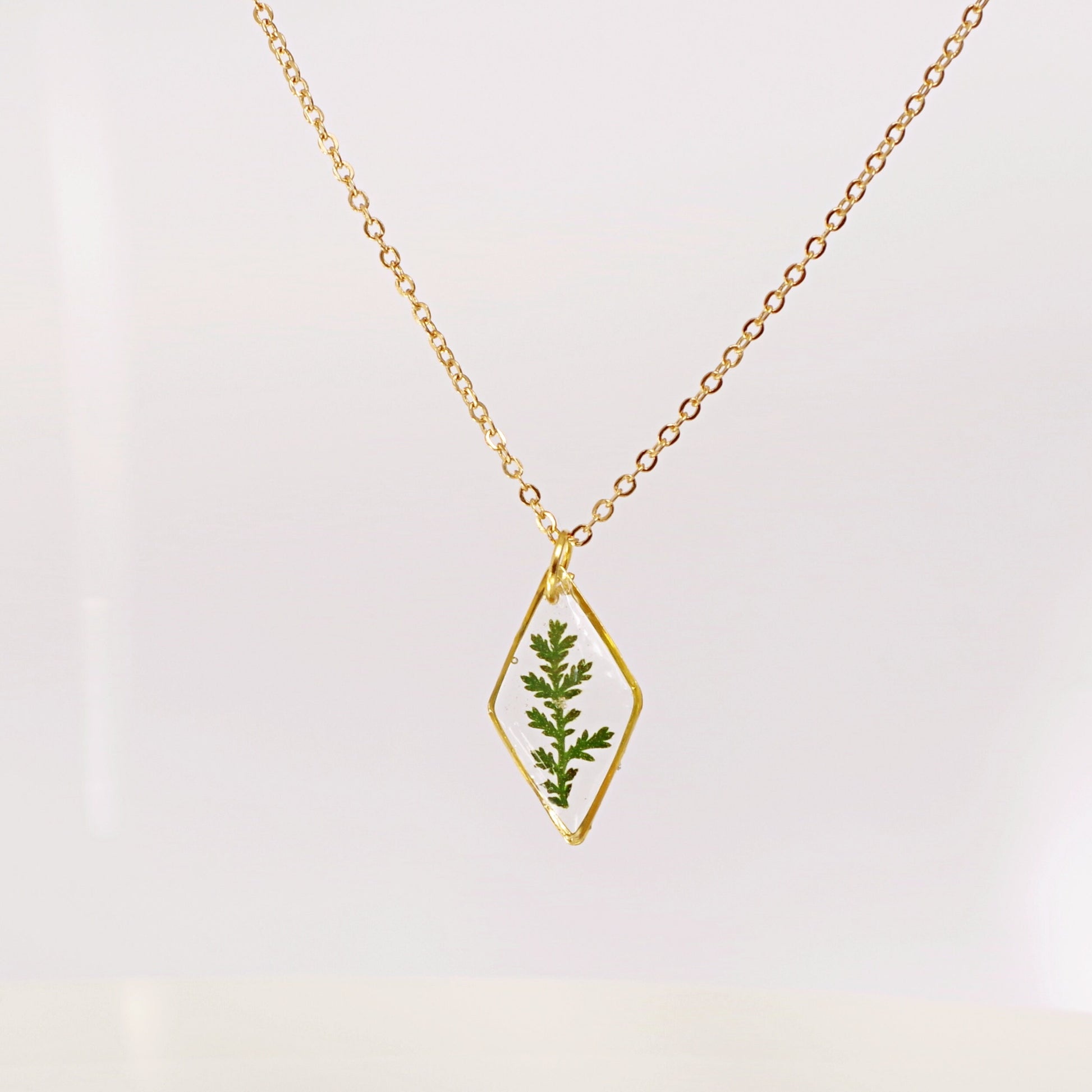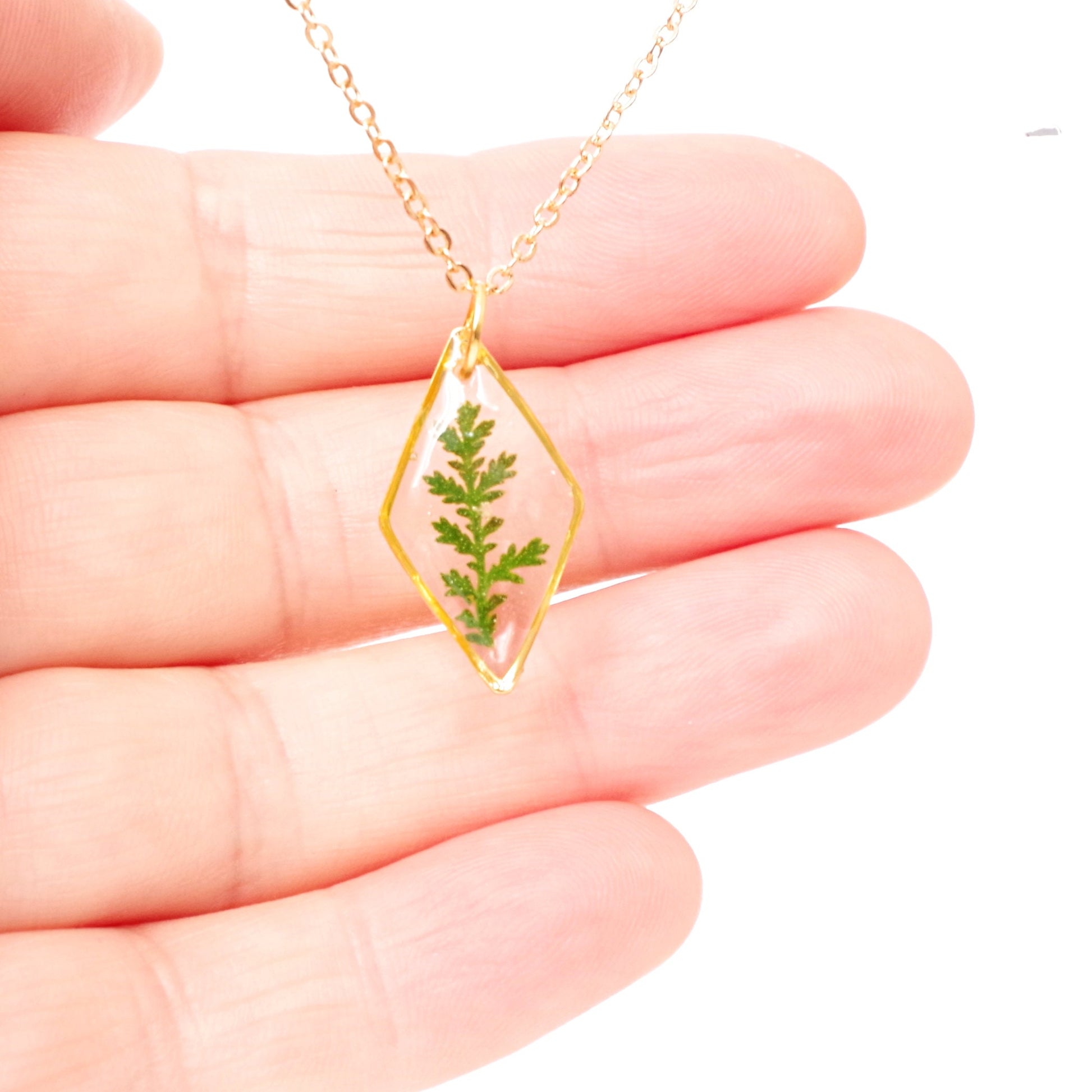 Gold necklace with real pressed fern leaf in resin Mothers day gift for mom Terrarium Jewelry Botanical Jewelry