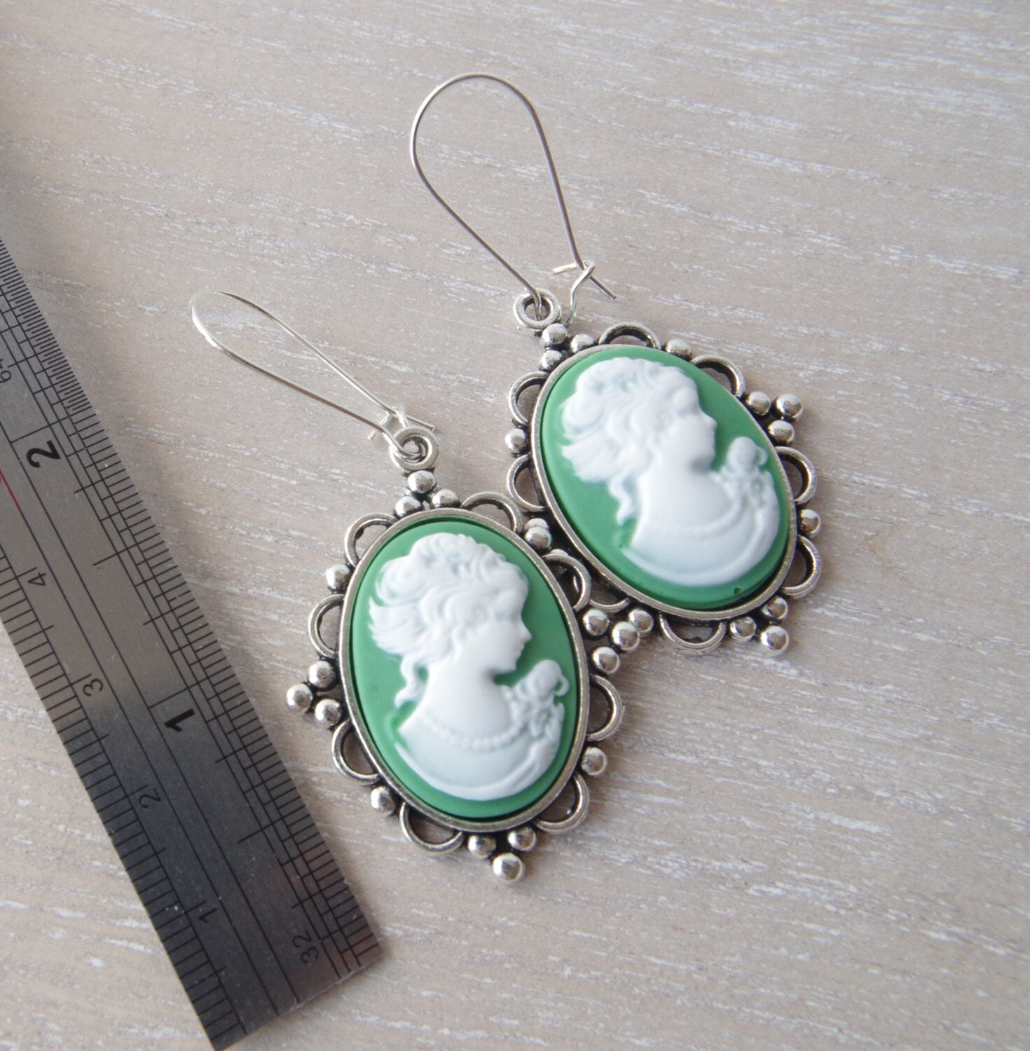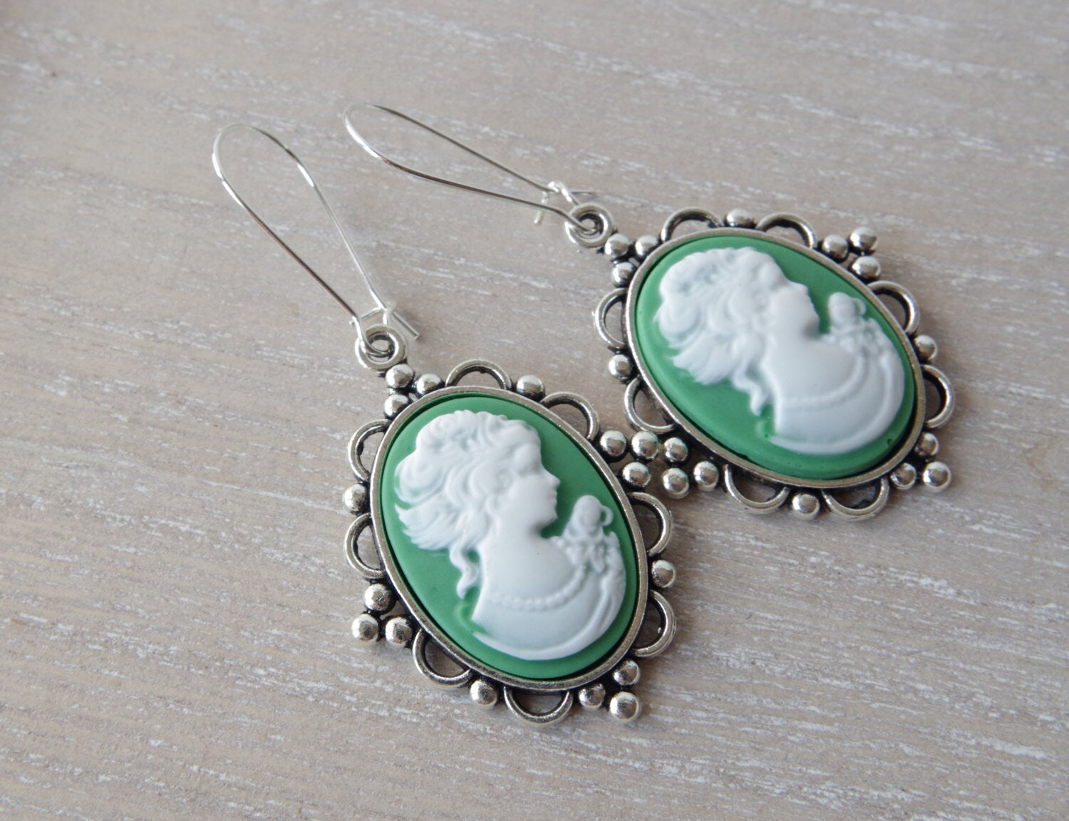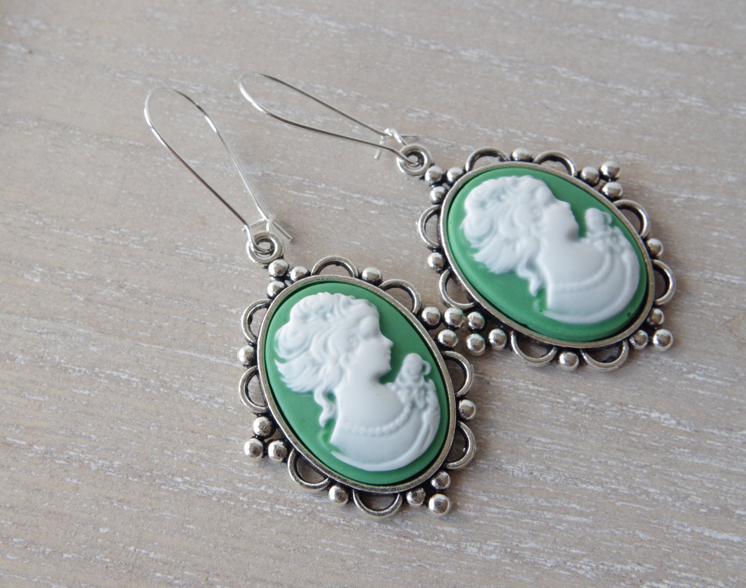 Boucles d’Oreilles Camée en Vert – Élégance Vintage et Silhouette de Dame Ivoire