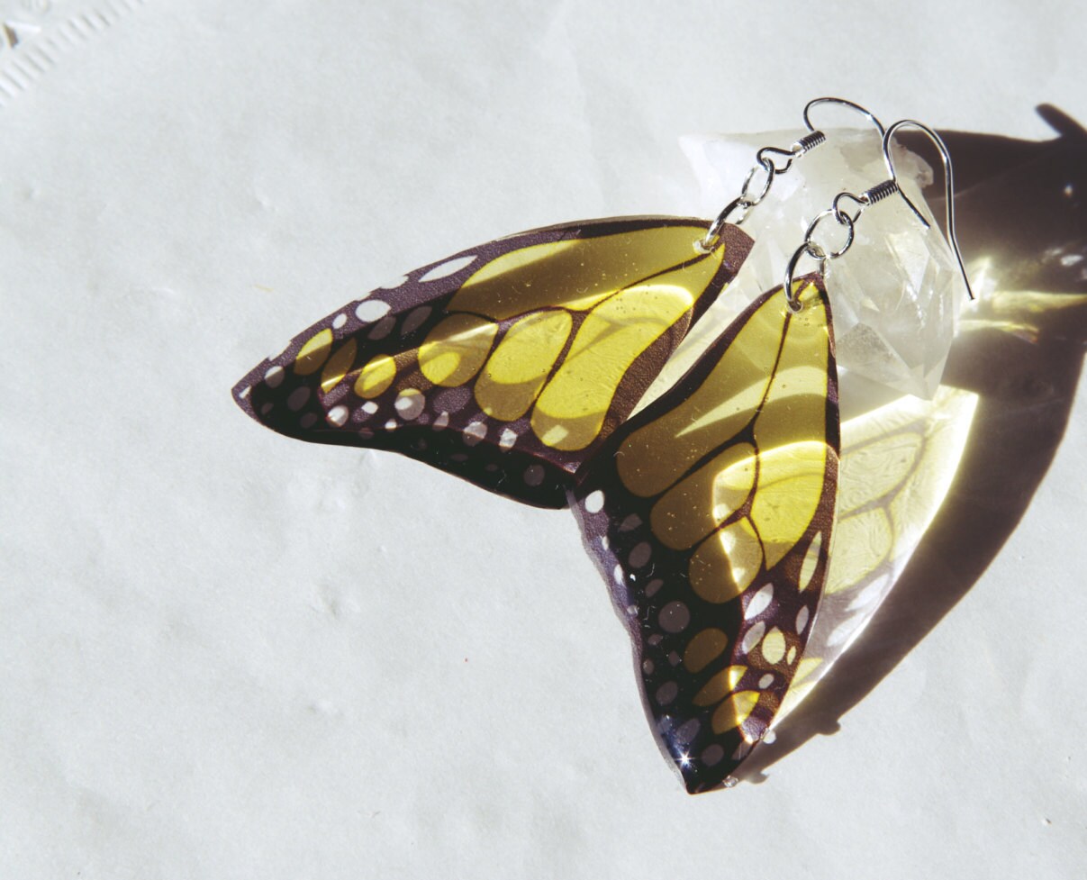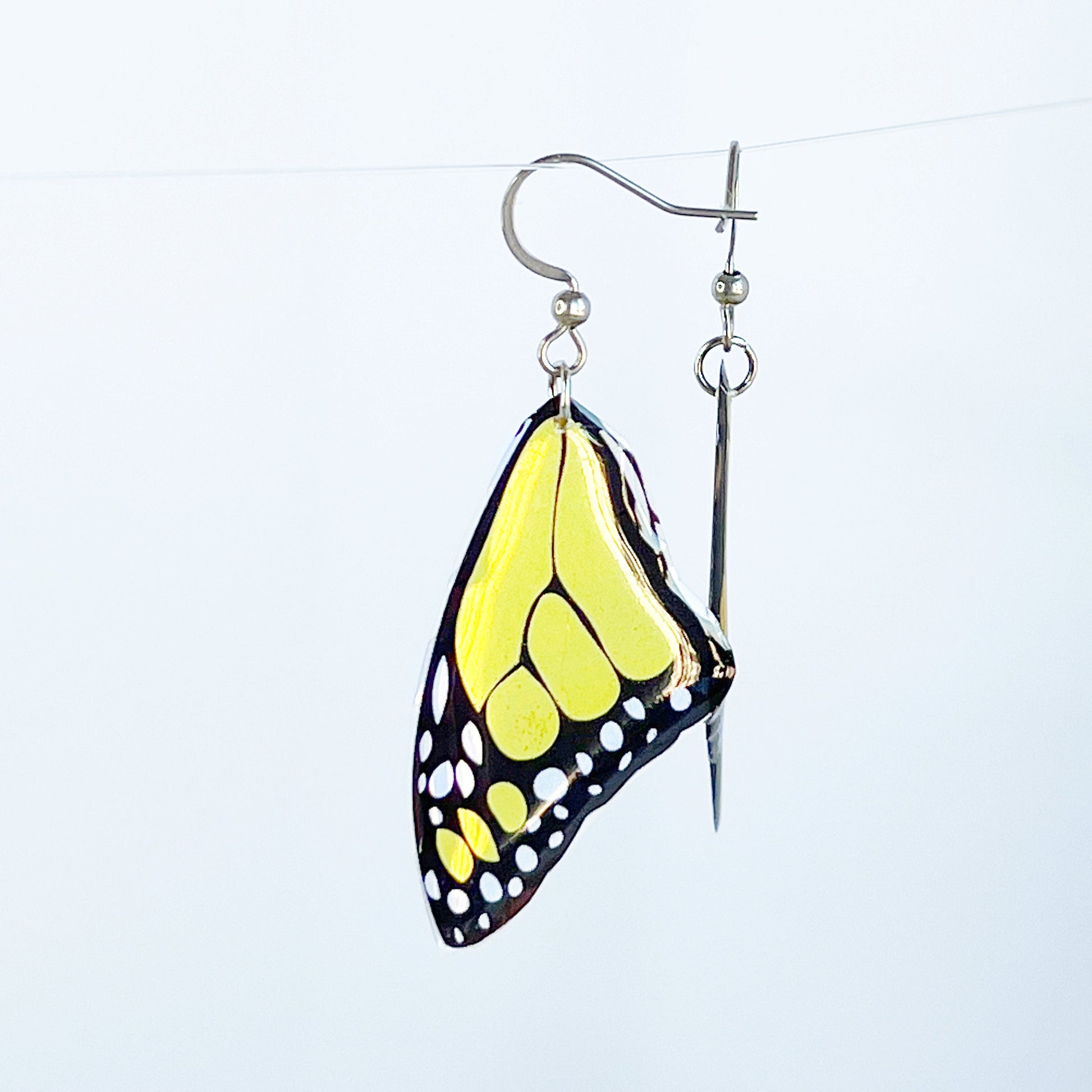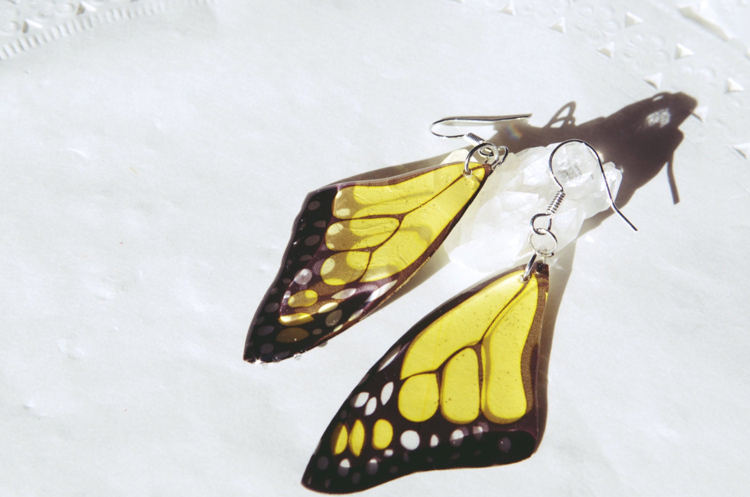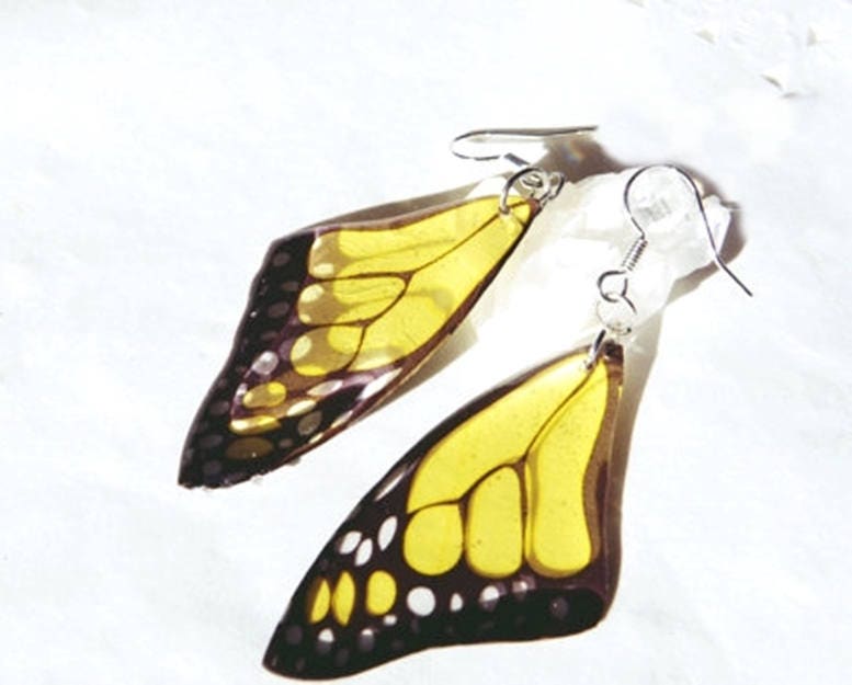 Insect jewelry Monarch butterfly jewelry Christmas gift Birthday Butterfly wings Yellow earrings Dangle earrings Insect earrings Eco resin