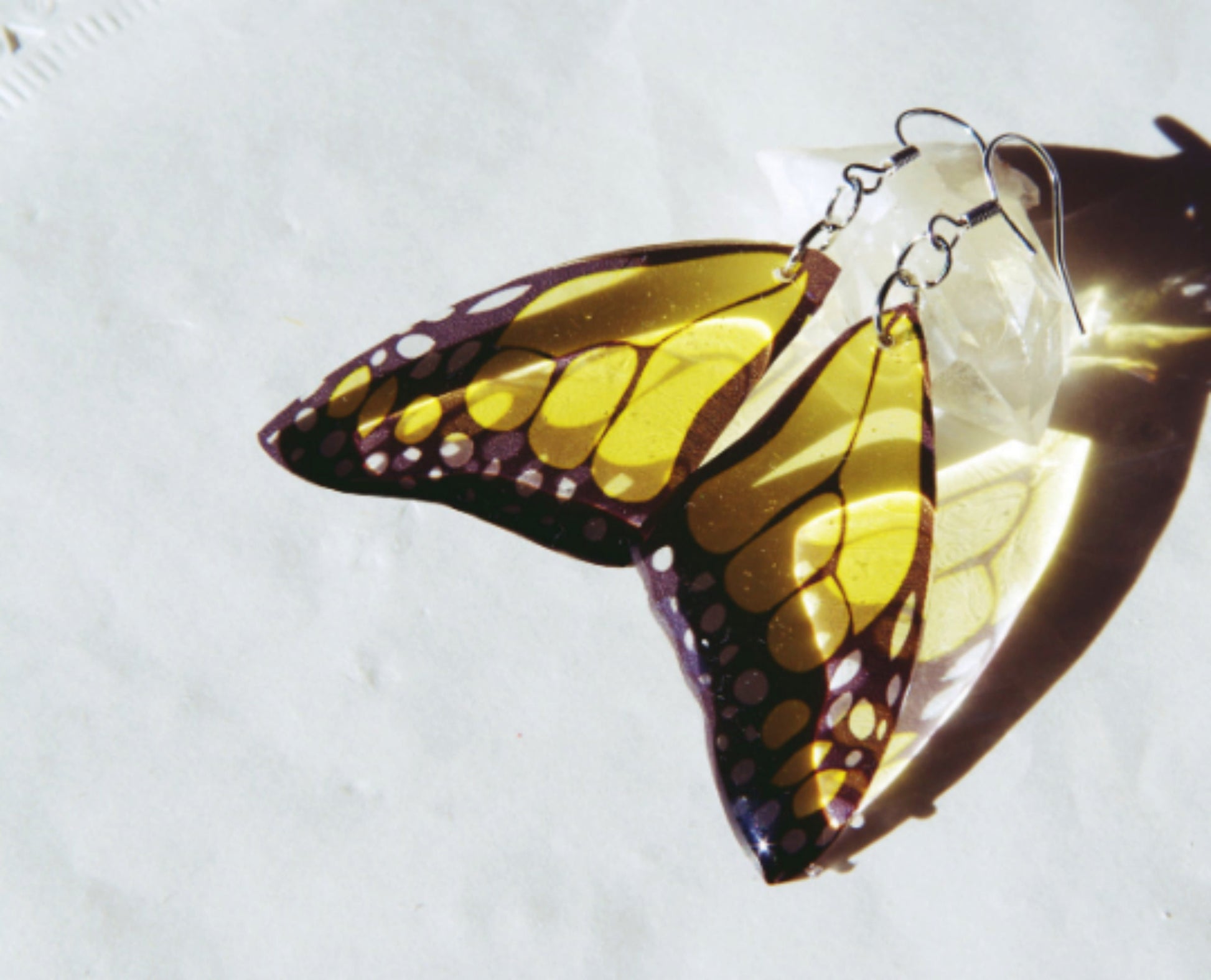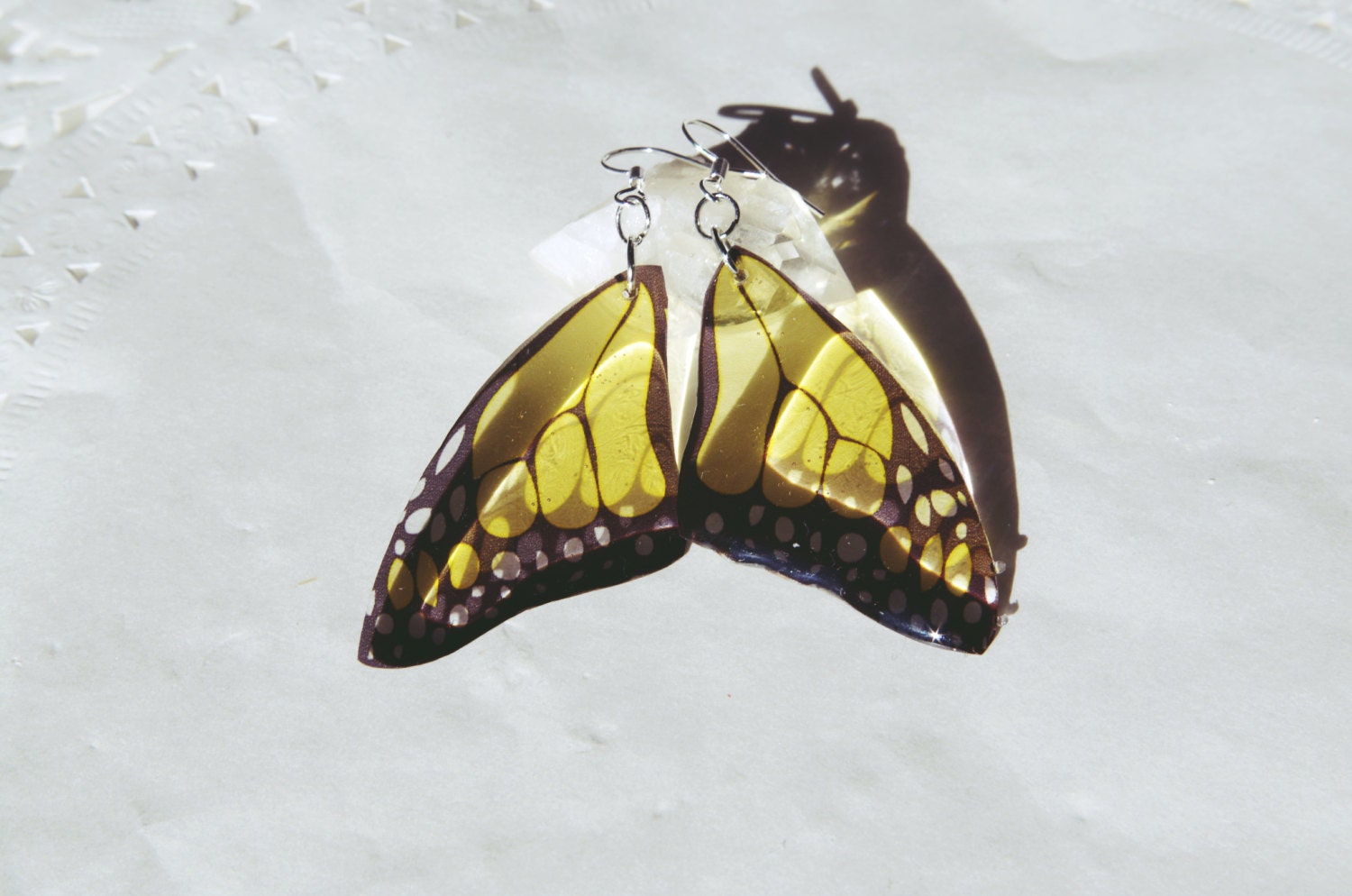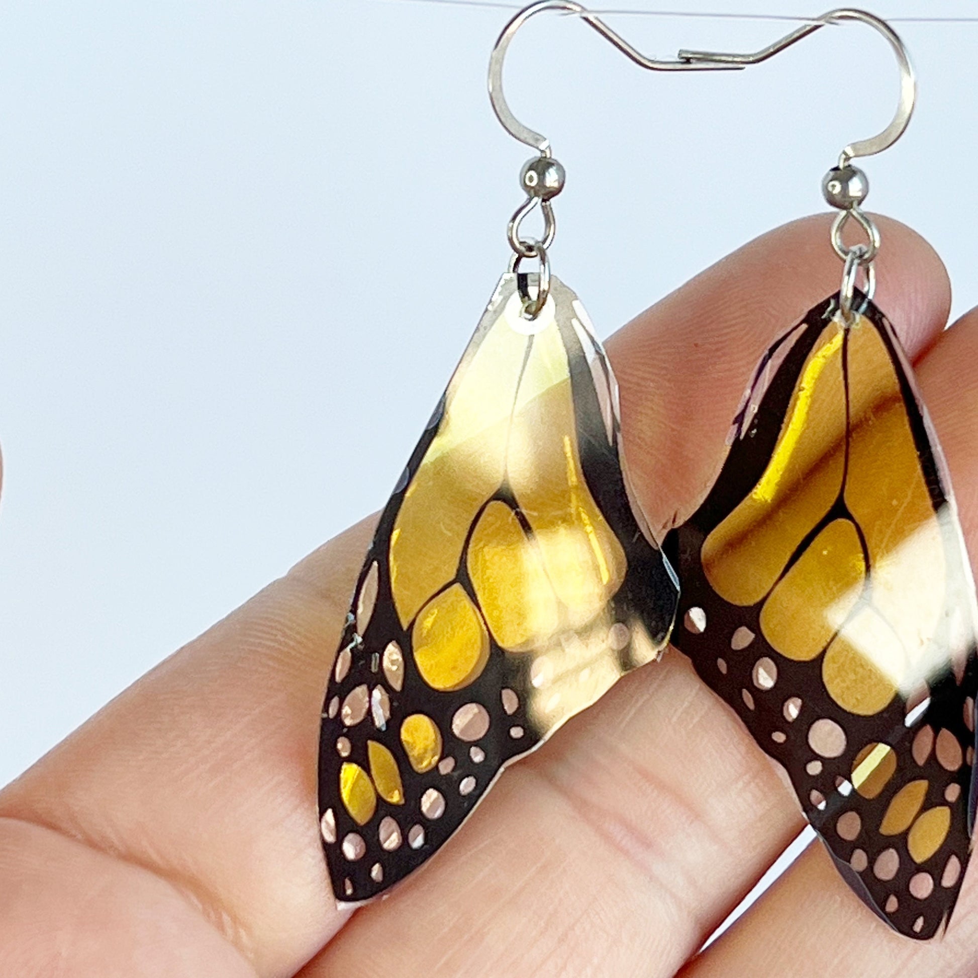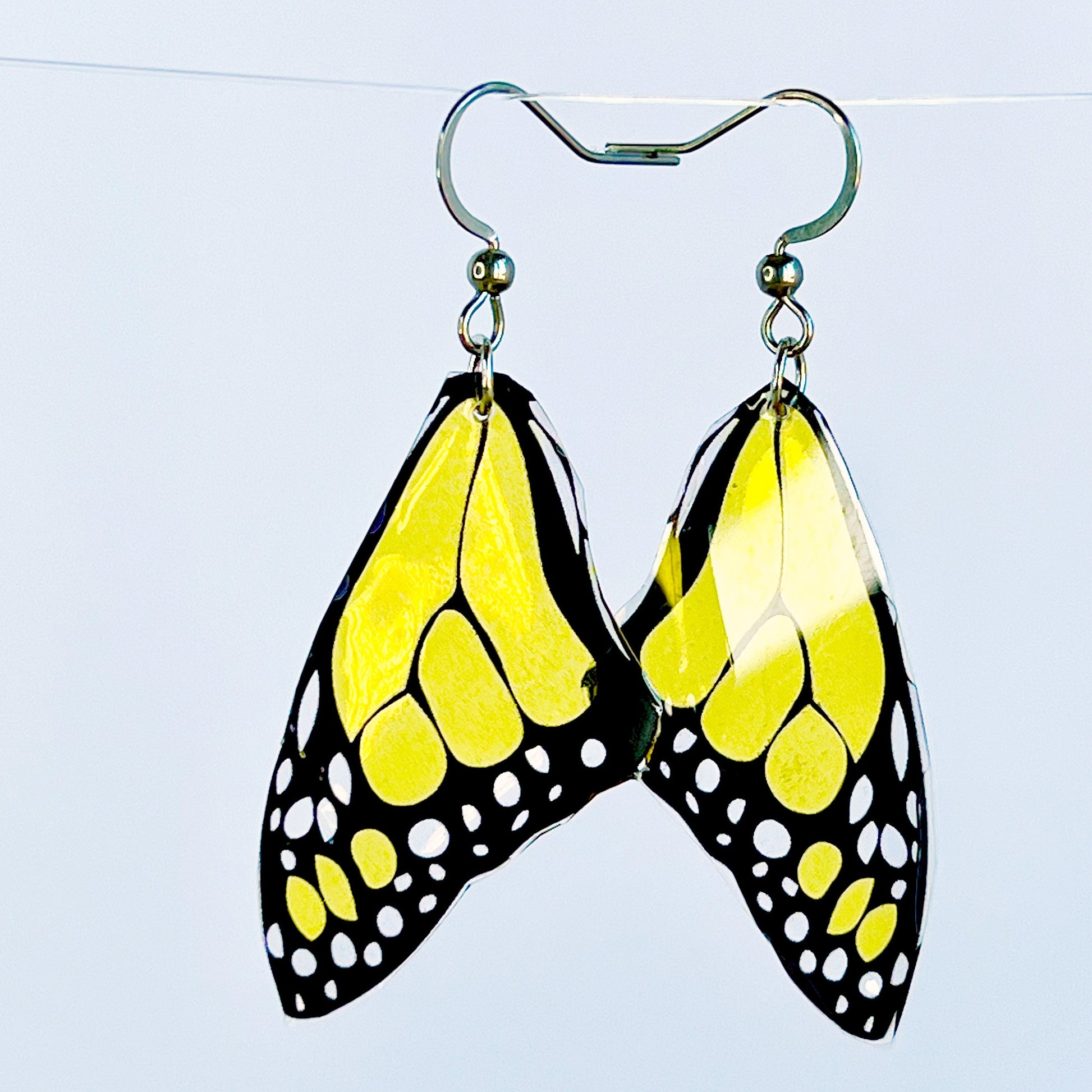 Insect jewelry Monarch butterfly jewelry Christmas gift Birthday Butterfly wings Yellow earrings Dangle earrings Insect earrings Eco resin