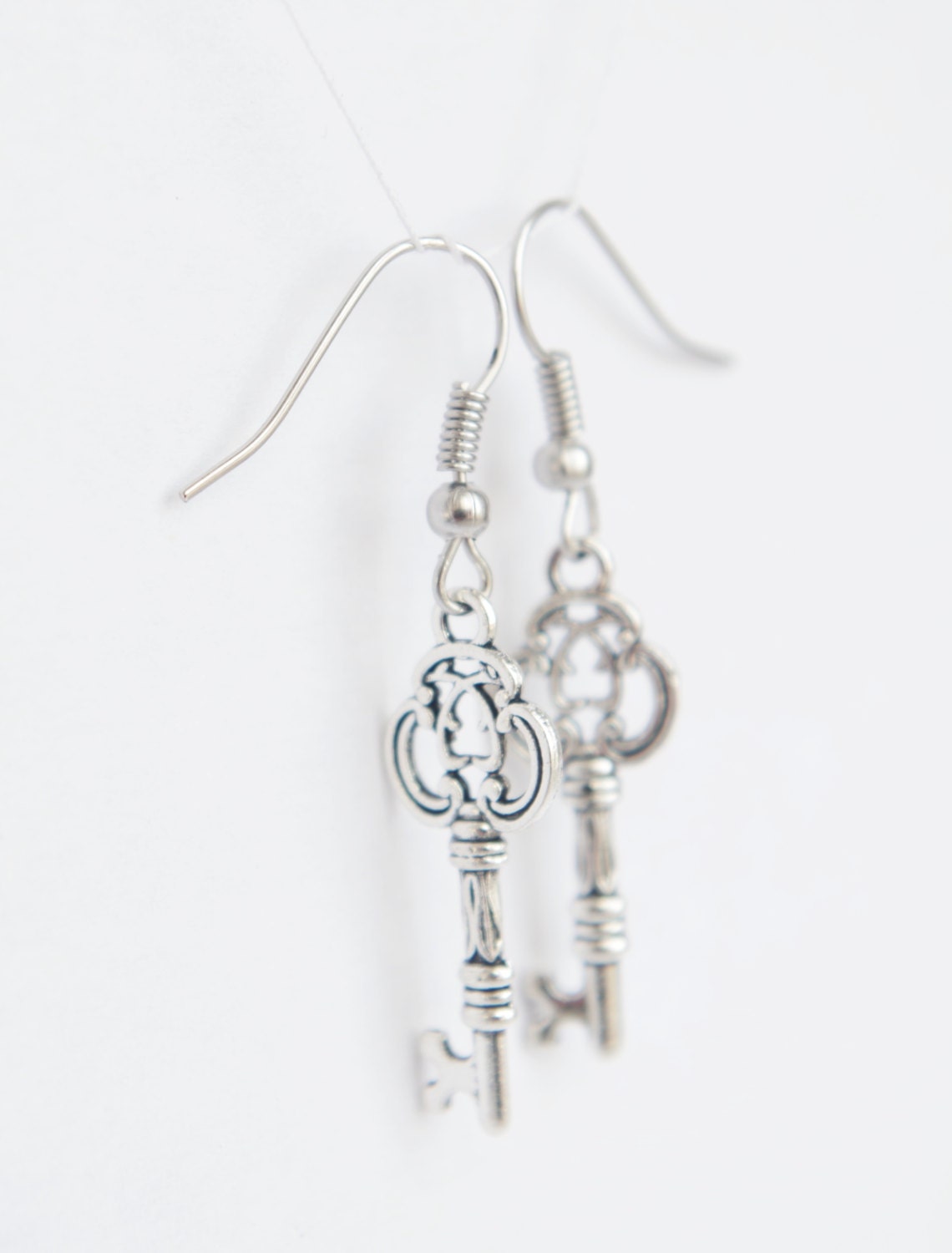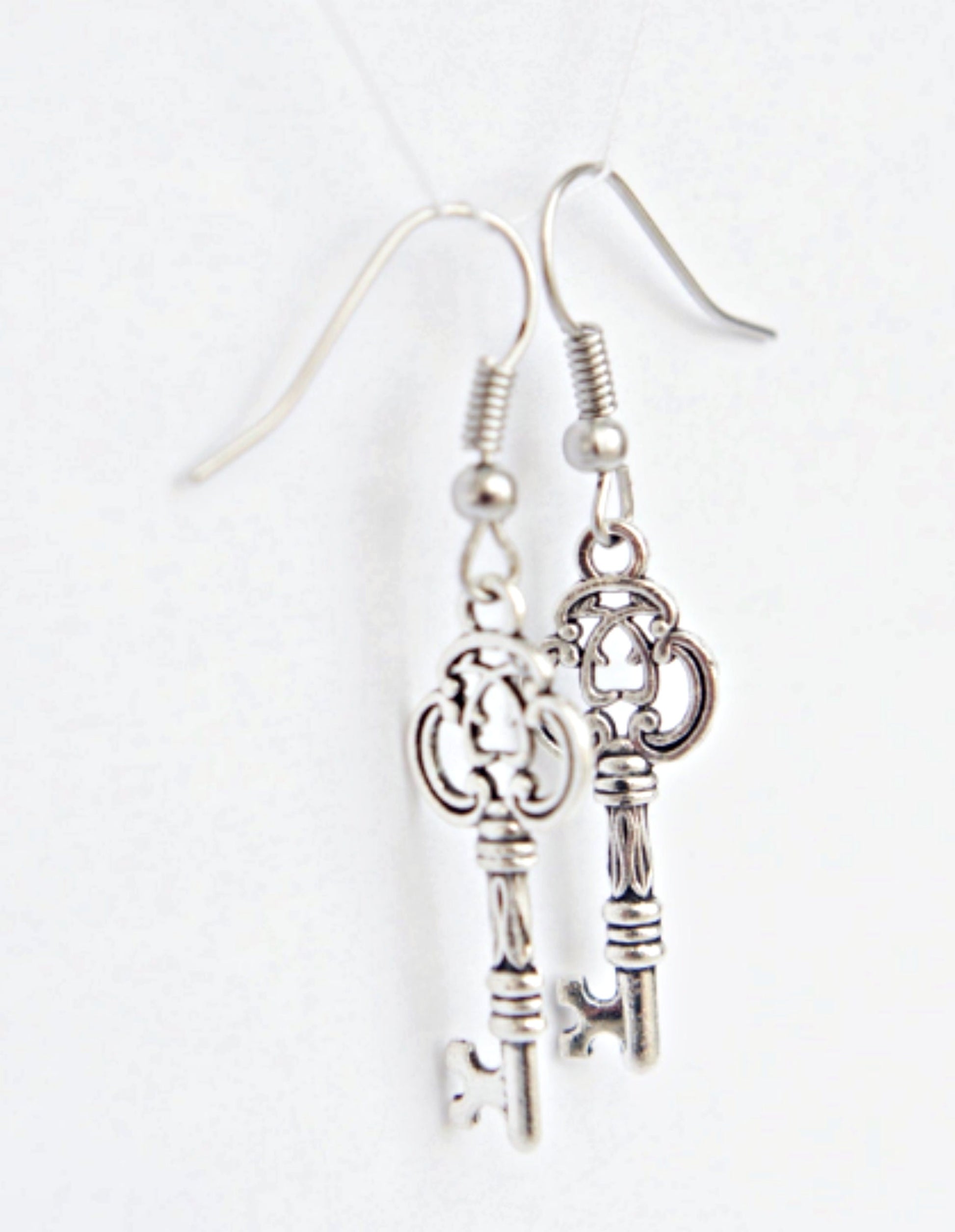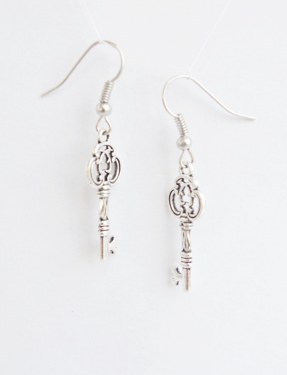 Key drop dangle earrings Skeleton key Jewelry Anniversary gift her girlfriend