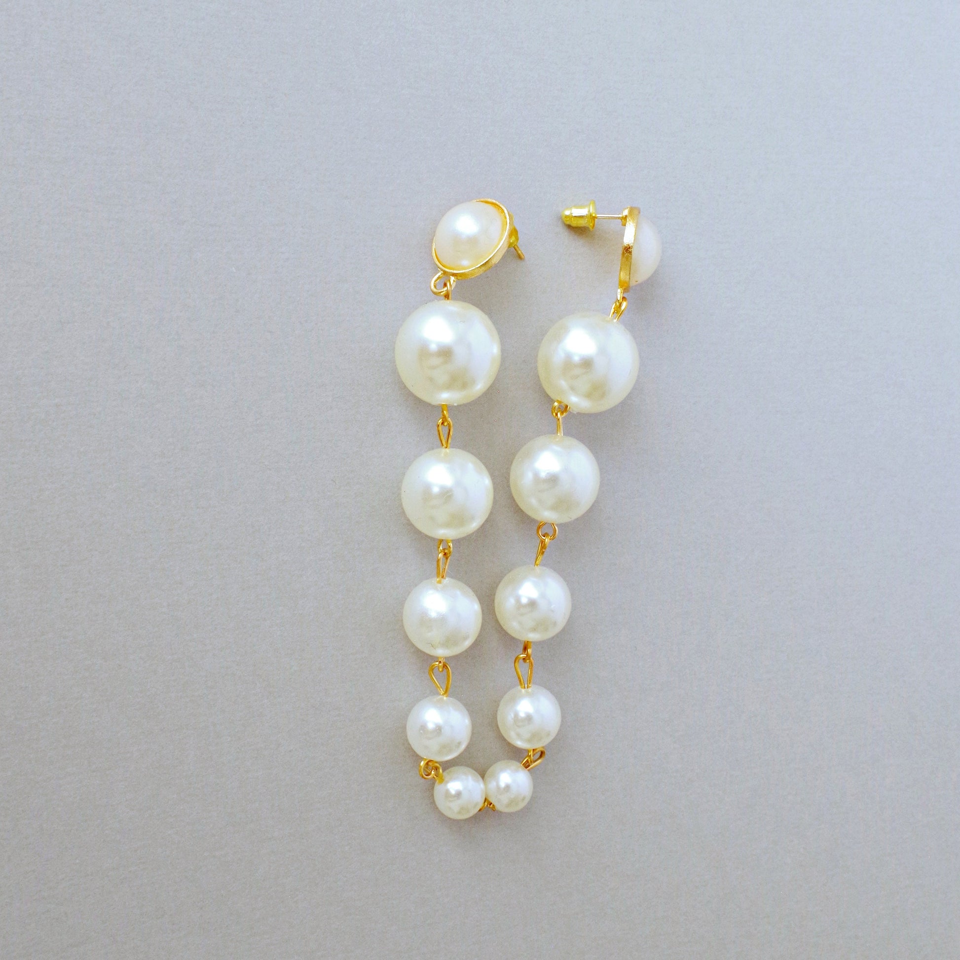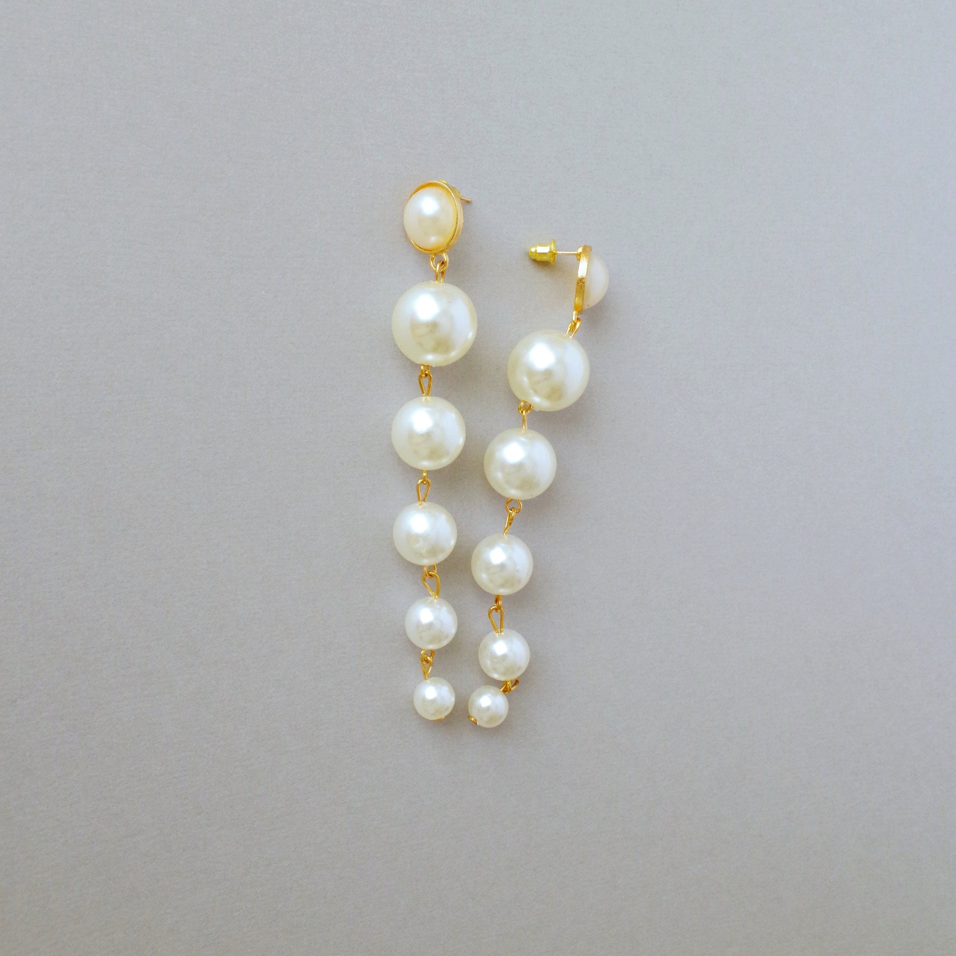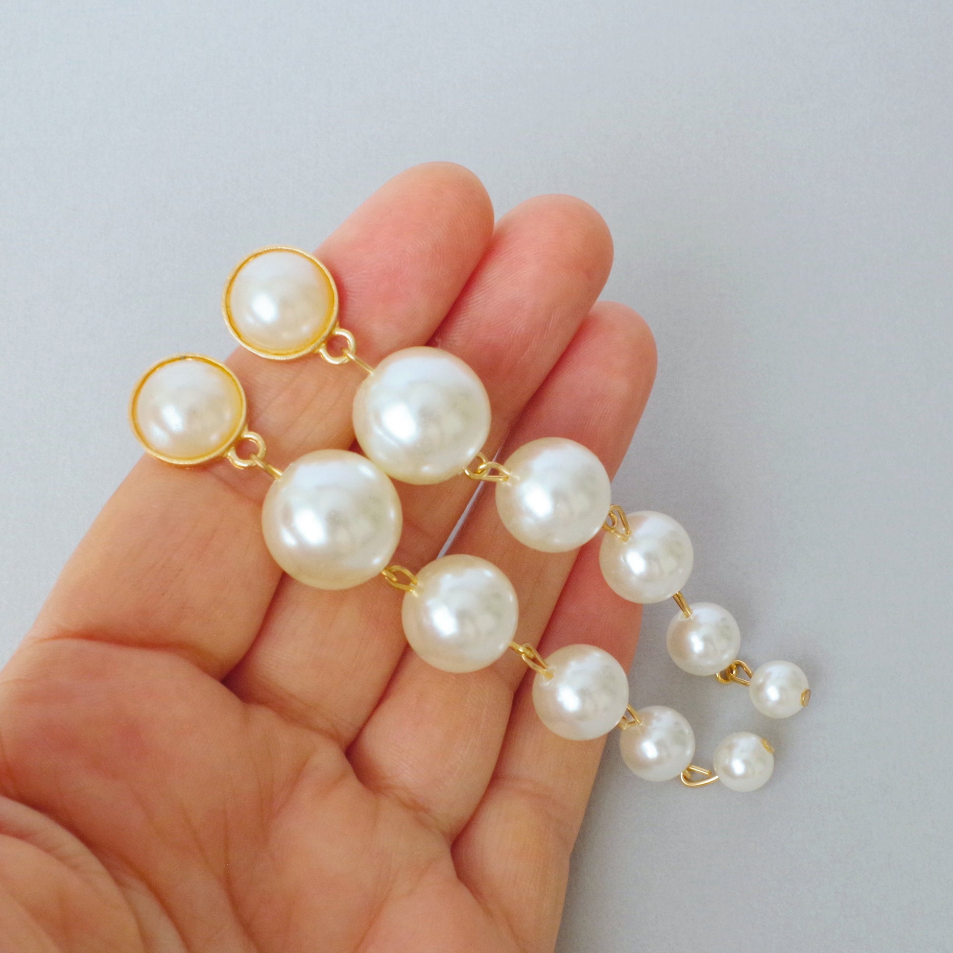 Long pearl drop earrings , Statement earrings, Bridesmaid earrings, Unique gifts , Graduated Pearl Cascade Earrings