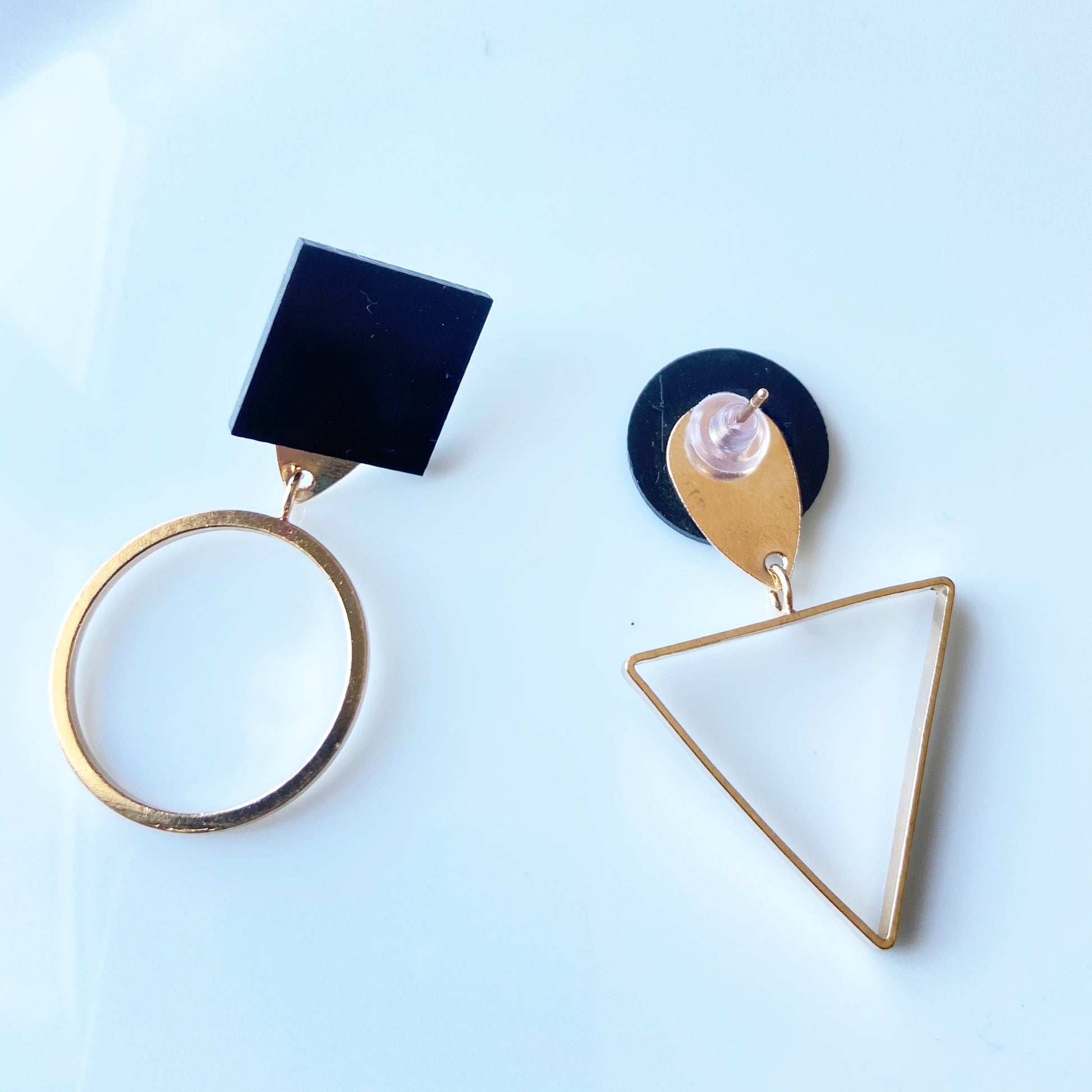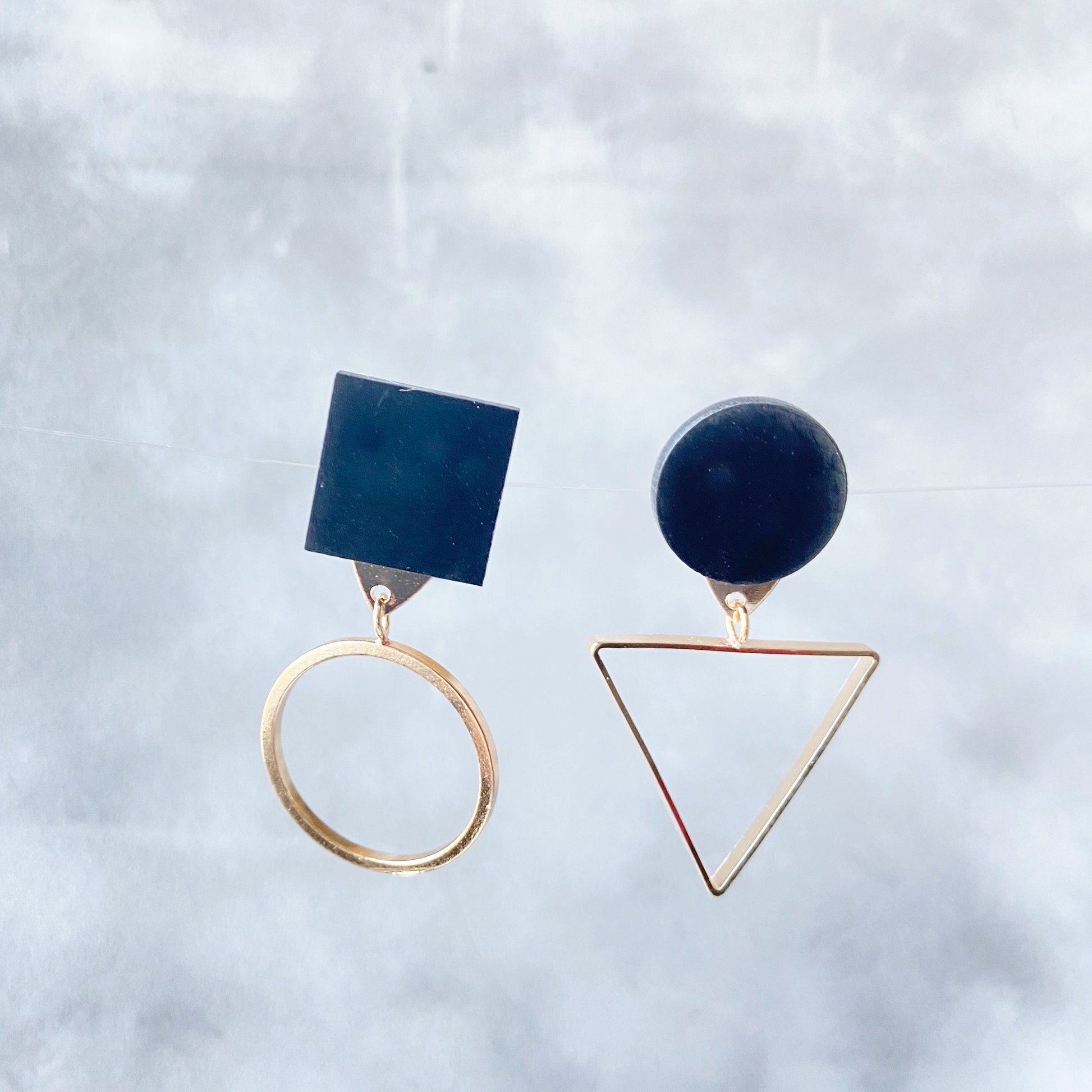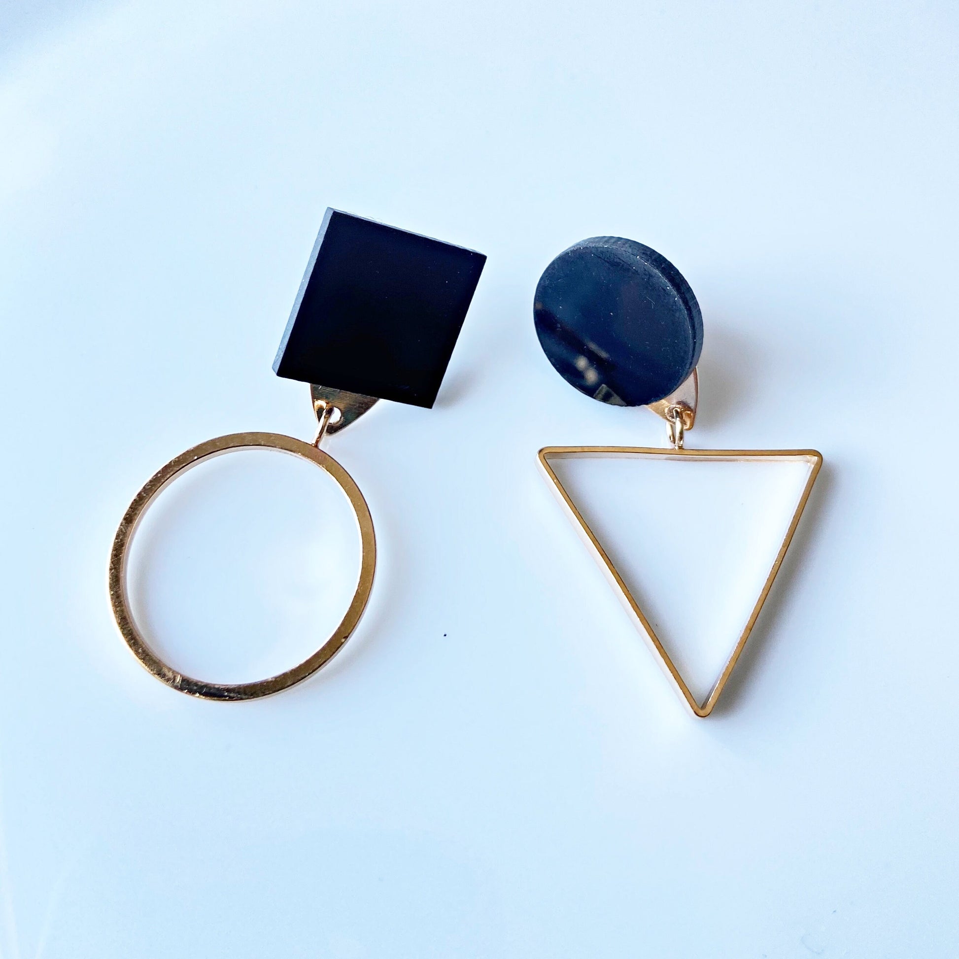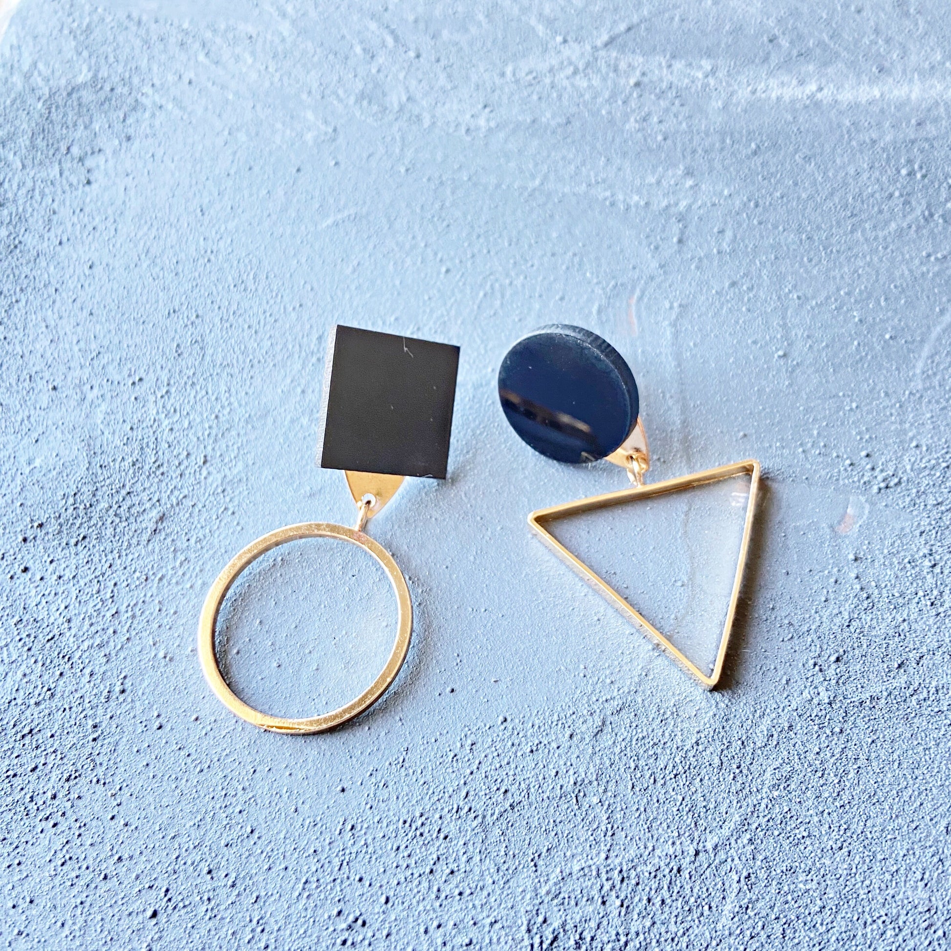 Mismatched geometric earrings: