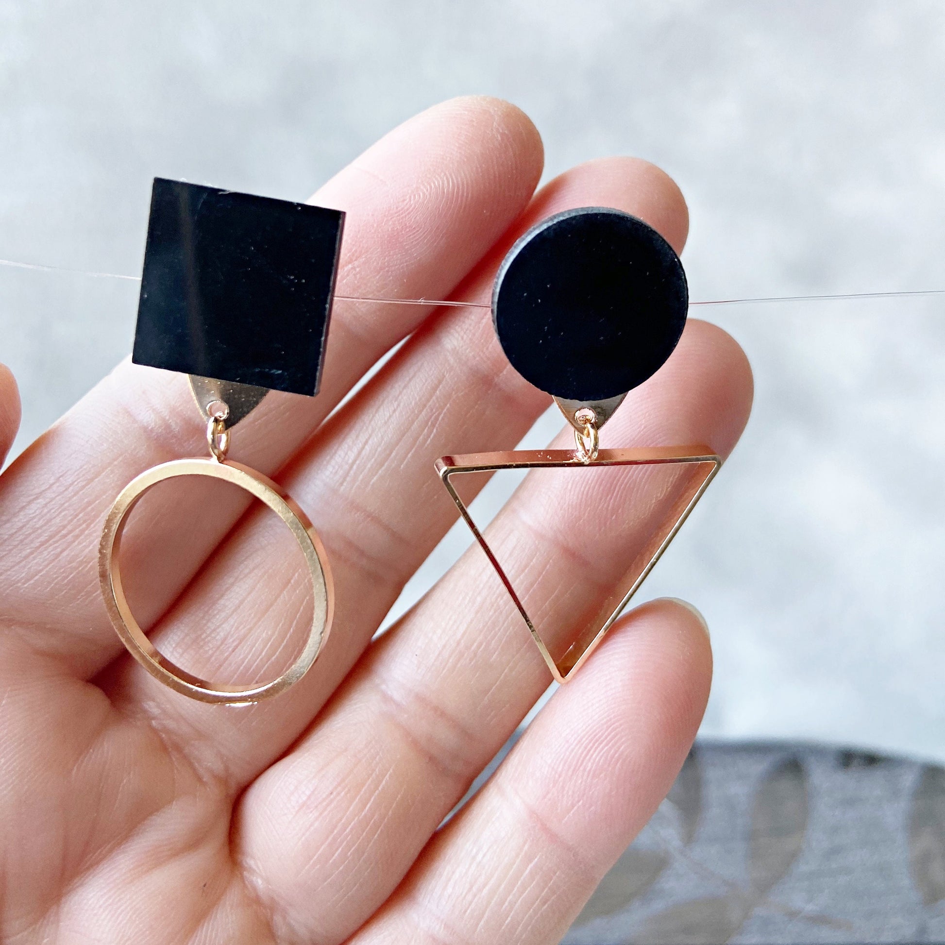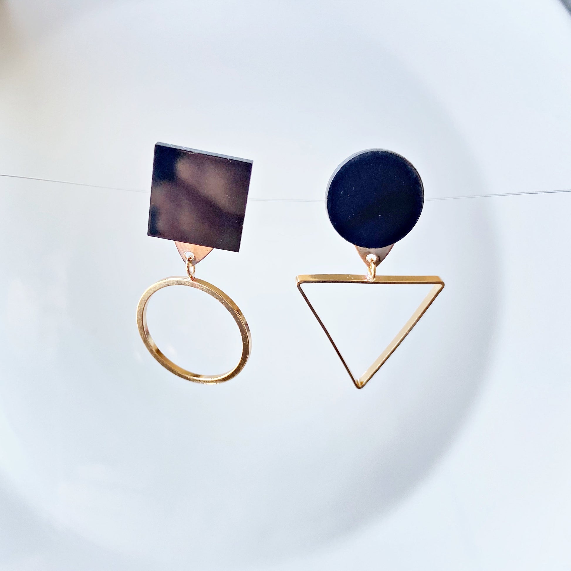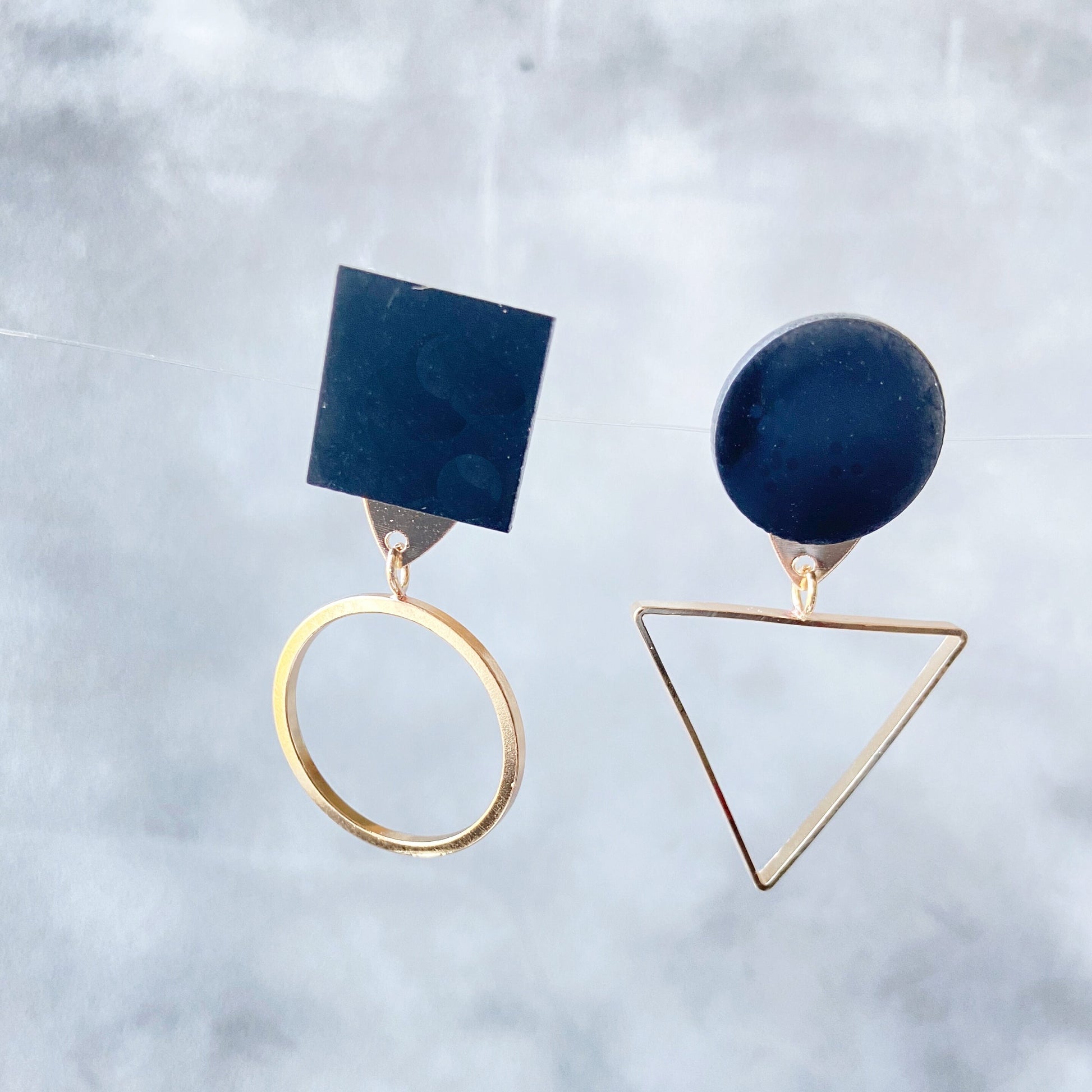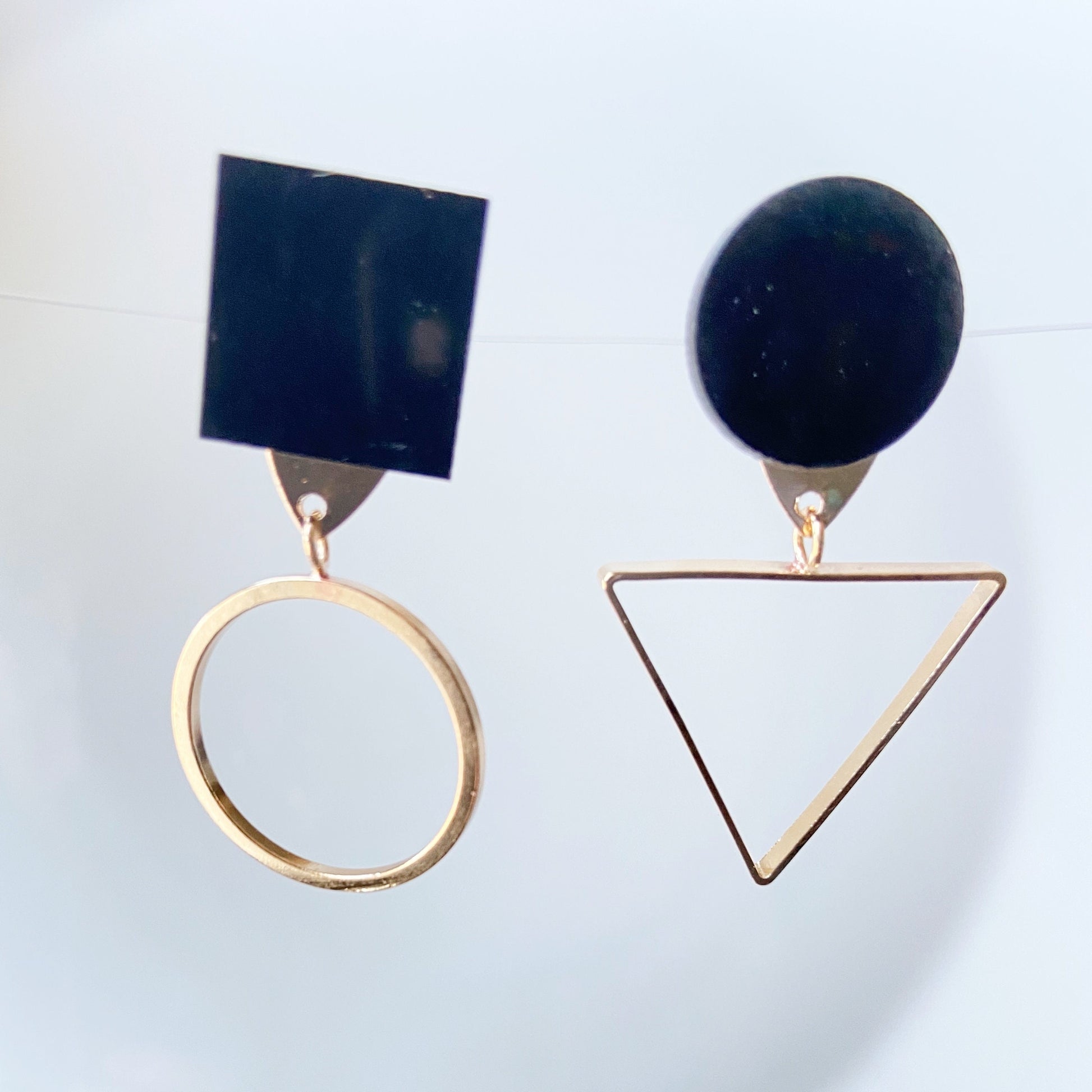 Mismatched geometric earrings: