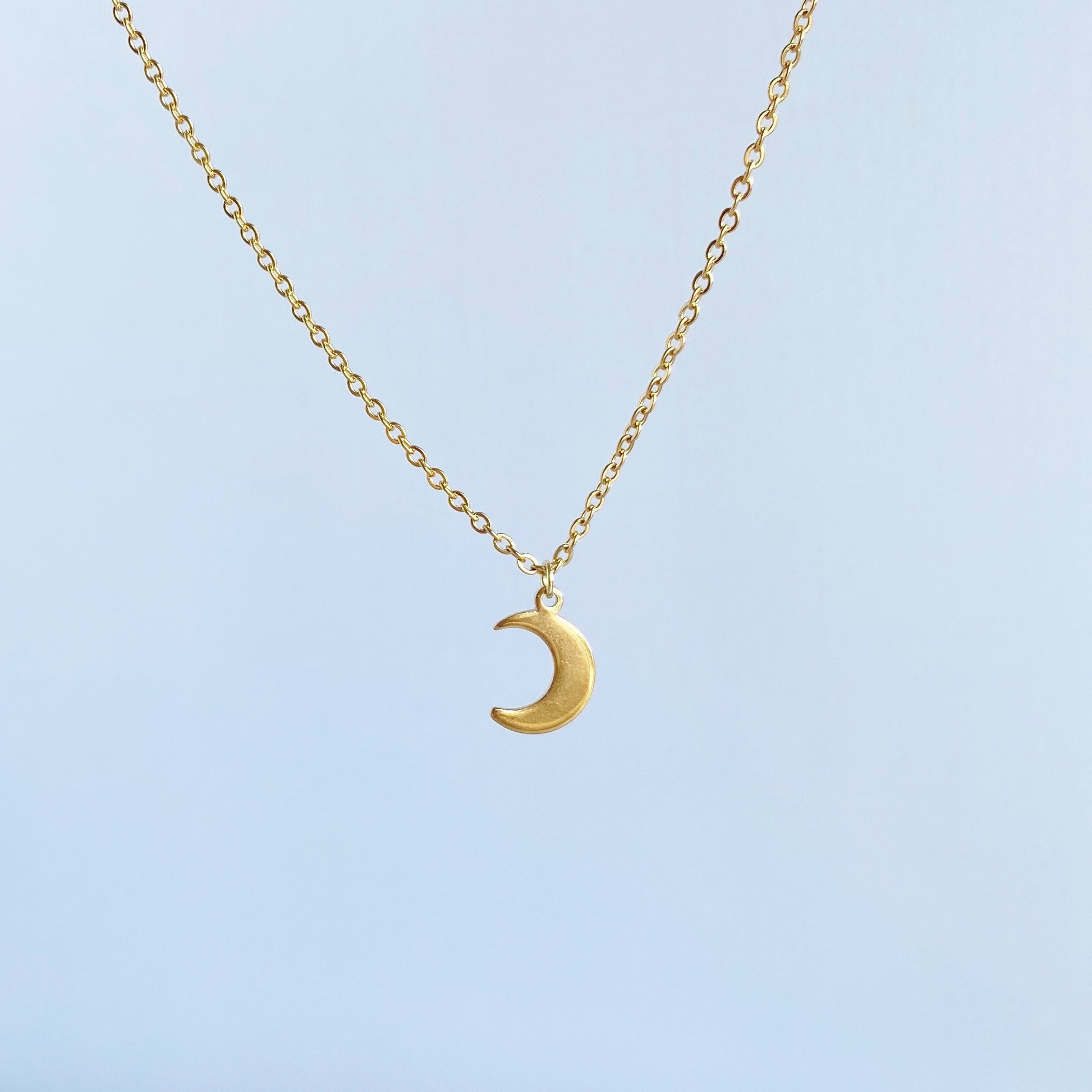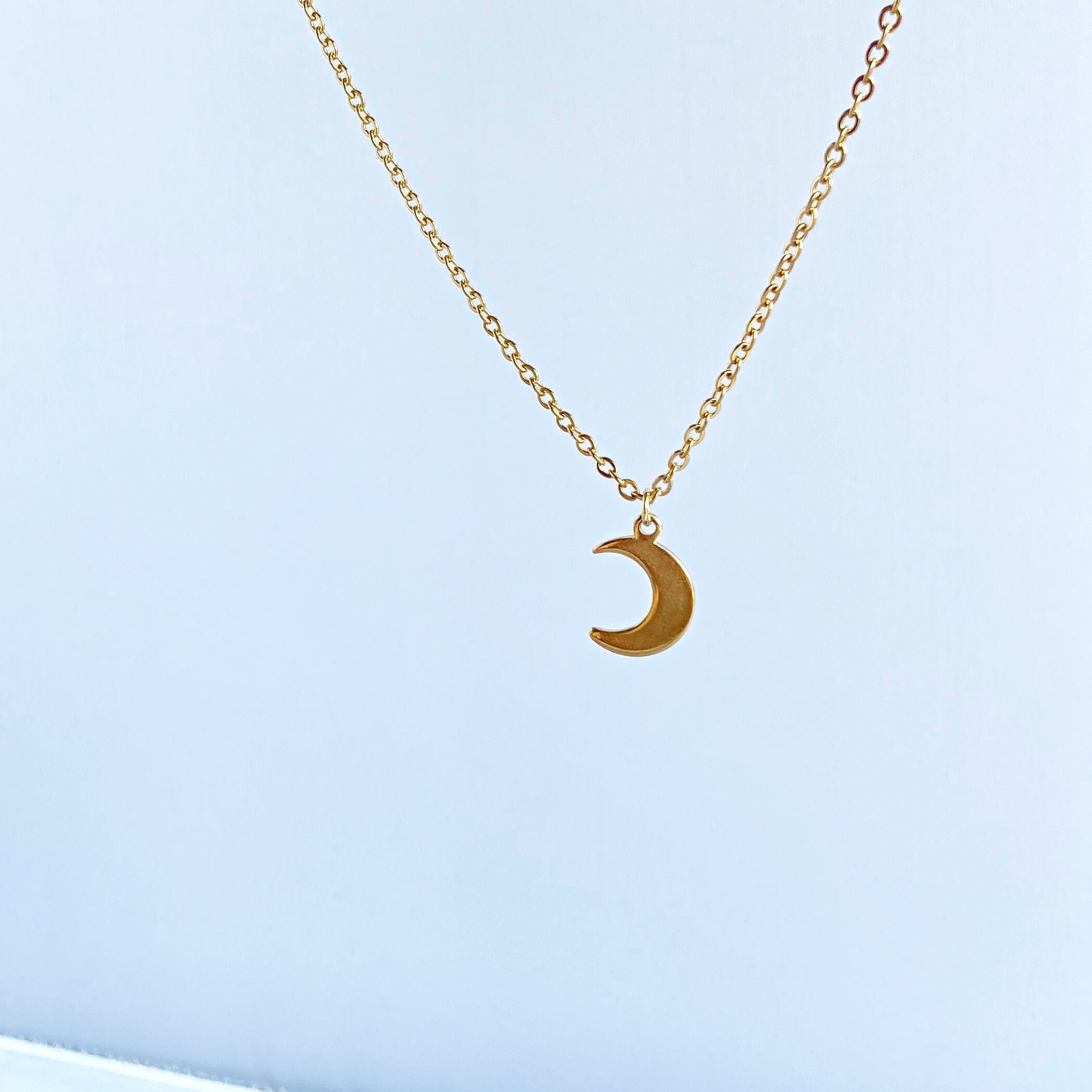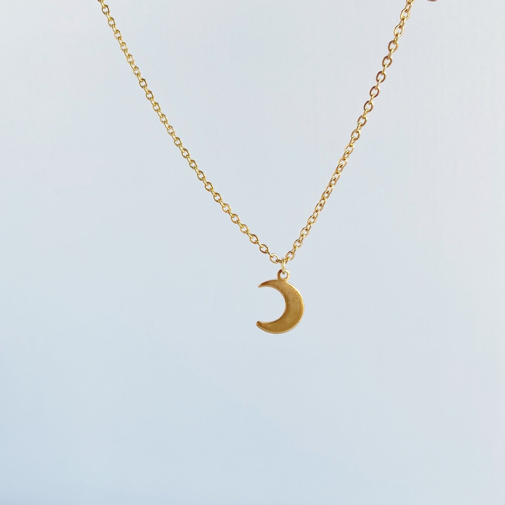 This modern necklace is made with thin Gold plated chain adorned with one tiny Crescent Moon pendant.