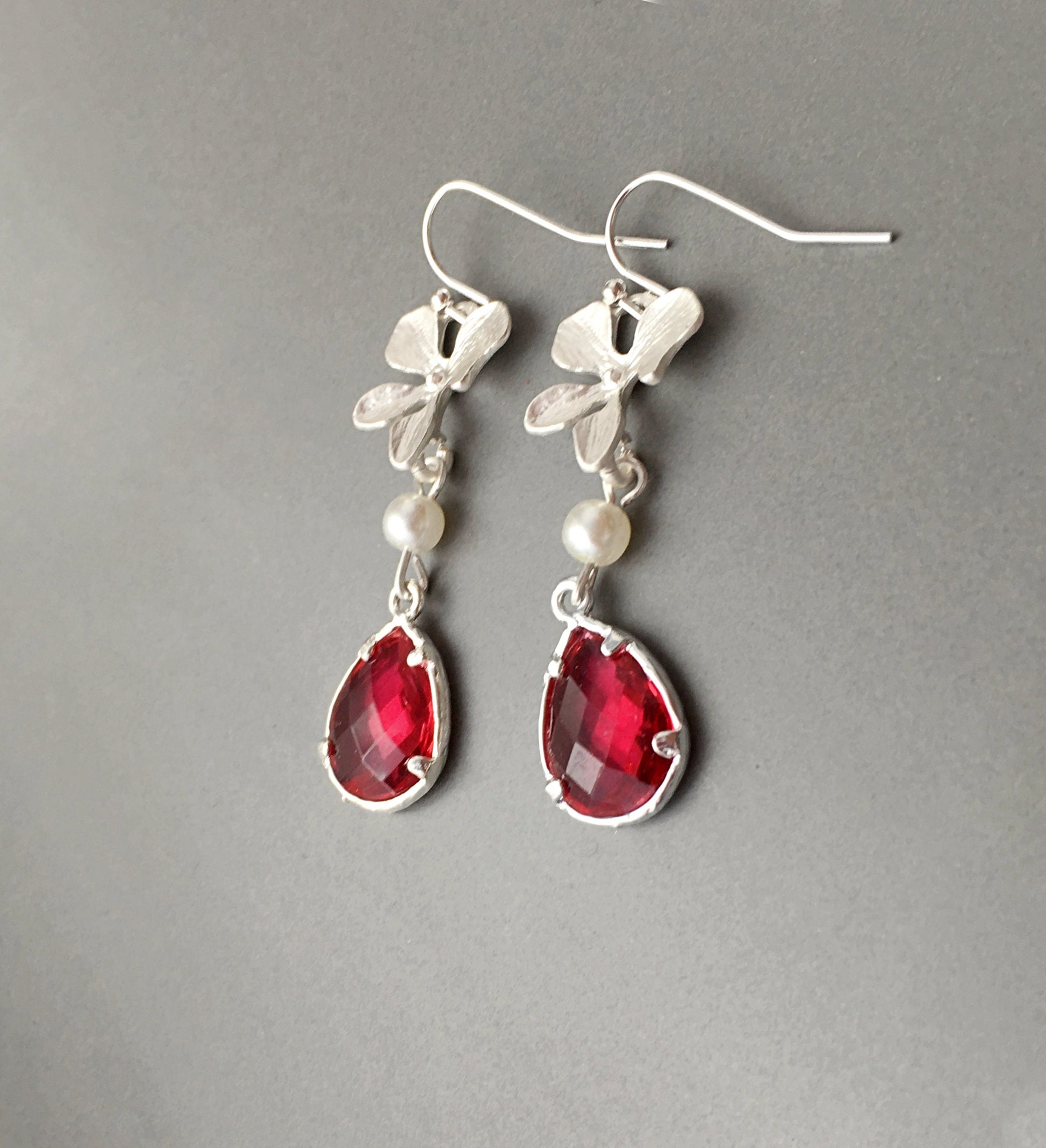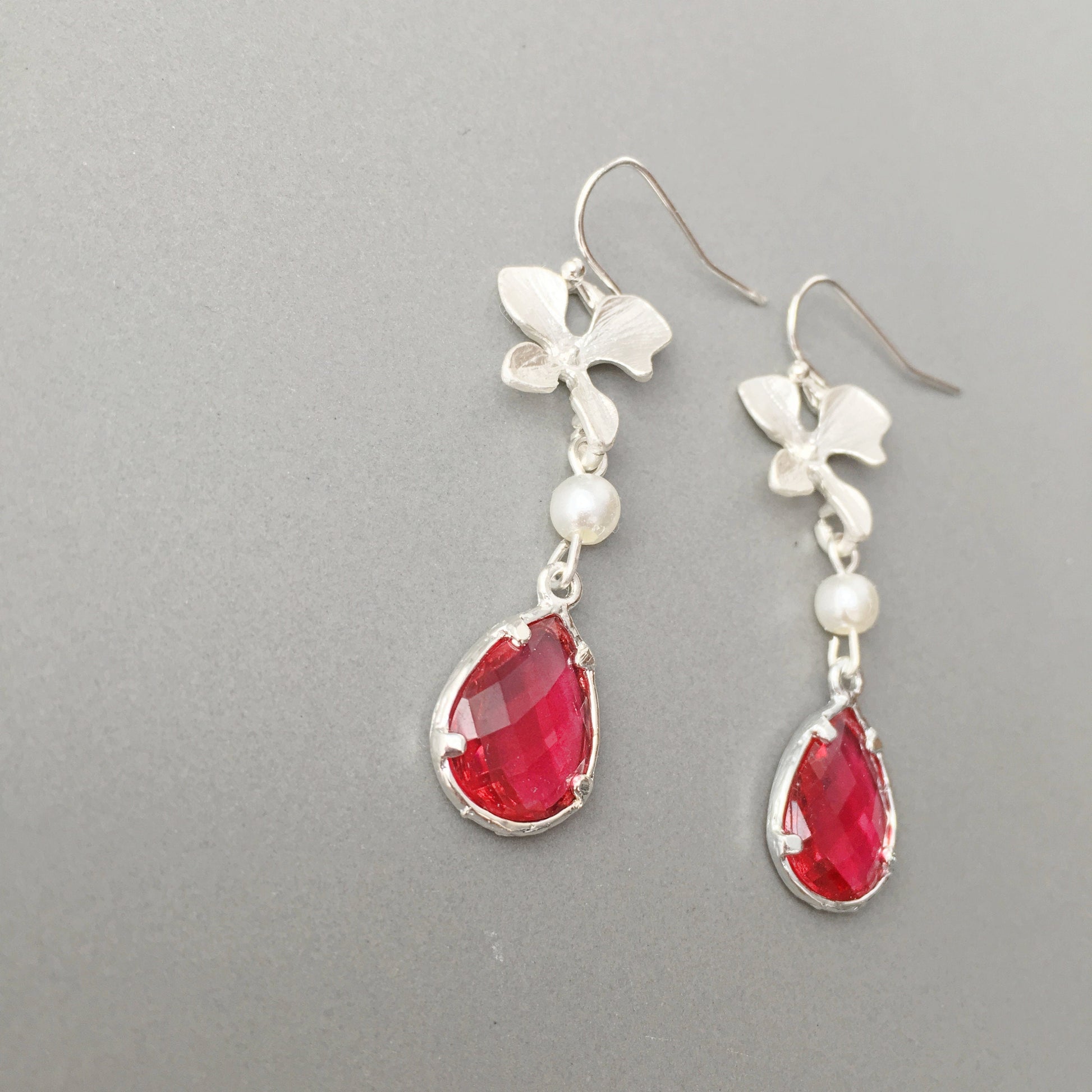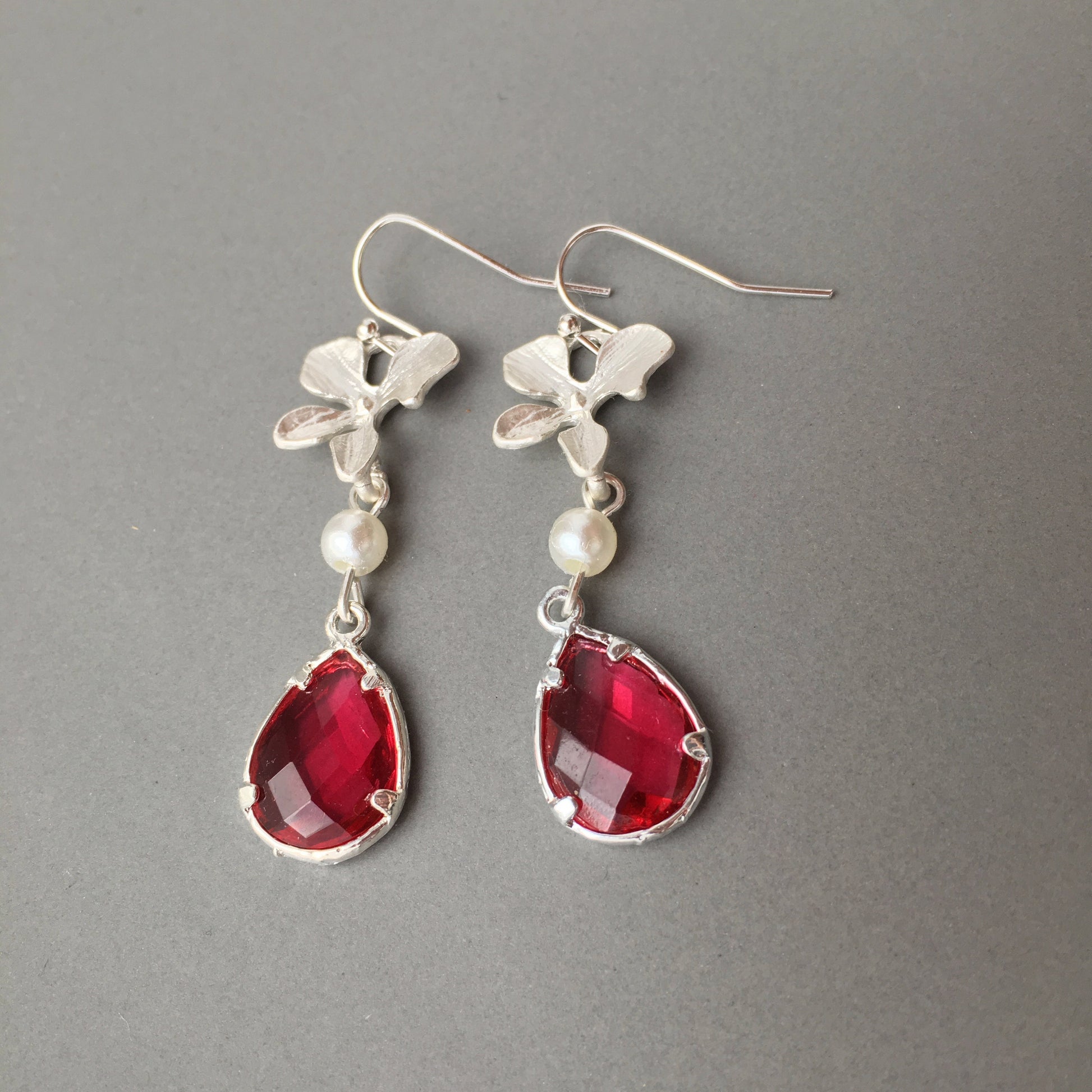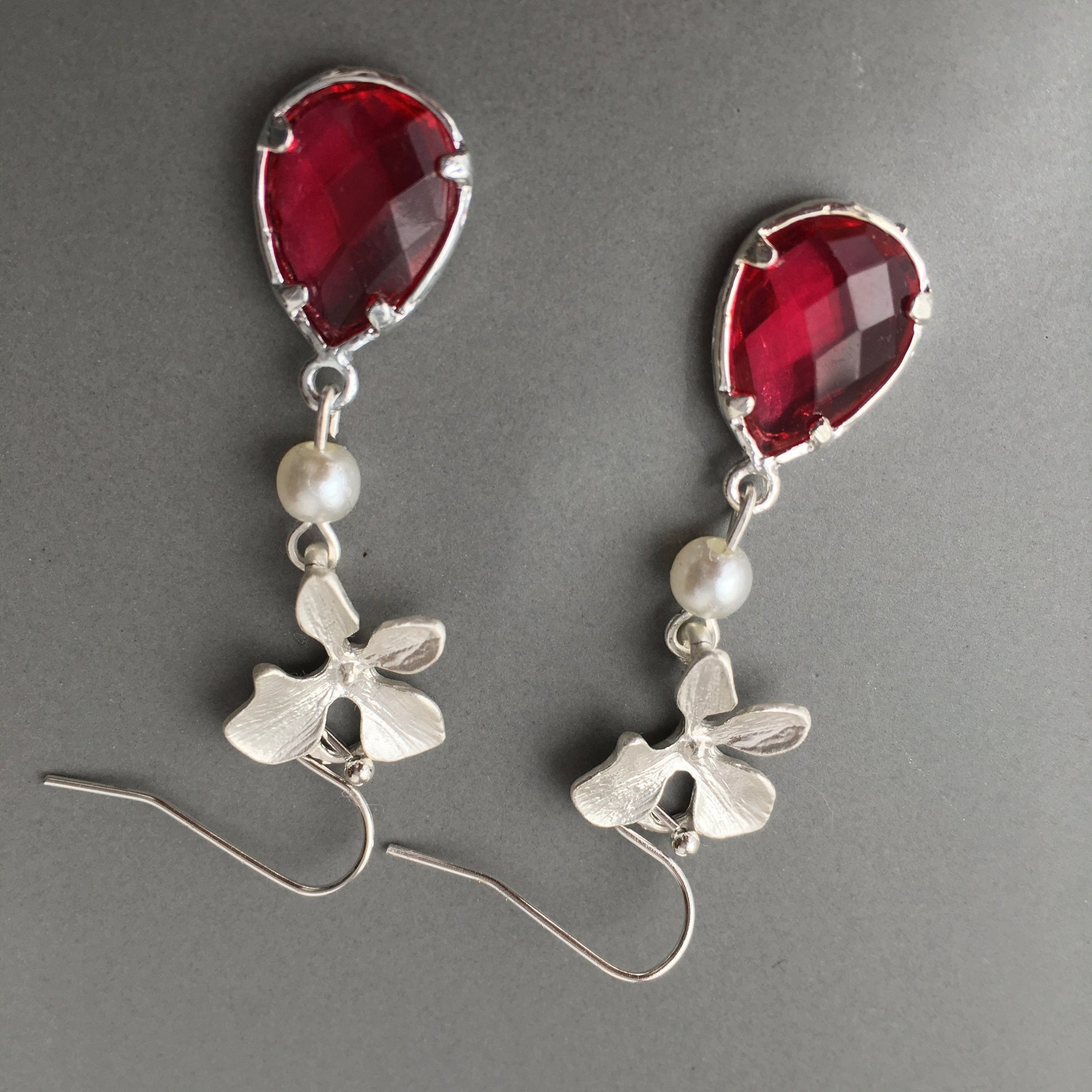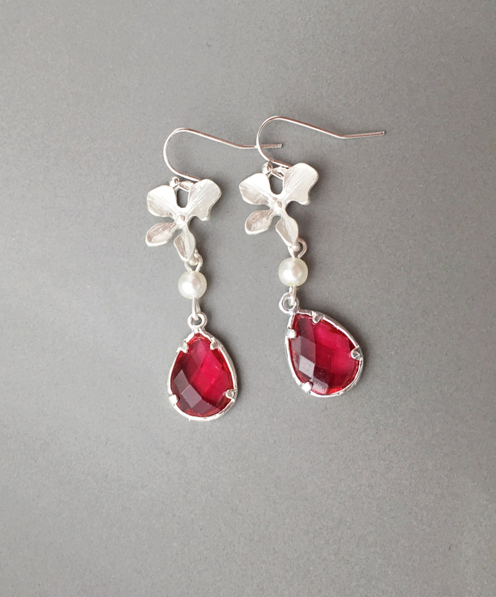 These orchid earrings are stunning!! Red ruby earrings and feminine wedding earrings are a perfect Bridesmaids, Mother of the Bride or Maid of Honor accessories.