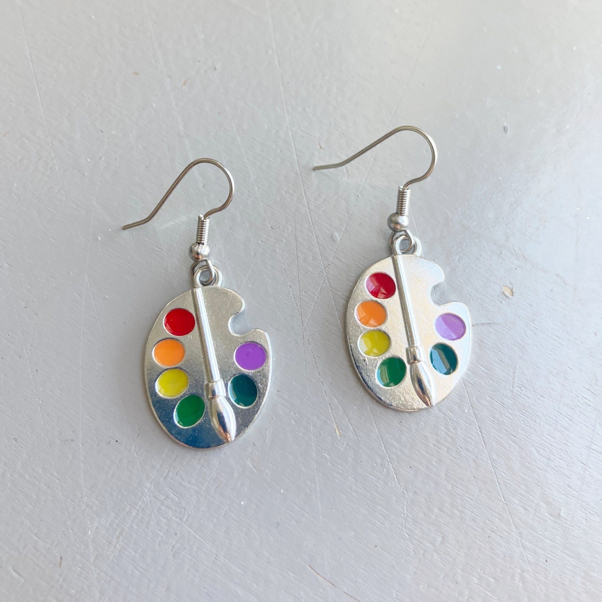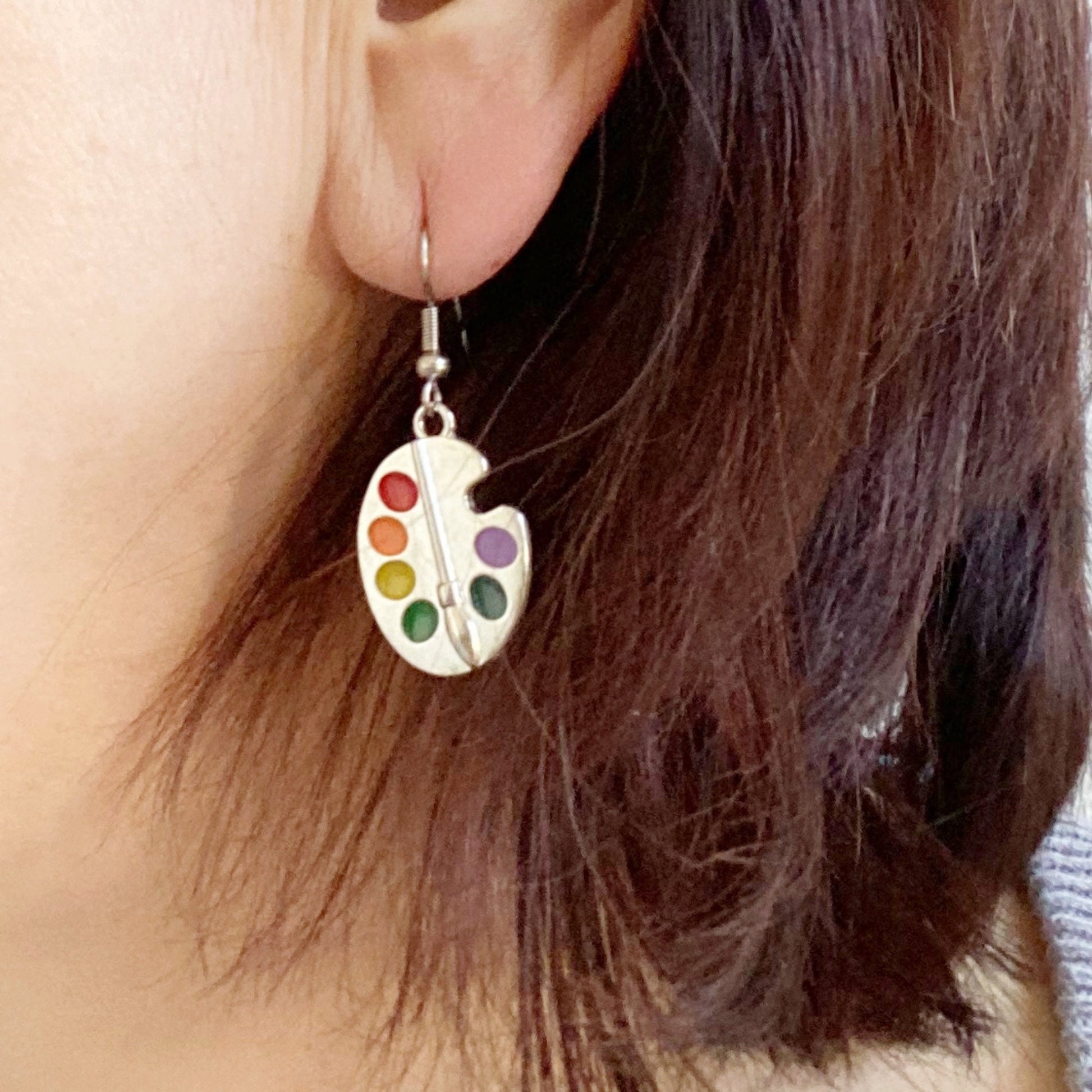 Paint palette earrings Artist charm earrings Colorful paint jewelry Unique gift for artist Personalized gift for friends