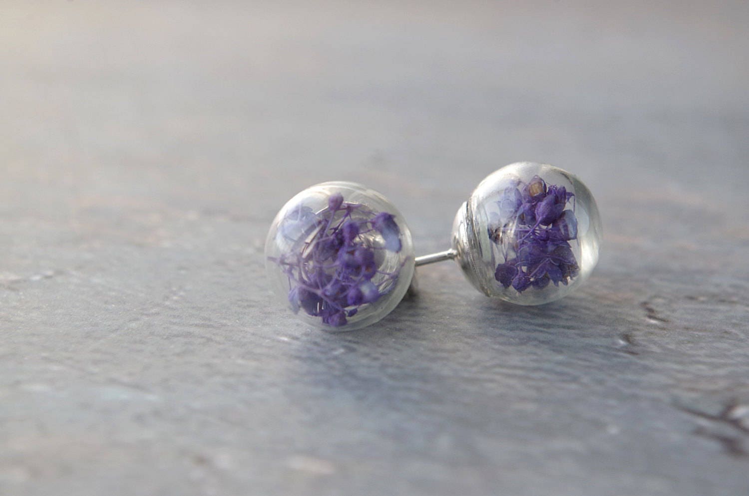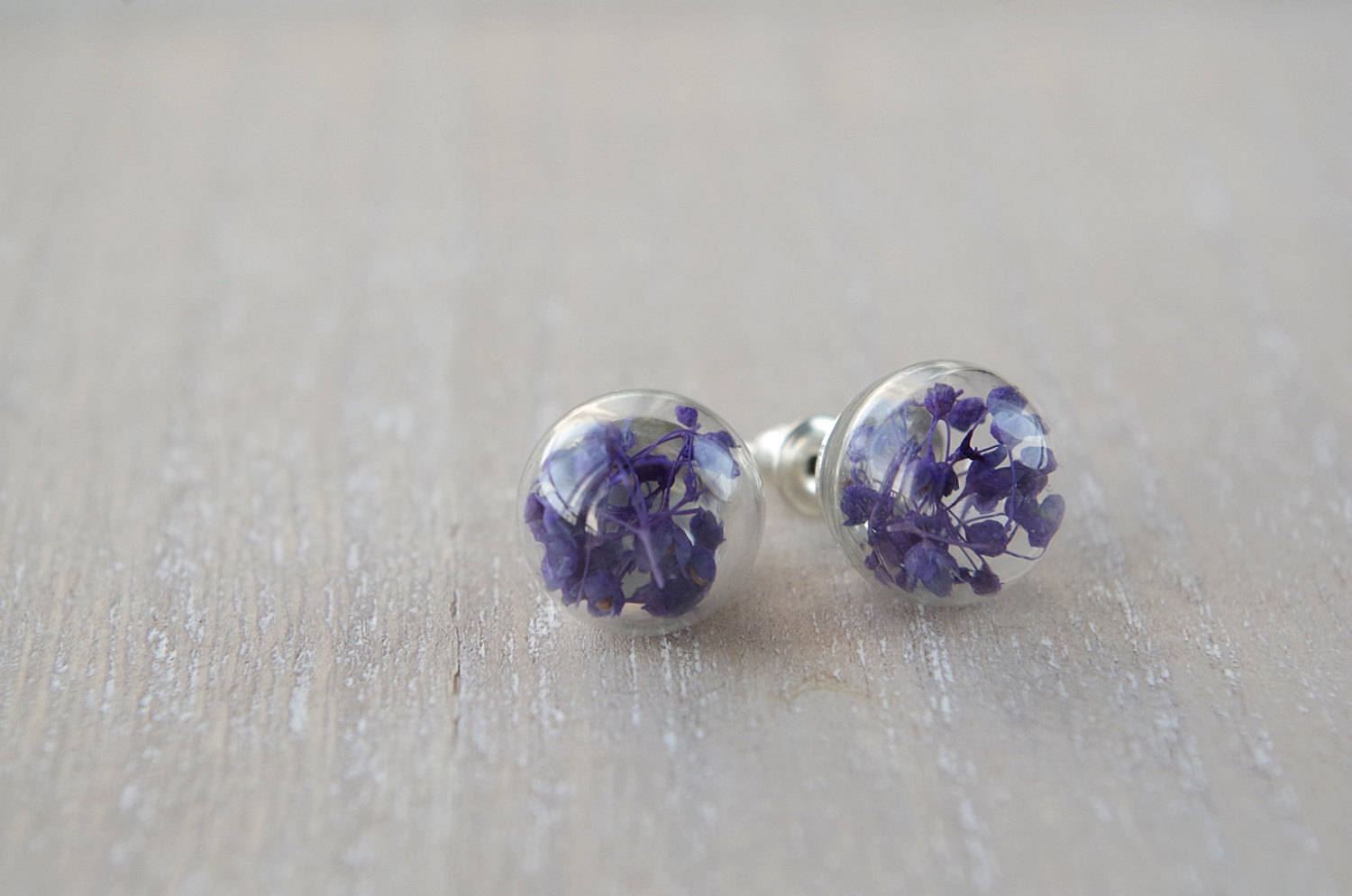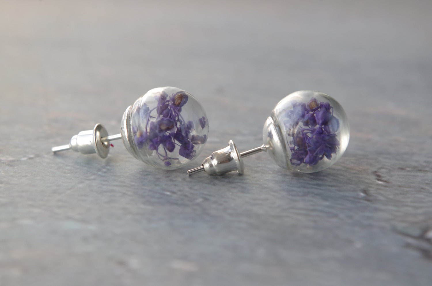 Purple flower stud earrings small real flower earrings natural flower jewelry botanical glass globe birthday gift Mother's Day gift
