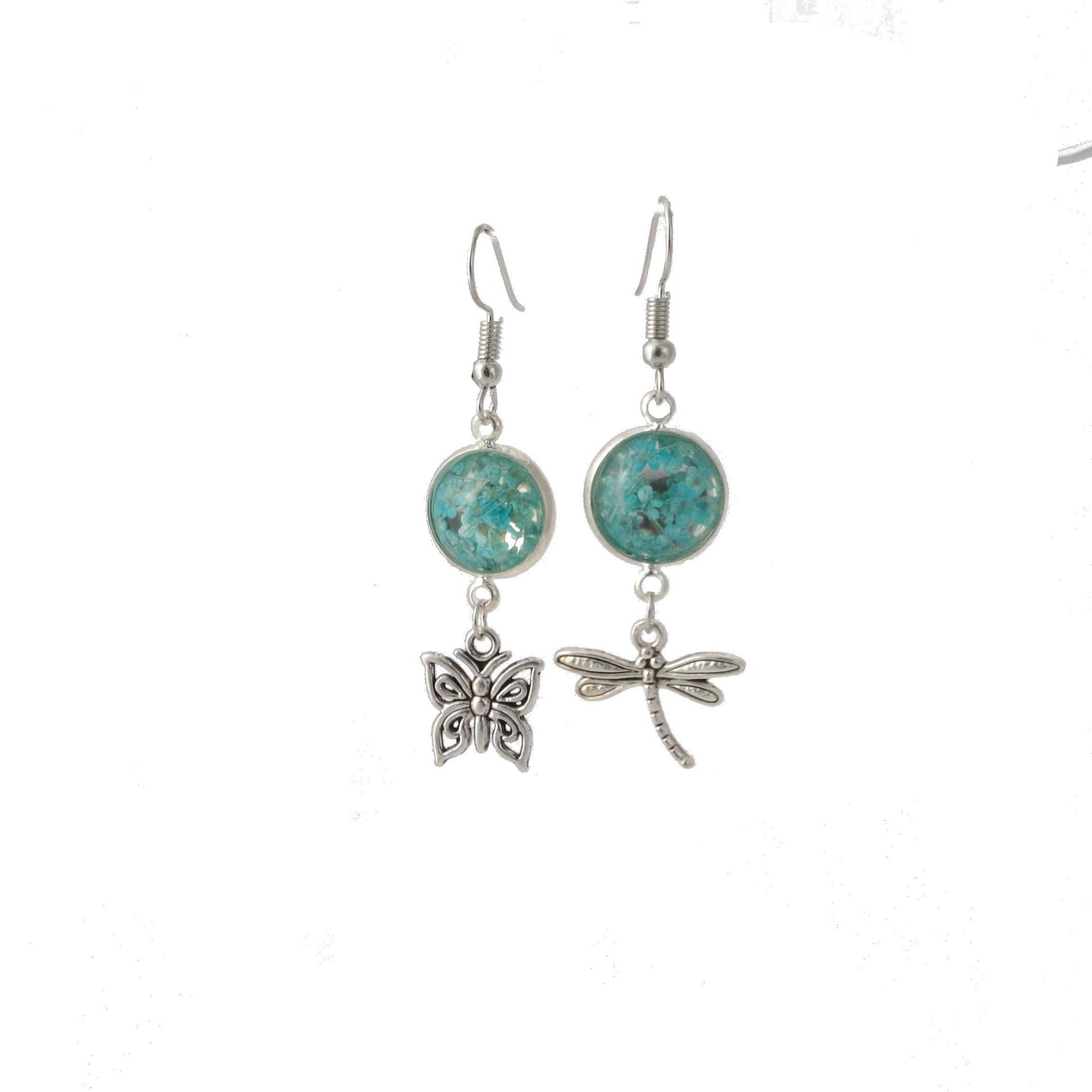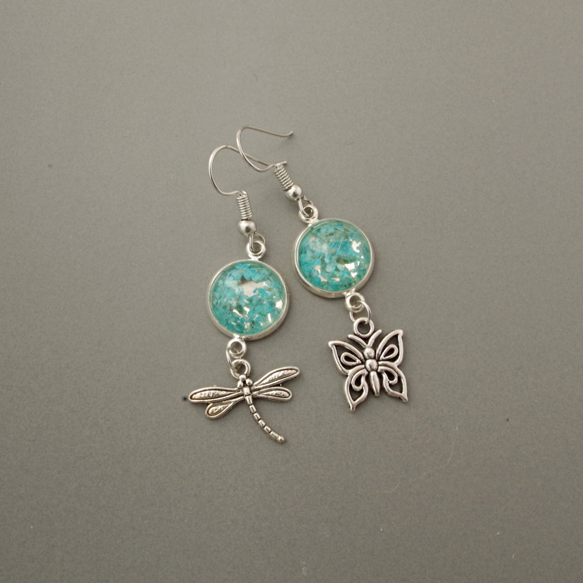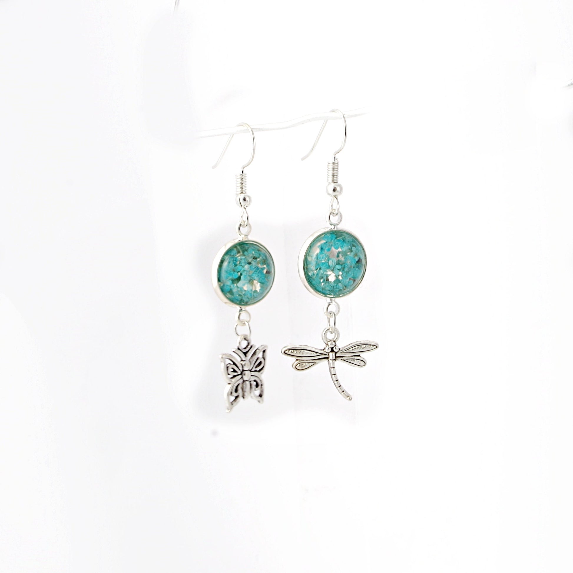 Real flower earrings Butterfly jewelry Mismatched earrings Asymmetrical Different Statement Dragonfly earrings Mix and match