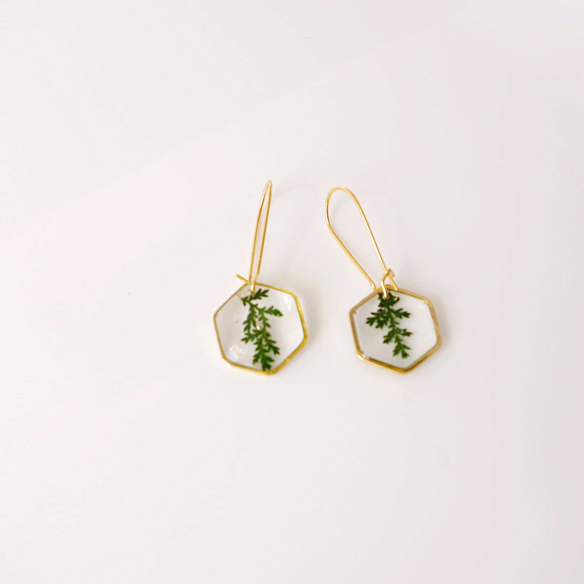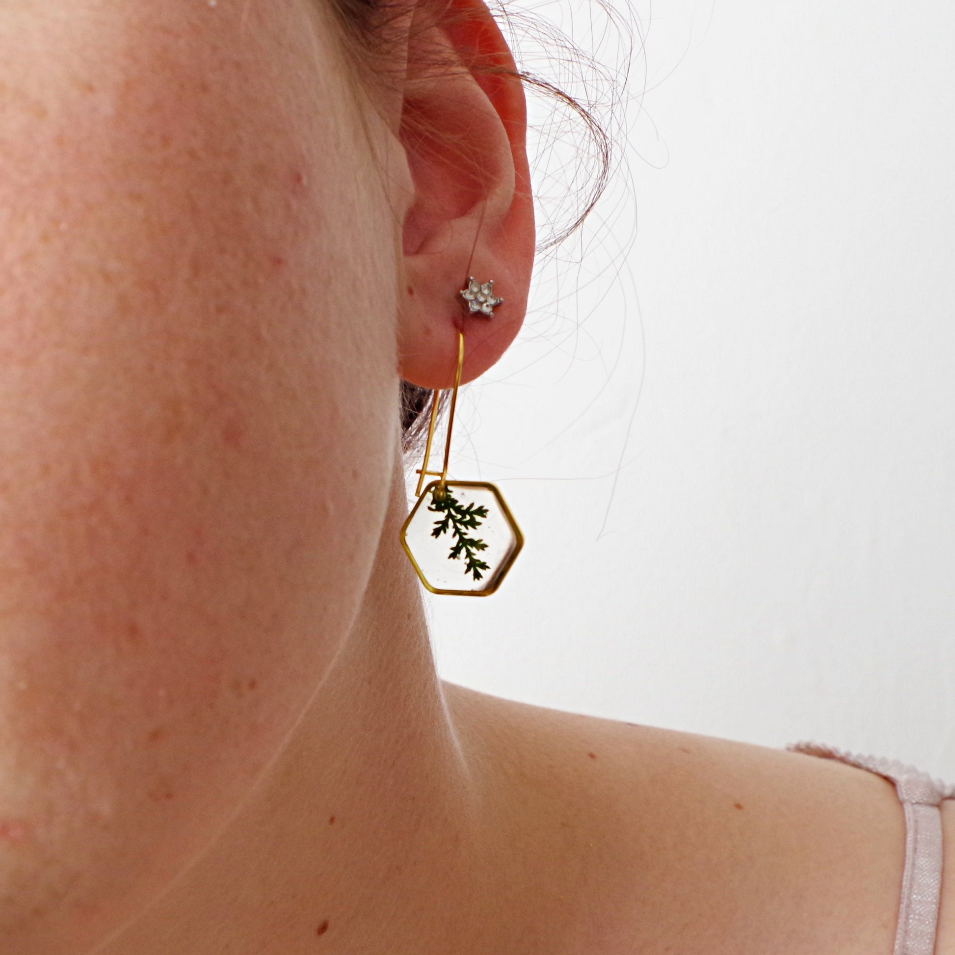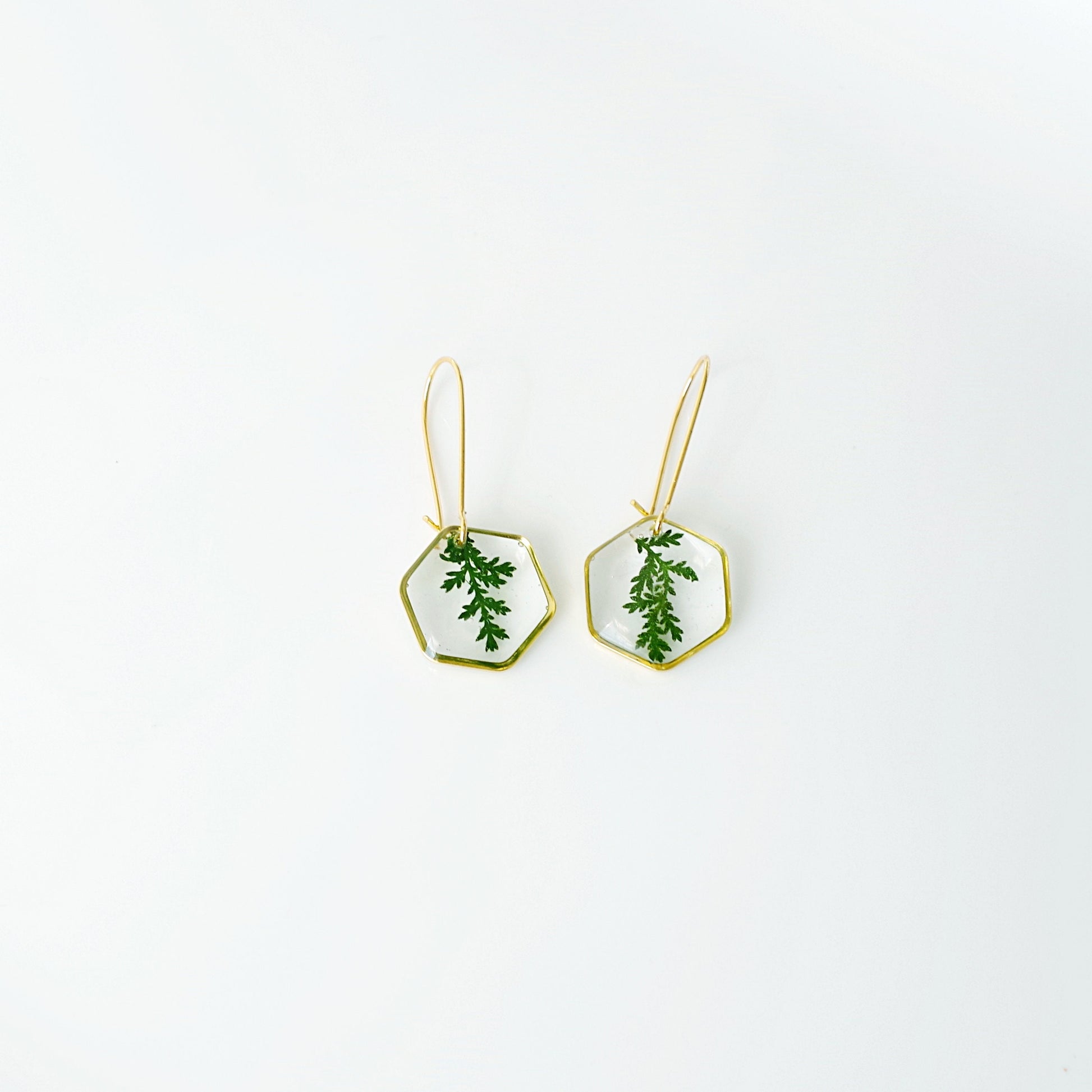 An elegant resin earrings with real green hand-picked forest fern. This will be a special gift for a loved one, as ferns symbolize sincerity towards others. If you are giving someone a fern as a gift, you are giving them the hope that they will have confidence, shelters, wealth, and happiness. This is a great plant to give someone that you really care about.