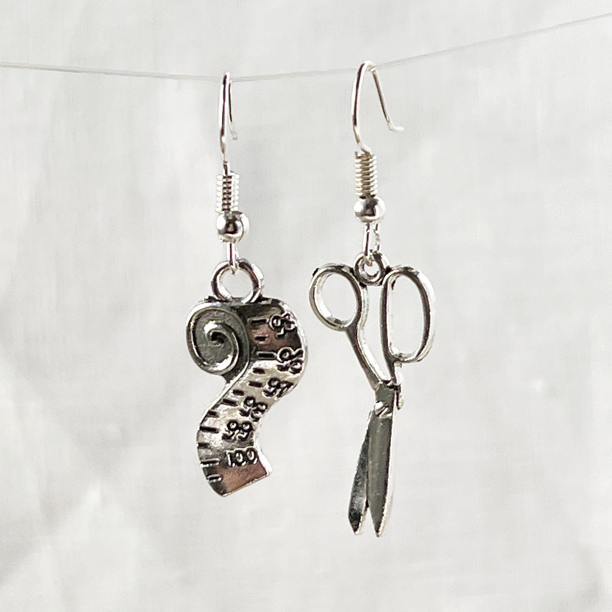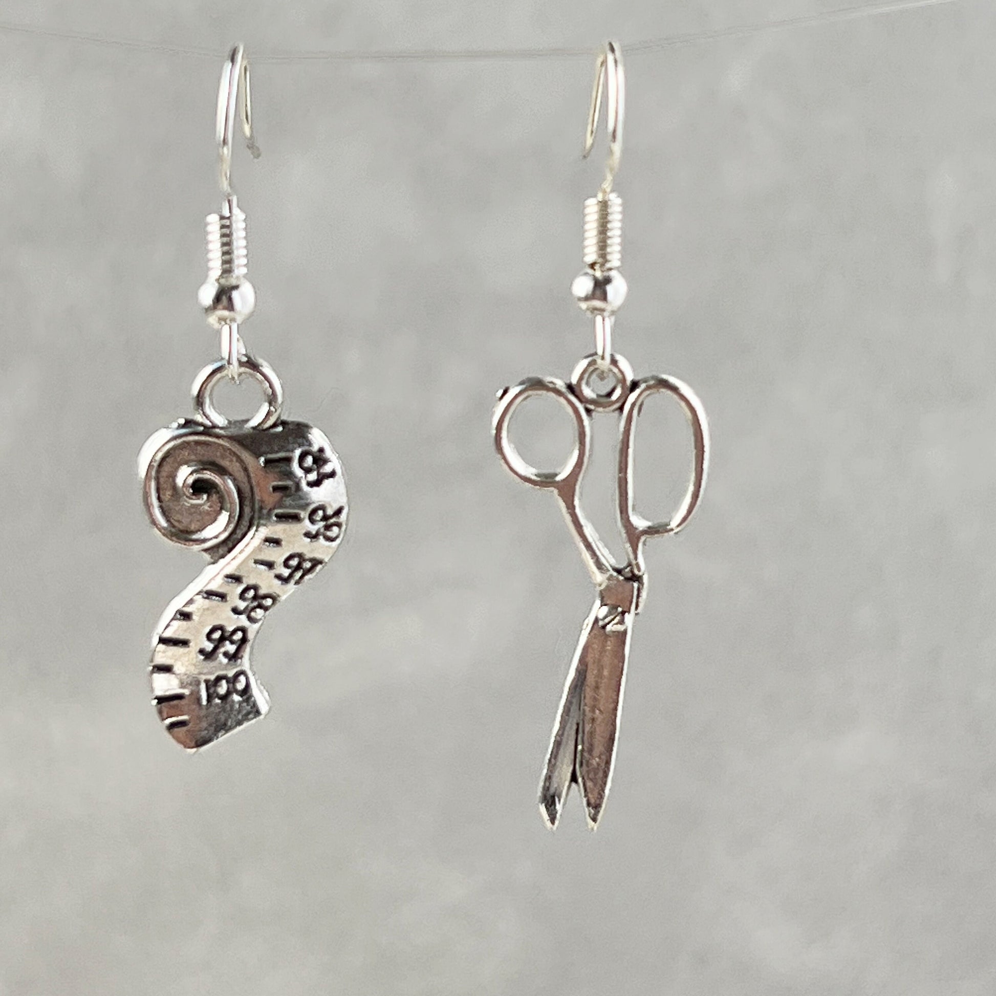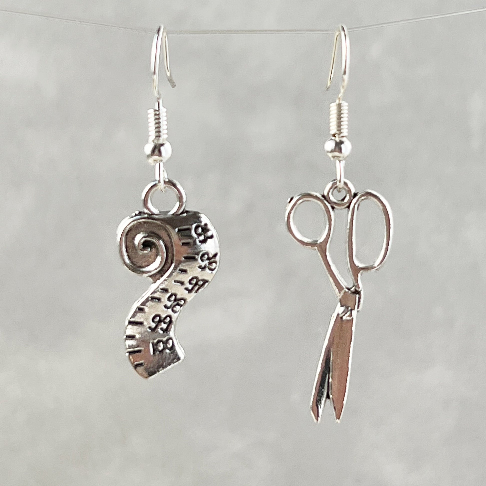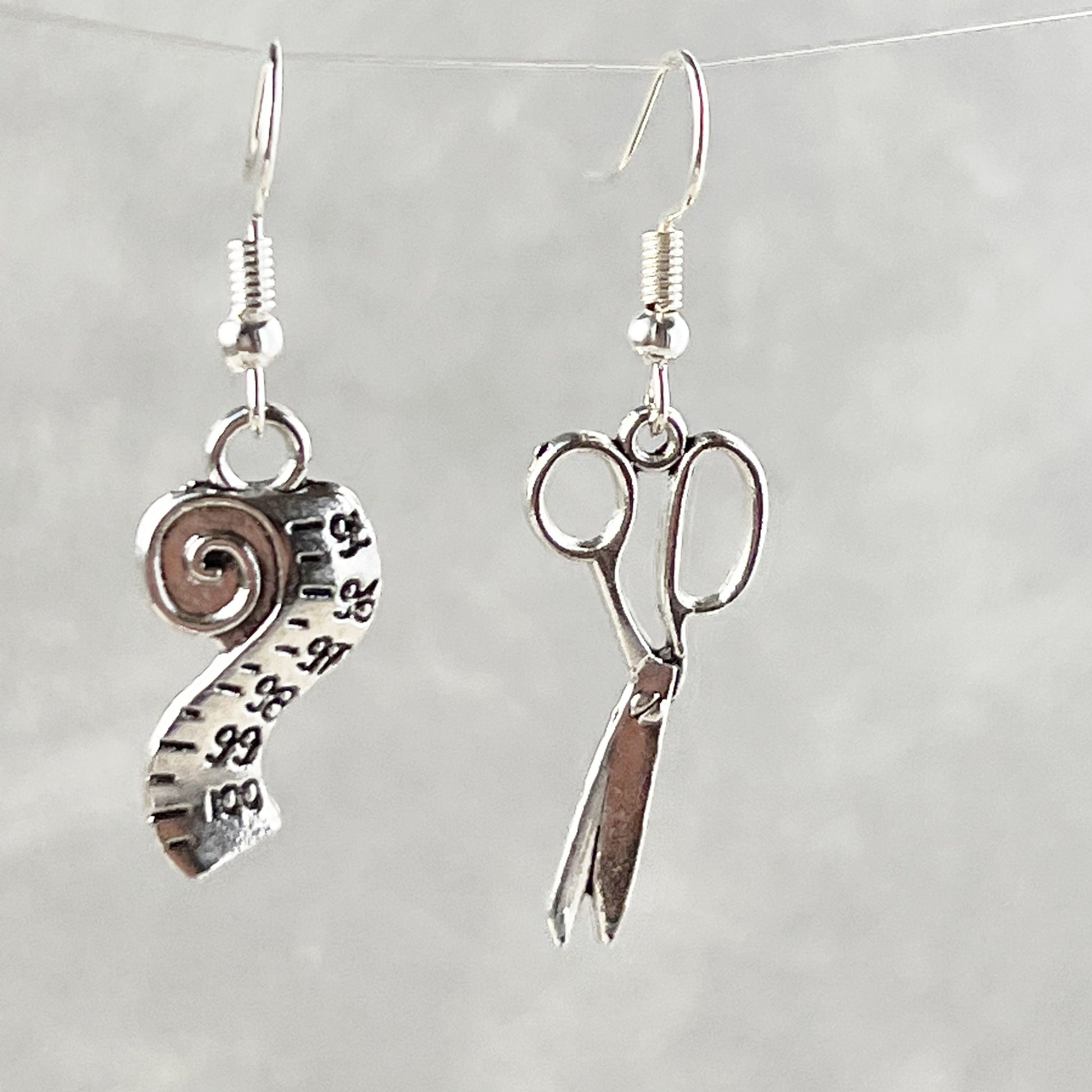 Earrings for your favorite needlewoman!Scissors and tape measure mismatched earrings.