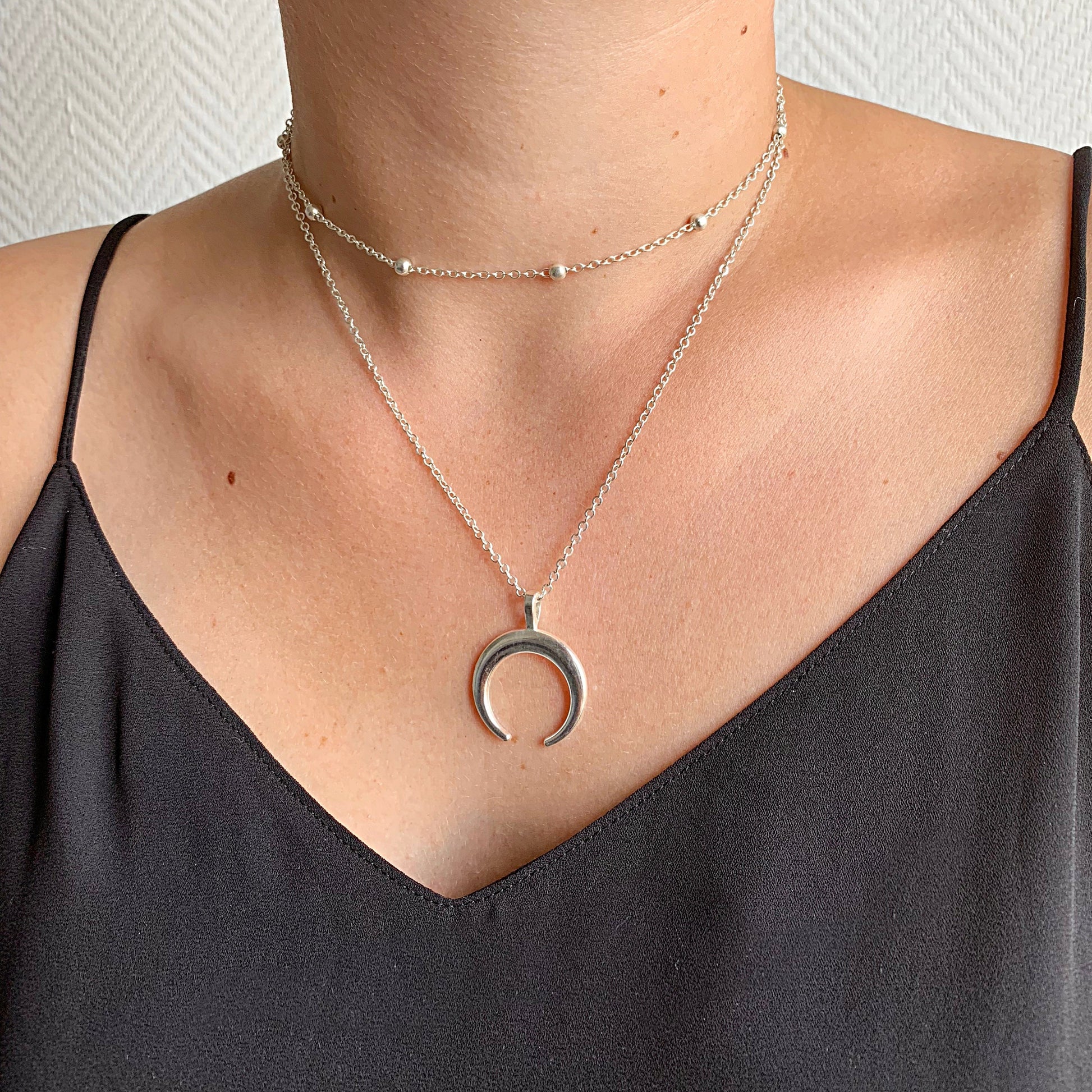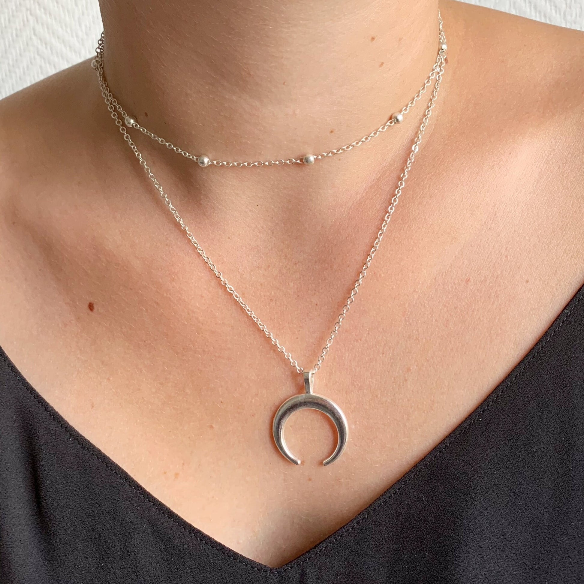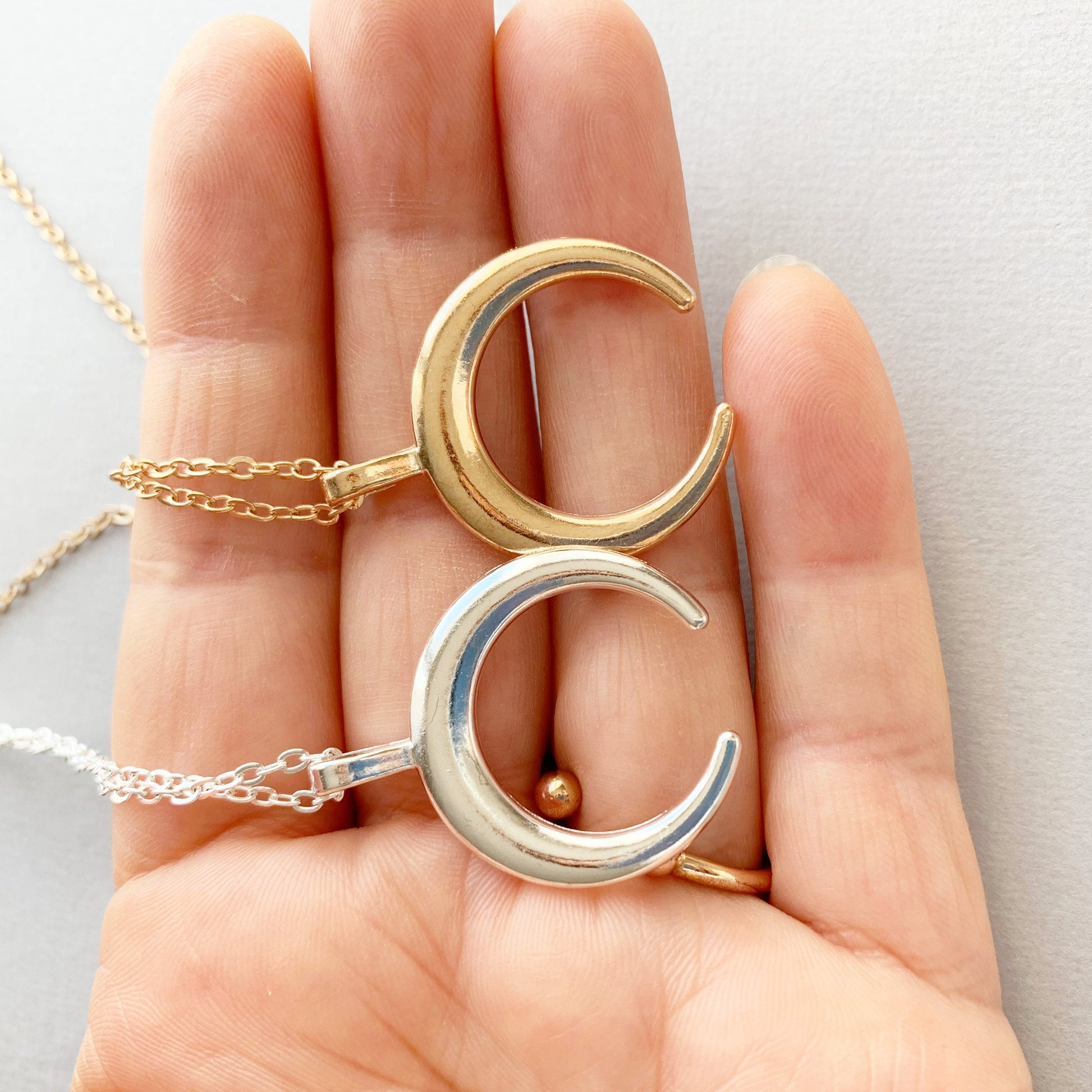 Silver Crescent Moon Necklace Celestial Upside Down Moon Necklace Double Horn Gift For Her Best Friends Statement Jewelry Gifts For Mom