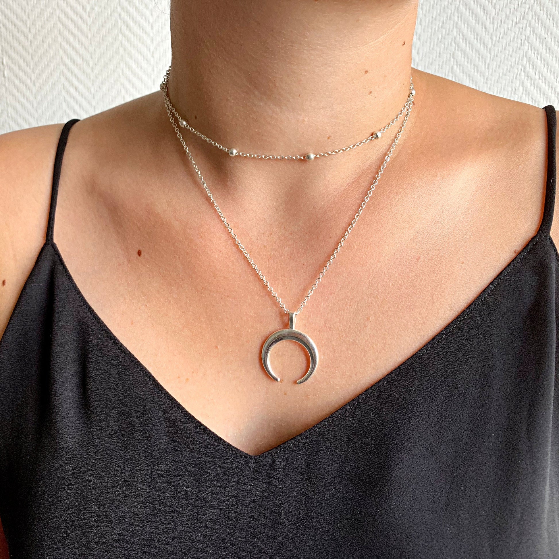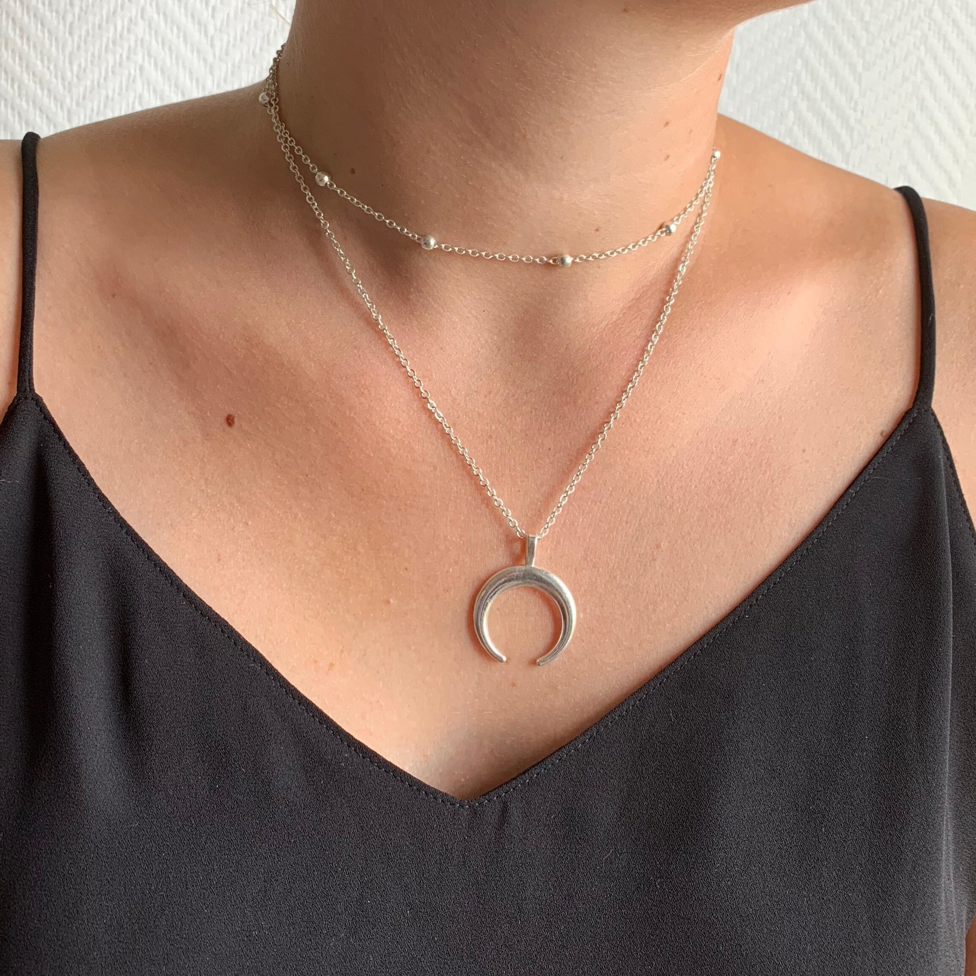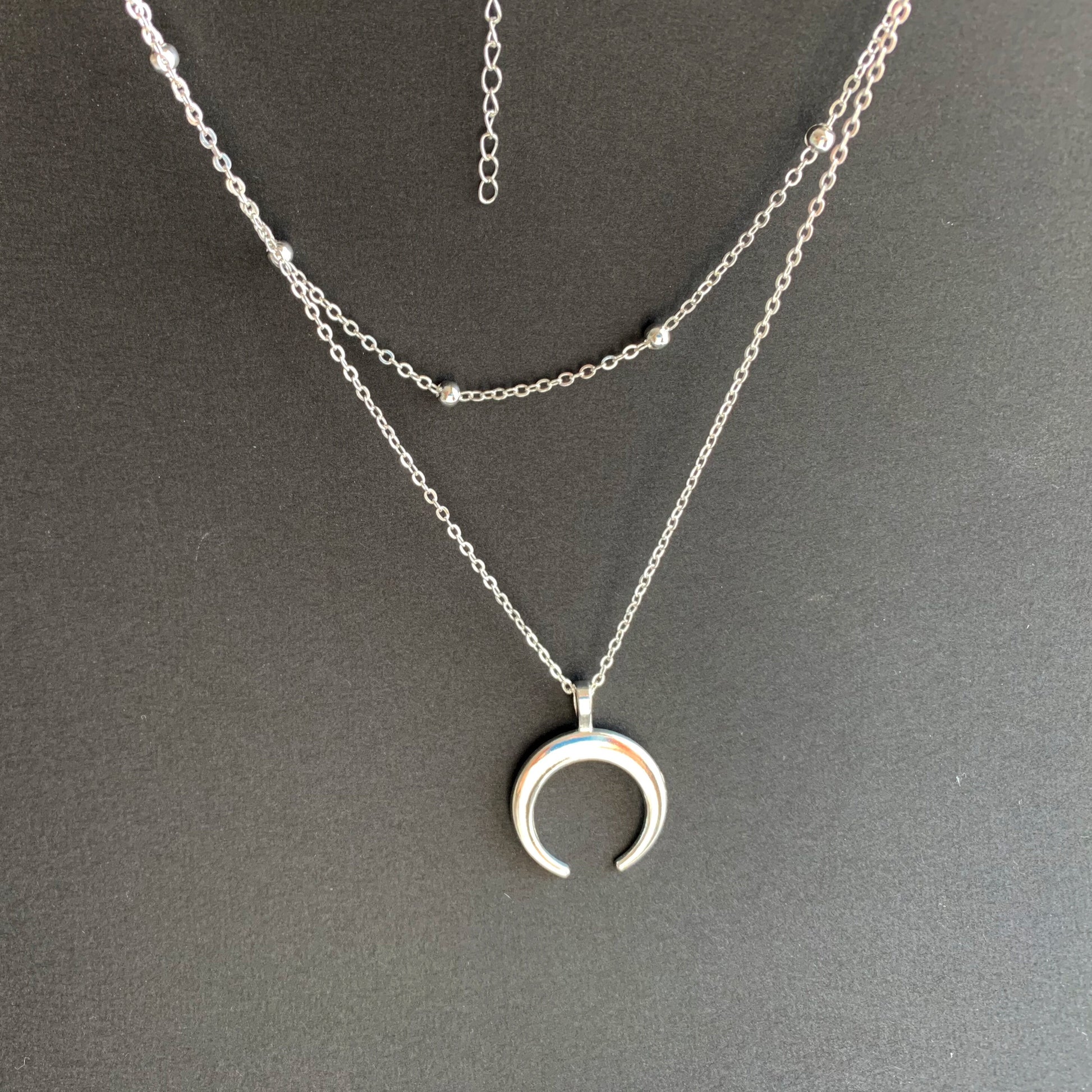 Silver Crescent Moon Necklace Celestial Upside Down Moon Necklace Double Horn Gift For Her Best Friends Statement Jewelry Gifts For Mom