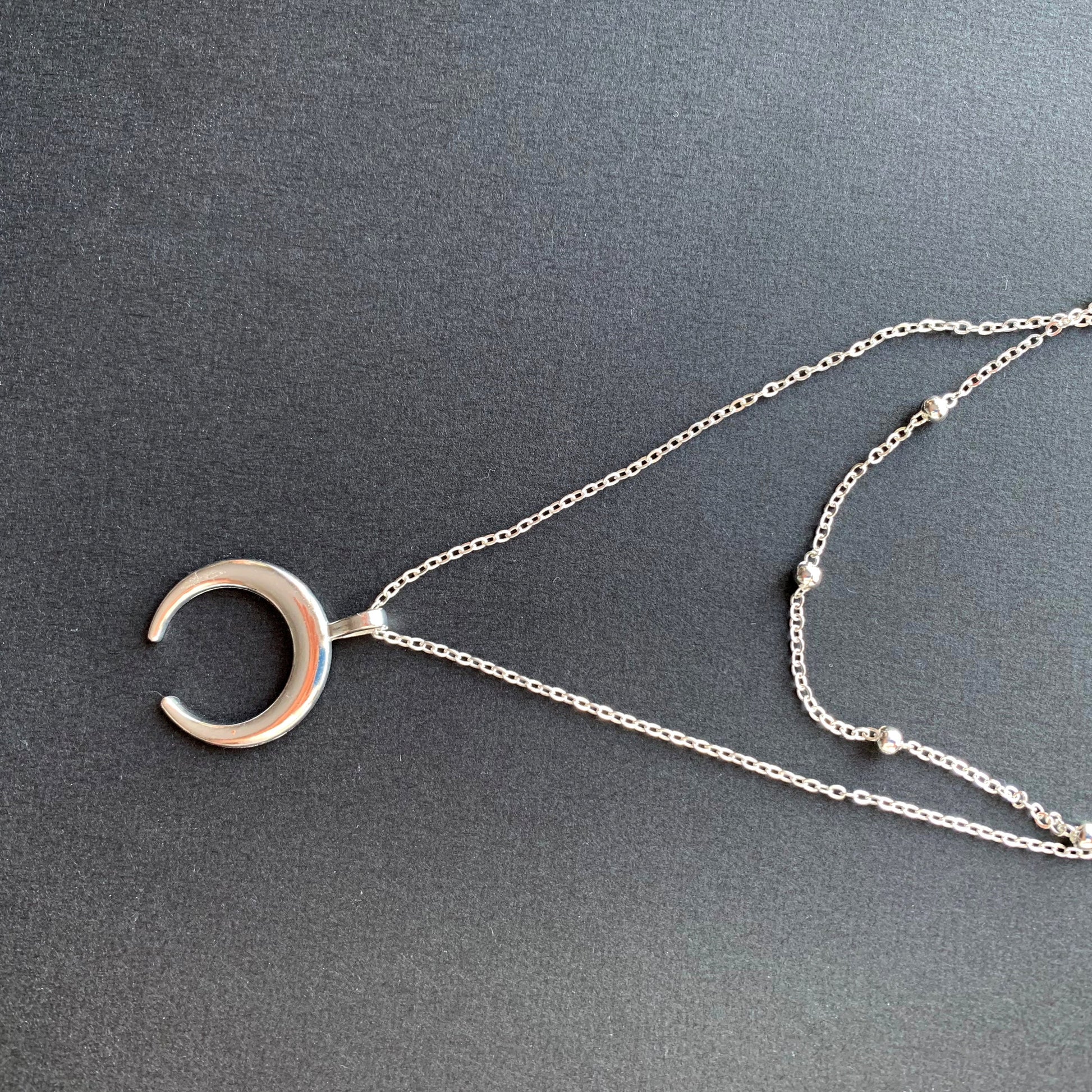 Upside Down Moon Necklace This spectacular necklace can be a perfect gift for you and your loved ones. A beautiful piece perfect for giving to a special someone or as a gift for yourself Dimensions Necklace length: 18 Inches; Pendant height: 1 Inches; Pendant width: 1 Inches CRESCENT MOON EARRINGS: https://www.etsy.com/listing/659819054/moon-phase-moonstone-ear-climber?ref=shop_home_active_1&pro=1&frs=1 MOON PHASE NECKLACE: https://www.etsy.com/listing/692968679/glowing-in-the-dark-moon-necklace?ref=shop_home_active_35&pro=1&frs=1 Moon jewelry: https://www.etsy.com/shop/NewJewelleryStory?ref=seller-platform-mcnav&section_id=23653456 -All jewelry o is hand-made. -Your jewelry will arrive in a special gift box package. Ready for gift-giving. -Please make a note if you would like to leave a gift message along with your order. SATISFACTION GUARANTEED!! - I gladly accept returns and exchanges. - Just contact me within 14 days of delivery. - Ship items back to me within 30 days of delivery. If for some reason you are not satisfied with the necklace, then you will be fully refunded. Please visit all the items from my shop here: https://www.etsy.com/fr/shop/NewJewelleryStory?ref=hdr_shop_menu