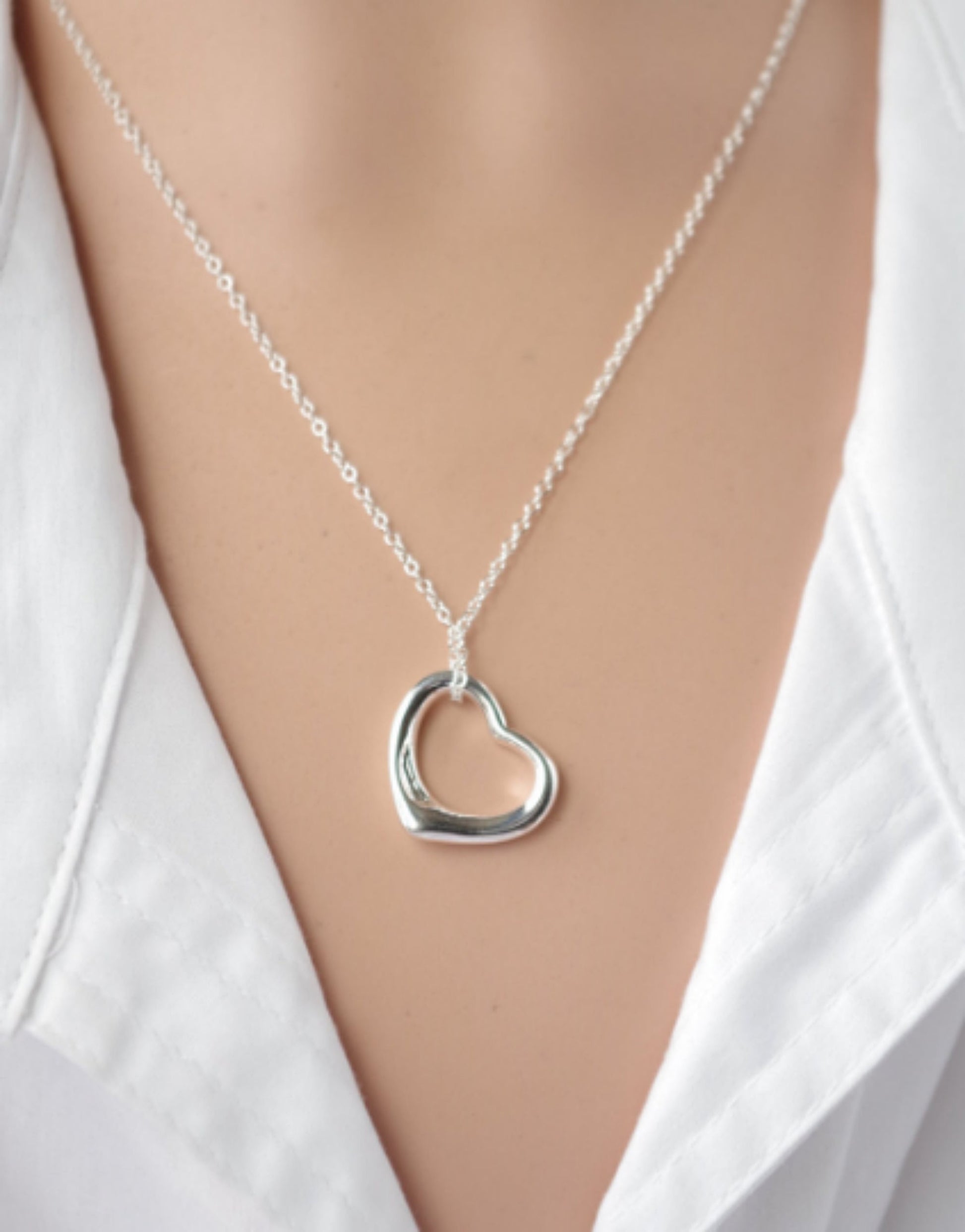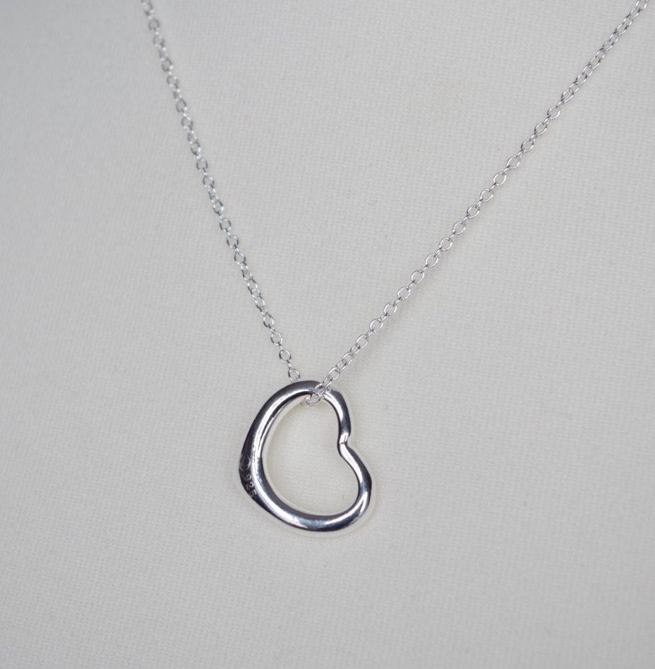 This necklace is made from an silver plated open heart. It is simple and romantic. The heart measures 22mm x 23mm and is attached to a silver plated fine chain.17"