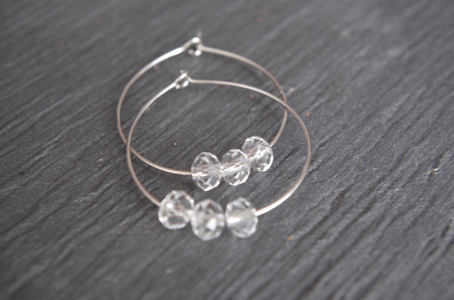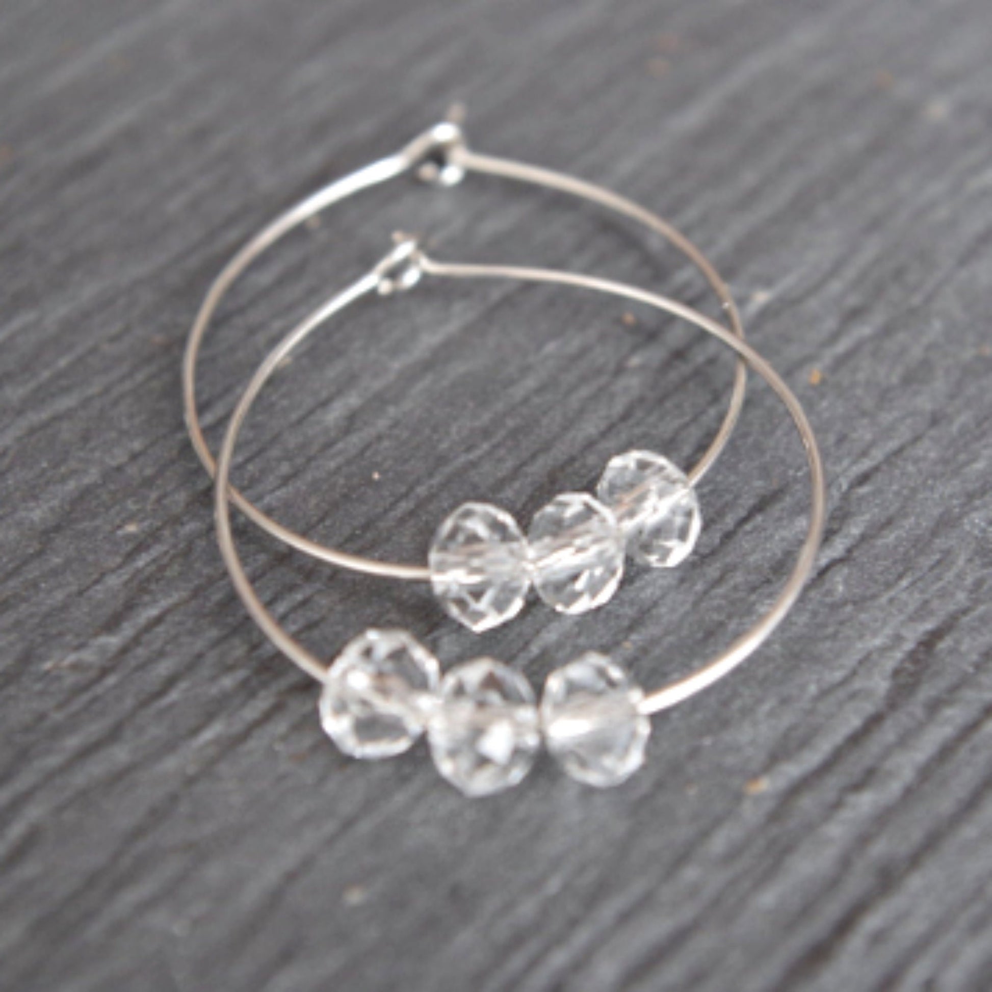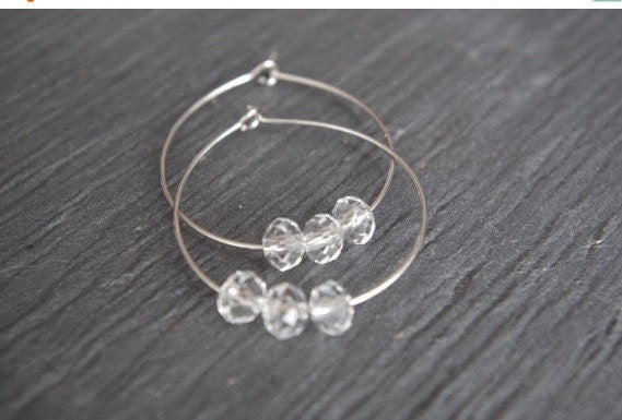 Simple Hoop Earrings Delightful blue crystal beads on 1 1/3 inch (5 cm) hoops. So lightweight, you'll reach for them over and over! All items come wrapped individually in a ribboned gift box. Earrings: https://www.etsy.com/shop/NewJewelleryStory?ref=seller-platform-mcnav&section_id=17110923 All items come wrapped individually in a ribboned gift box. Please visit all the items from my shop here: https://www.etsy.com/fr/shop/NewJewelleryStory?ref=hdr_shop_menu Thank you for looking