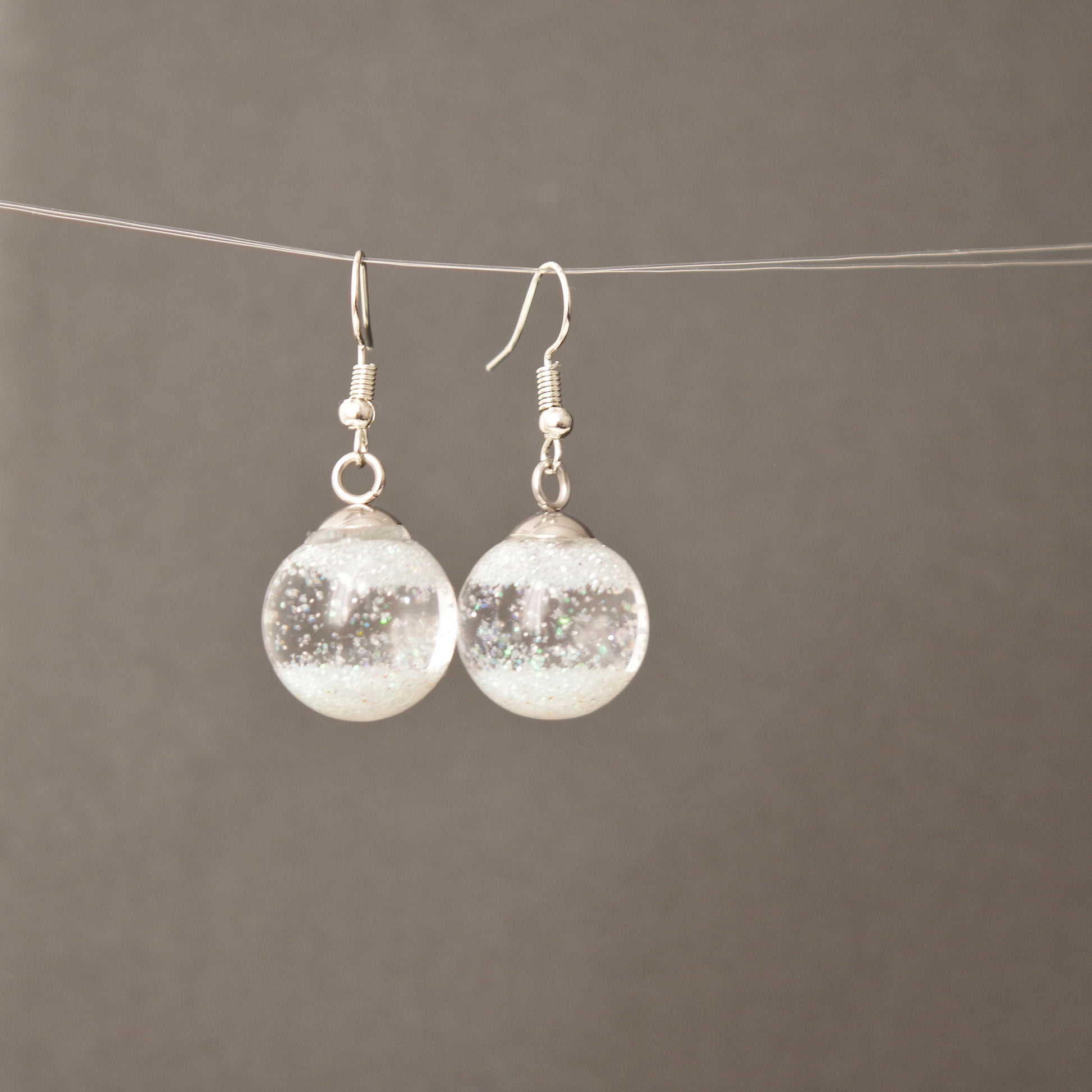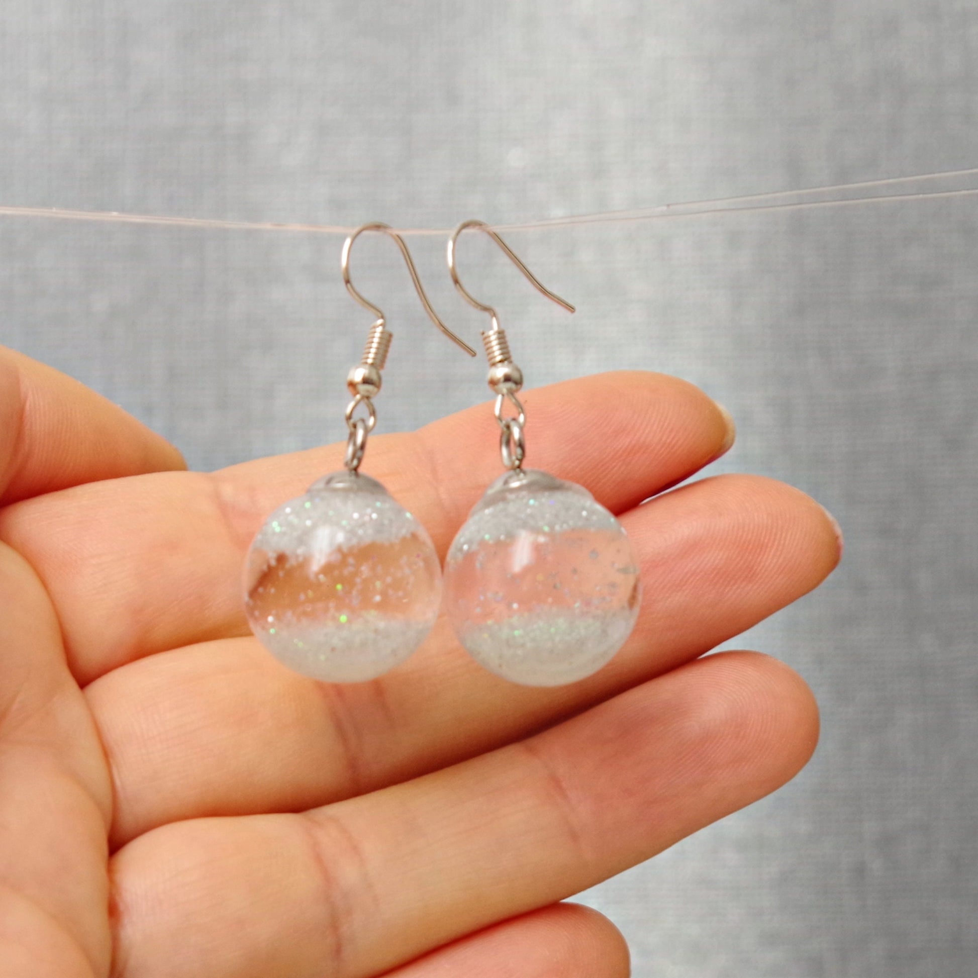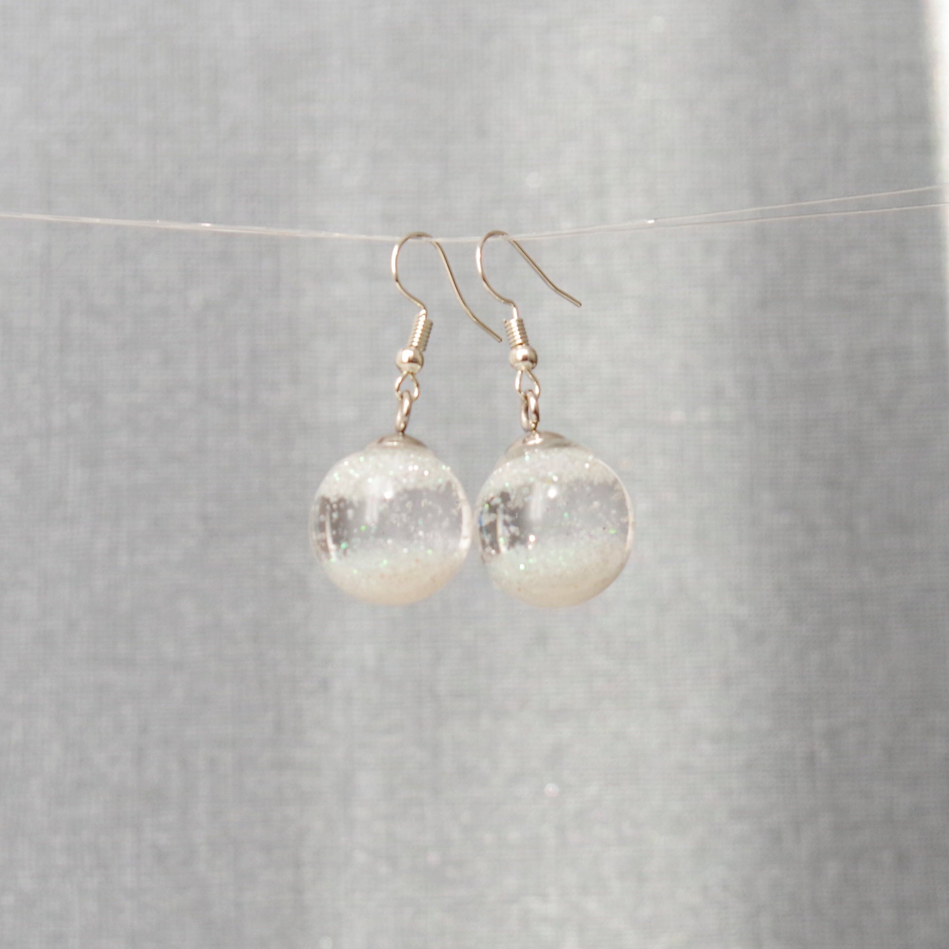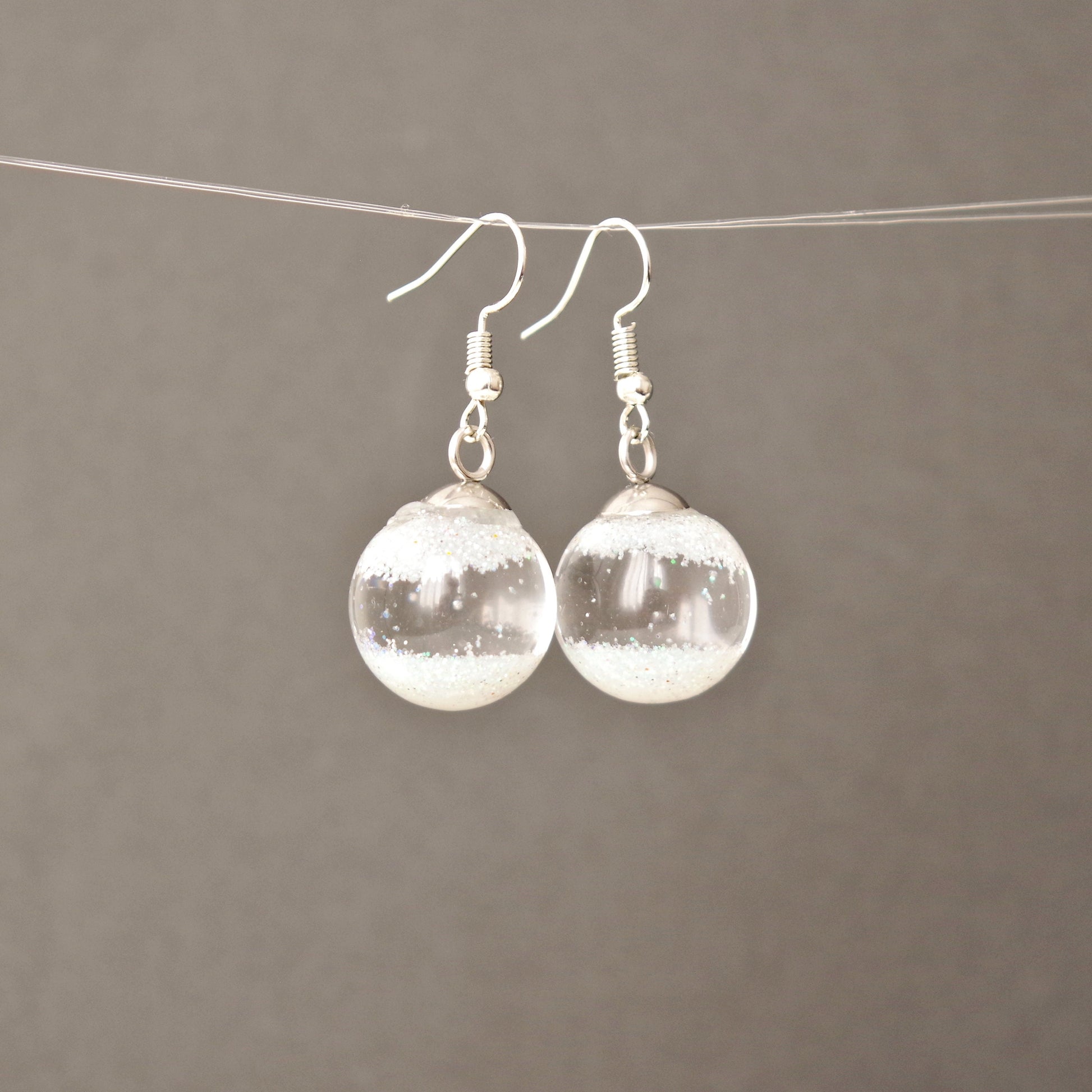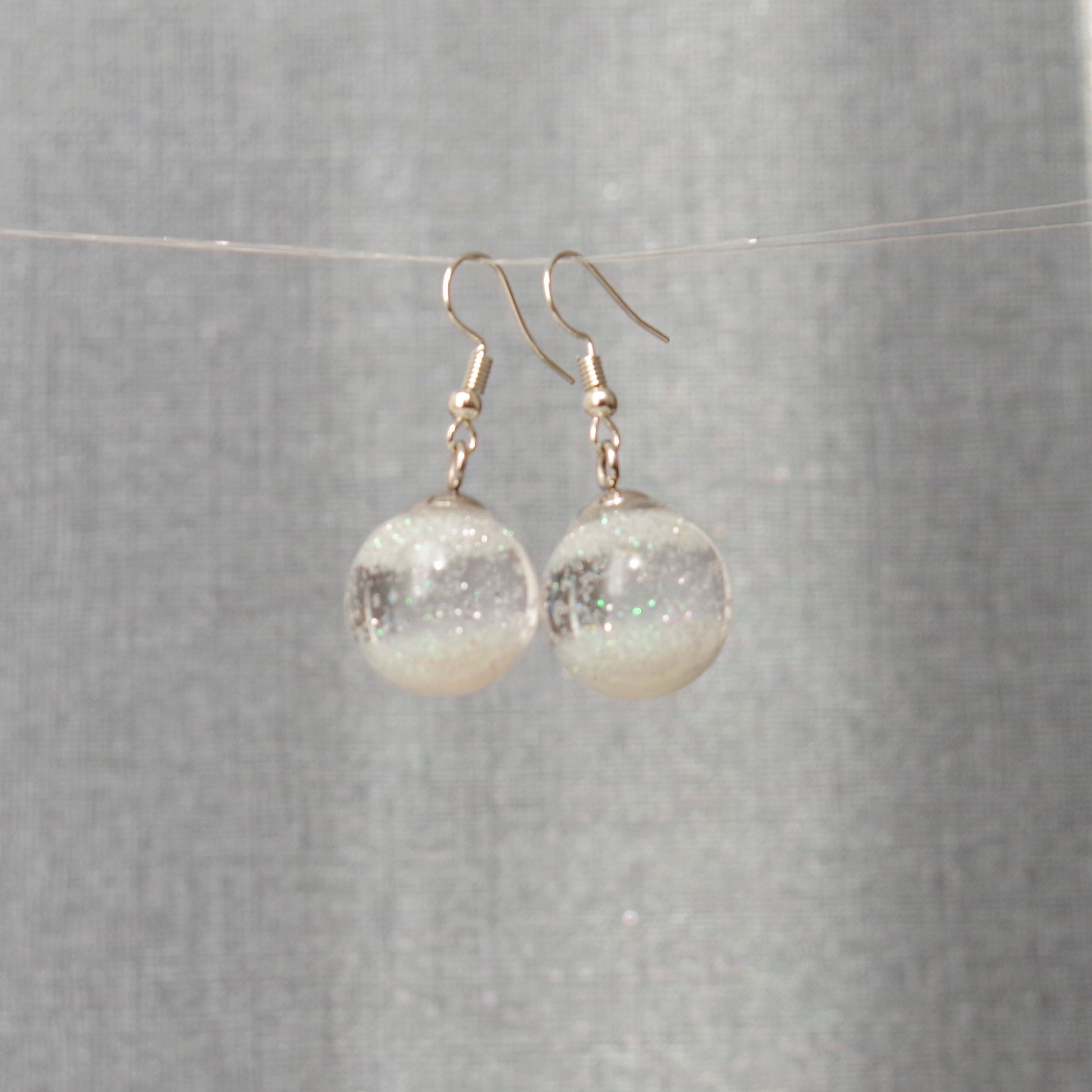 Flocons Envolés – Boucles d’Oreilles Globe en Verre Hivernales