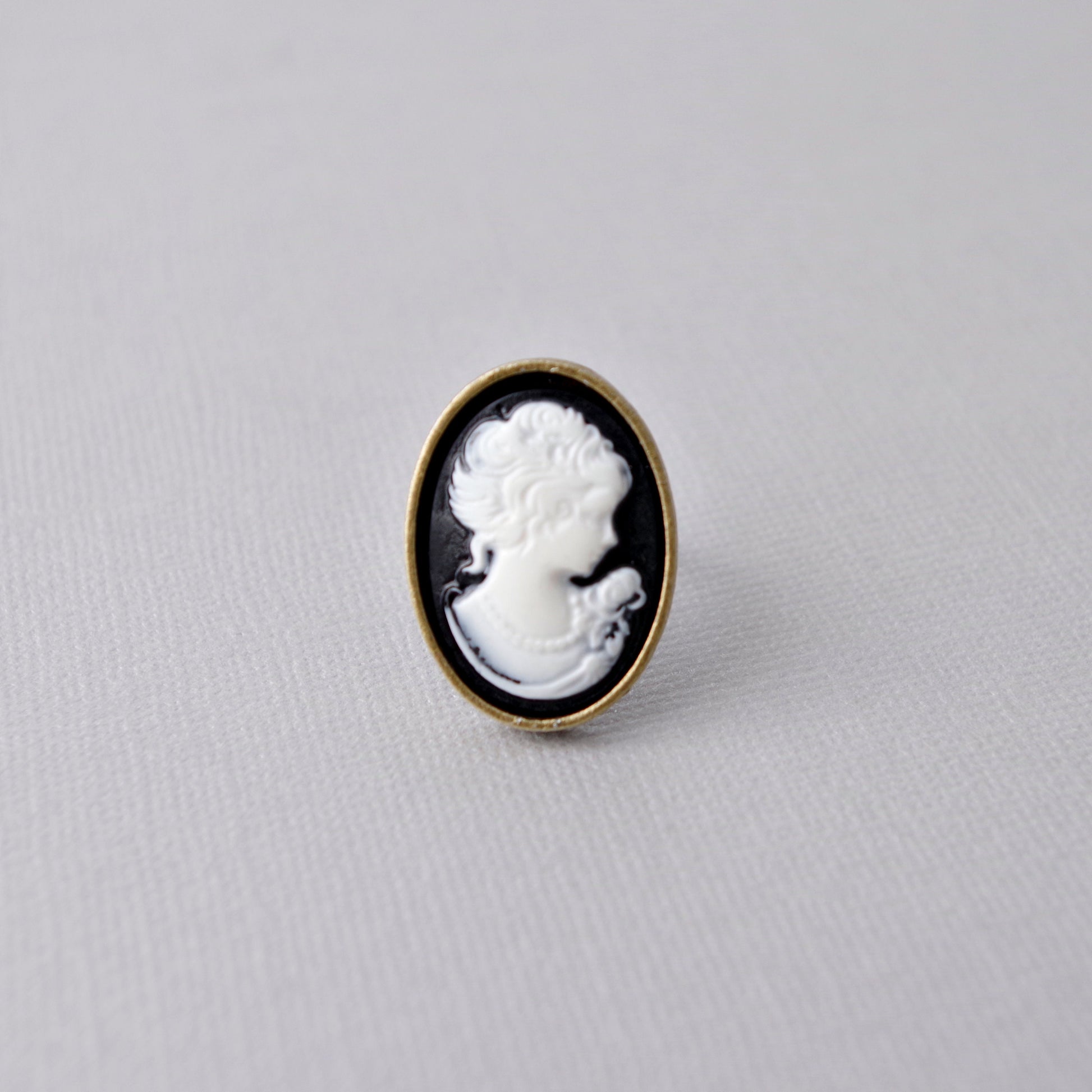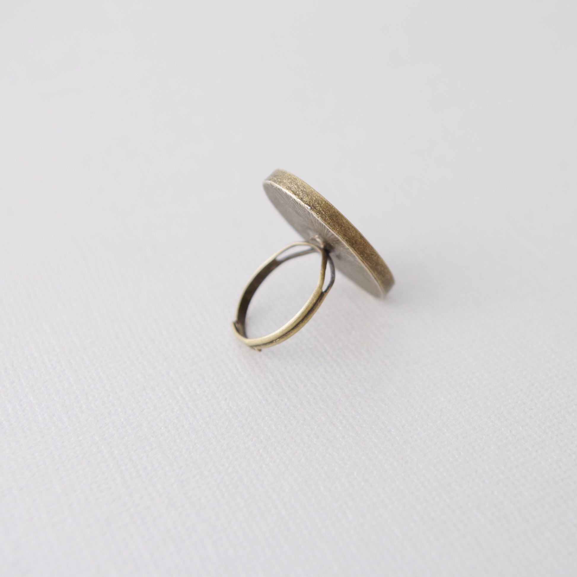 Le camée est en résine vert et blanc de qualité, monté sur un anneau en métal ton bronze.