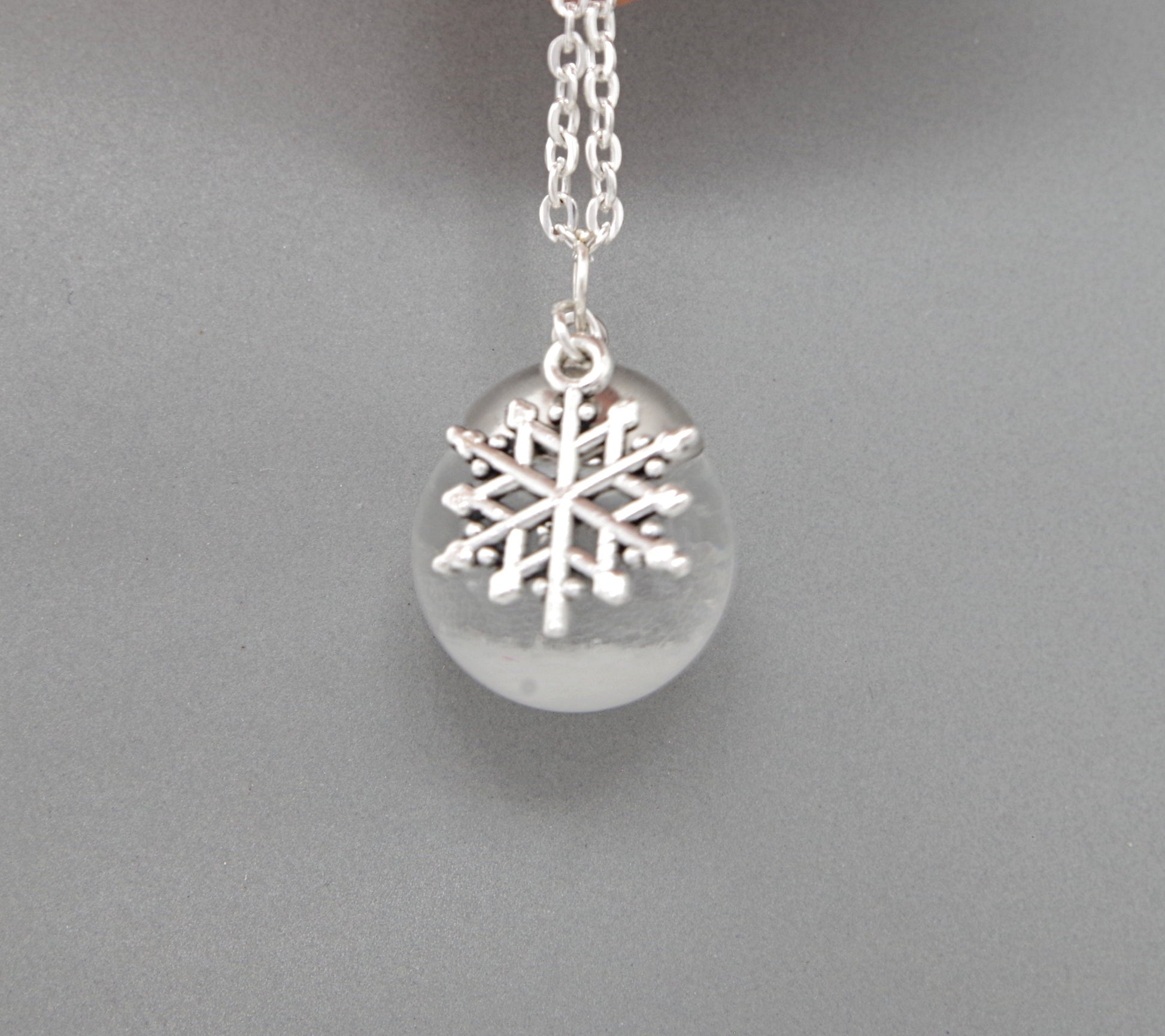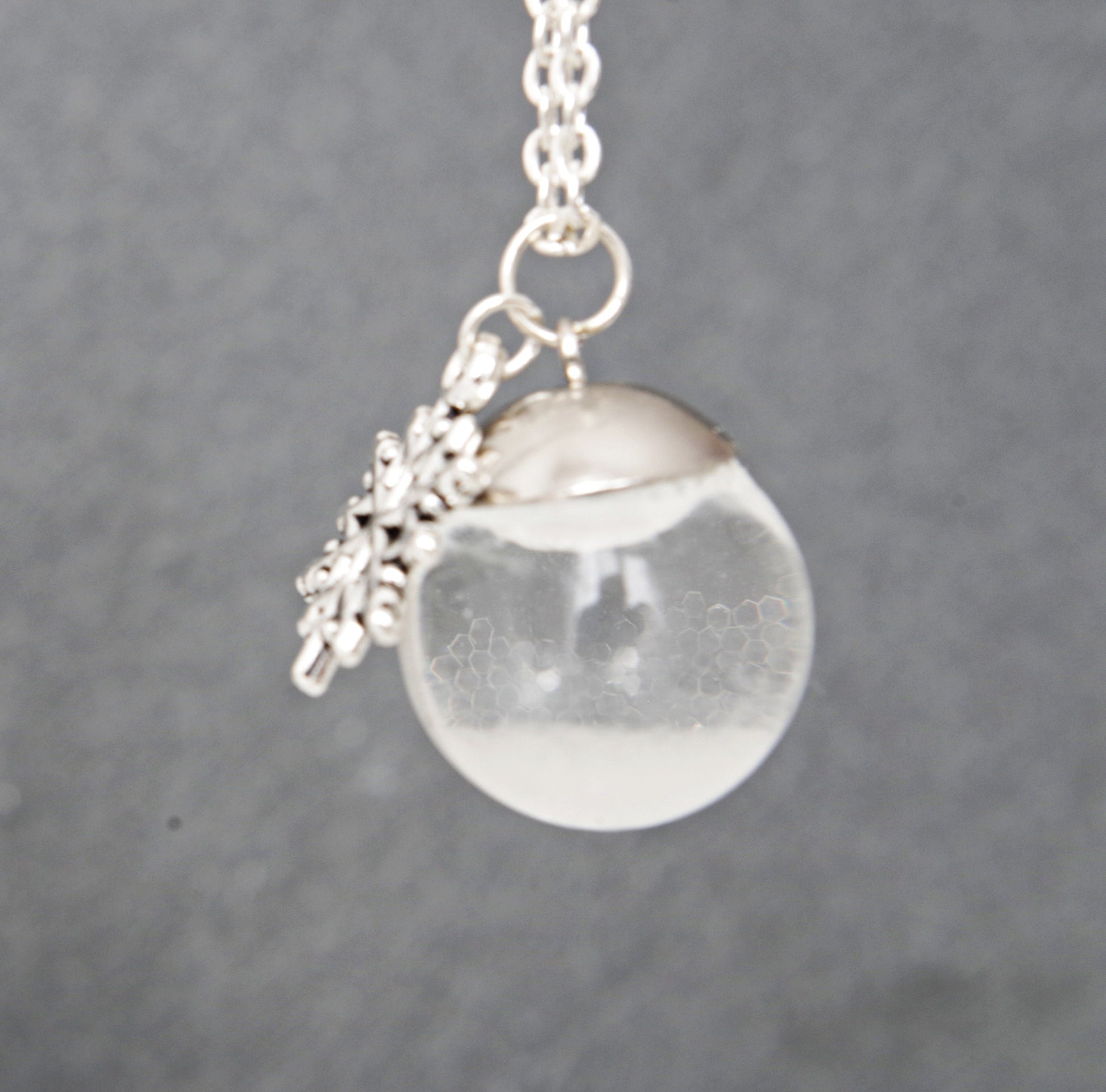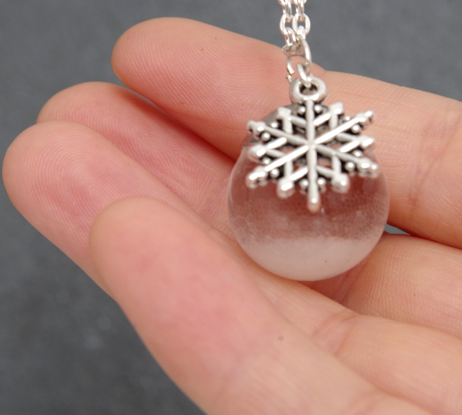 Winter Pendant .Snow globe necklace .Frozen snowflake in liquid glass ball pendant. Christmas gifts for her.