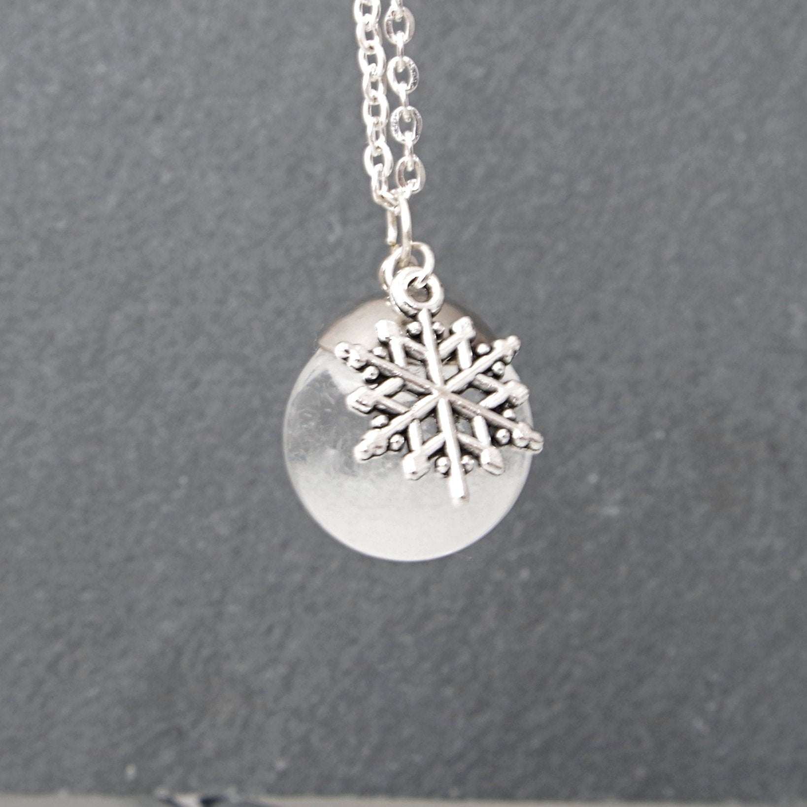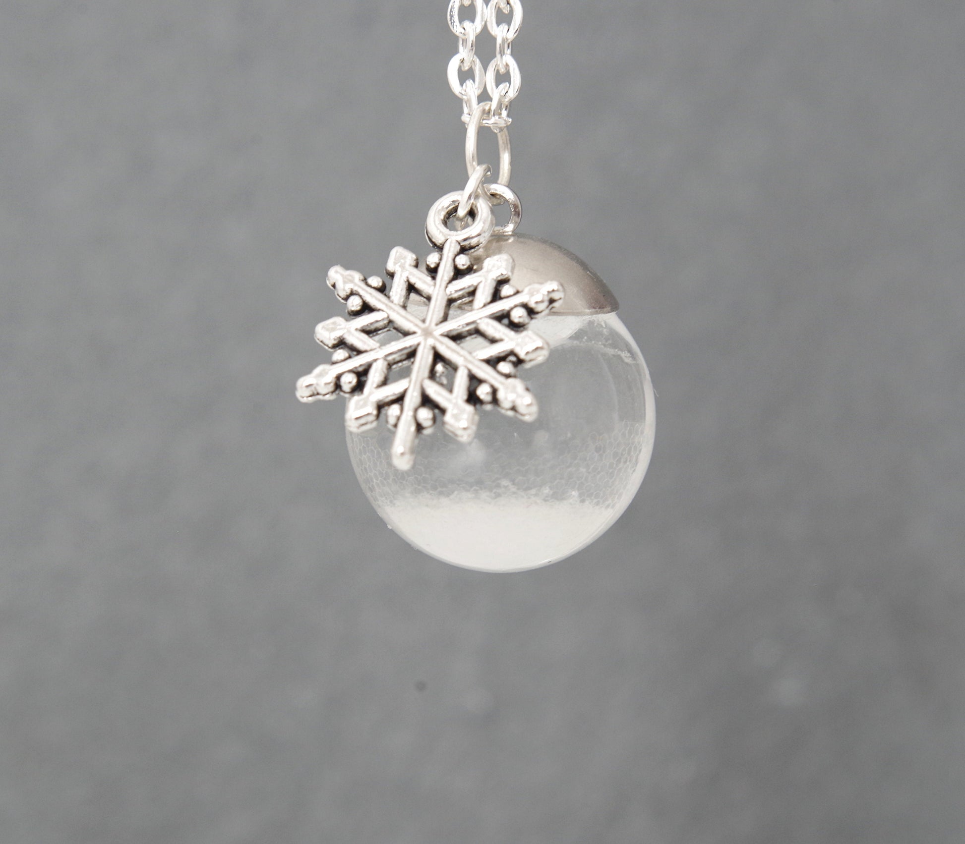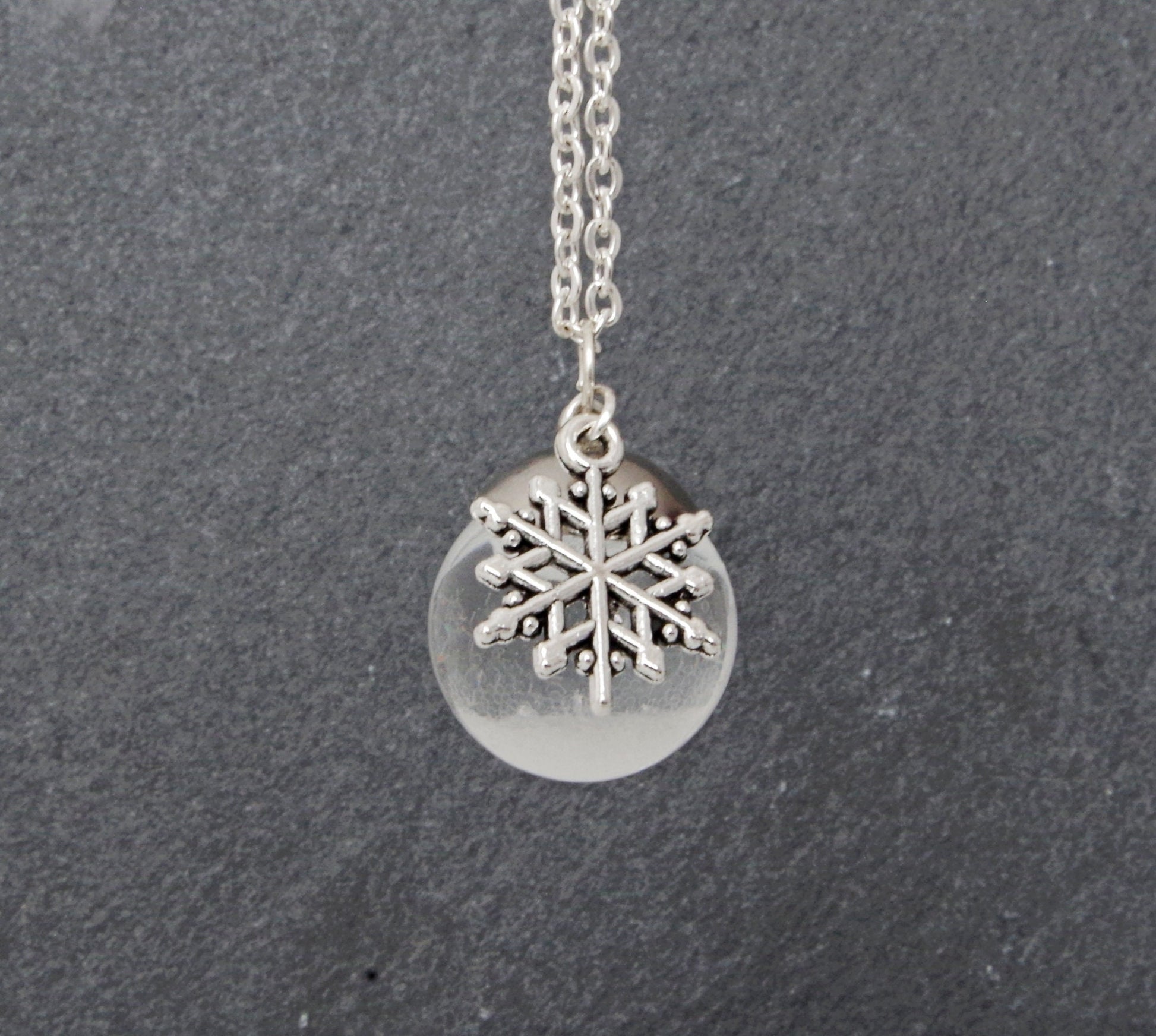 Winter Pendant .Snow globe necklace .Frozen snowflake in liquid glass ball pendant. Christmas gifts for her.